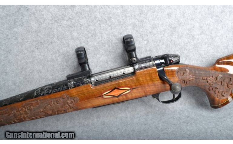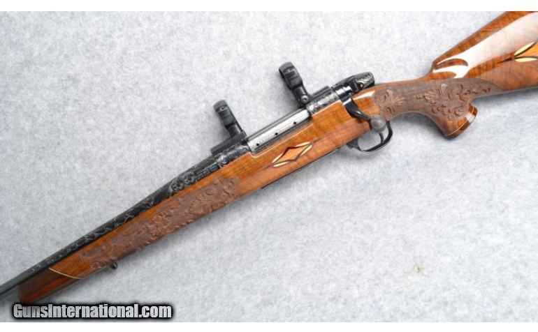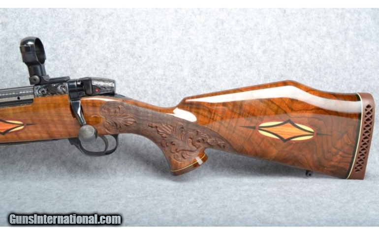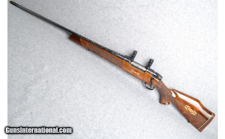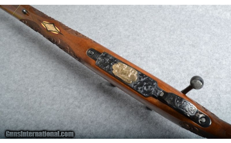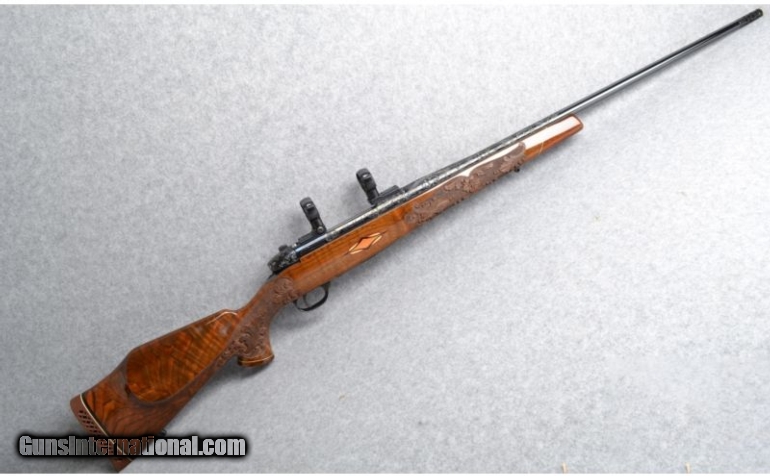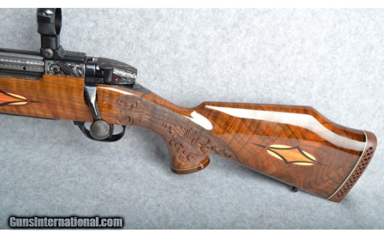 Description: Left Handed Weatherby Mark V Crown Custom fully engraved.This rifle is in almost perfect condition SOLD Manufacturer: Ser # H238xxx Caliber Info: 7mm Rem Mag Chambers: Left Hand Metal Condition: Engraving Wood Condition: Very Good Bore Condition: Bright and shiney Barrels: Twenty six inch blued steel engraved clean barrel Stock: Oak leaf carved Walnut Weatherby style stock with Gold and Mother of Pearl inlays Fore End: Rosewood inlayed grip cap and fore end tip Butt Pad: Ventilated recoil pad Sights: Weaver Mounts Item Location: Cheektowaga, NY |