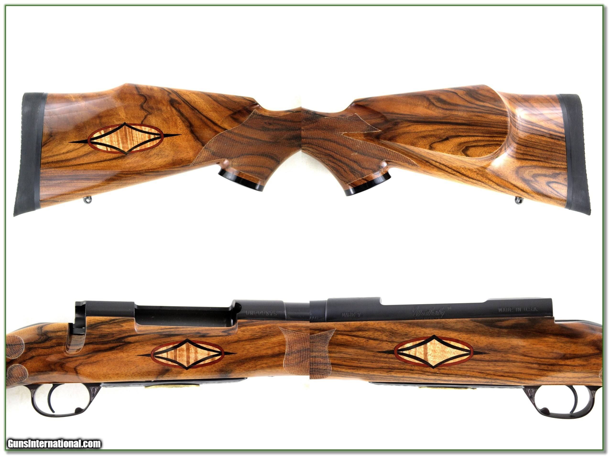 Description: Collectors and high-end African hunters, this is a Special Ordered Weatherby Custom Shop Mark V. I am selling it for a retired Weatherby dealer that order it in 2005. It is a Safari Model with custom gloss finish and hand checkering. These came standard with an oil finish. This one has inlays with gold medallion in forearm with owners initials. It has Crown floorplate with gold Cape Buffalo! It comes in box with factory test target. You won’t find another one like it! I am selling this one on consignment and as such lay-a-way can’t be used. It does of course have the standard 3-day inspection. Shipping and insurance is $119. Please email me with any questions or larger pictures. (Consign your quality firearms with Shooting Investments for only 12%! Let me know if you have any you would like to sell!) 24-0340 Payment: Payment is by Money Order, Cashier’s Check or Personal Check. I can now also accept Credit Cards (MasterCard, Visa, Discover & American Express) with a 3% convenience fee. Shipping: The shipping charge will be listed in each description. It is $49 for most firearms. Some heavy guns or those insured for over $2000 will be higher. Shipments to Alaska and Hawaii are higher because air shipment is required. Most firearms are shipped on Tuesday and Thursday and usually in 5 days of receipt of payment. We package all shipments carefully and insure them. Optics are shipped Priority Mail and most other non-firearm shipments are shipped First Class. Returns: Our return policy is simple. If for any reason you are not pleased with your purchase, you may return your item for a full refund of purchase price. Ammunition cannot be returned. It is important to us that you are happy. Guns cannot be fired or dissembled before returning them and they must be returned in the same condition as received. Notification of a return must occur within 3 days of receipt at your dealer. Shipping, convenience and dealer fees are not refundable and are the responsibility of the buyer. Lay-a-way: If needed, we offer a 60 day lay-a-way option on most firearms. It is 1/3 now, 1/3 in 30 days and 1/3 in 60 days. Lay-a-way firearm sales are final and cannot be returned. If a lay-a-way is not completed the first payment cannot be refunded. Consigning your firearms with Shooting Investments: We will help you get top dollar for your firearms. While most local guns shops charge 20% or more, our fee is only 12% with a minimum of $75. At your local gun shop it might take months to sell. Selling on-line provides instant access to thousands of interested buyers. You won’t find any other on-line dealer willing to sell your firearms for only 12% or listing every gun on 3 separate s. Selling through an House typically costs the seller 15% and the buyer an addition 15% (so 30%) and you have to wait several months to sell and longer to receive funds. If properly priced, we will sell your firearms within a few weeks. Send us an email or give us a call and we’ll explain how easy it is for you to get top dollar. Trading: Trading for us is really just buying your gun to re-sell. If you have a gun you want to trade, please email a picture and we will let you know what we can give for it. You will always get more if we sell it for you on consignment. SOLD |