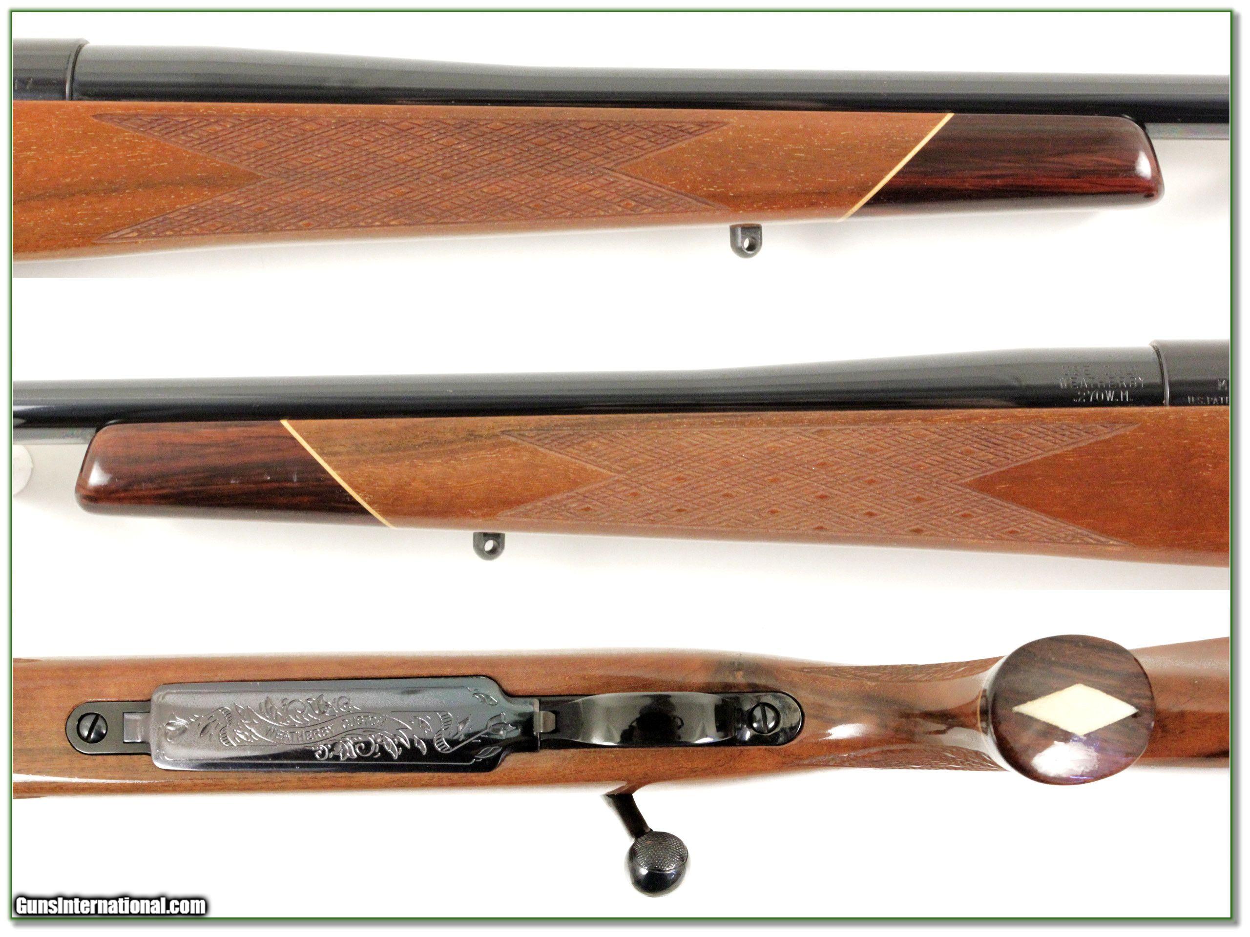 Description: Collectors, shooters and discriminating hunters, this is a Weatherby Custom Shop 270 Wthy Magnum. It is a harder to find 26in gun and is in excellent condition. From the bolt I’m sure not fired more than a few rounds. These Custom Shop guns has upgraded wood, checkered bolt handles, Jeweled bolt and follower, engraved floorplate, and trigger work. I only find a few storage marks. It is a real Shooting Investment. Shipping and insurance is $39 or $19 more if you want it shipped in a new Plano hard case. Please email me with any questions or larger pictures. (Consign your quality firearms with Shooting Investments for only 10%! Let me know if you have any you would like to sell!) 18-0020 Payment: Payment is by Money Order, Cashiers Check or Personal Check. I can now also accept MasterCard and Visa with a 3% convenience fee. PayPal can be used for some items but never firearms. Please let us know if you would like to pay via PayPal. Shipping: The shipping charge will be listed in each description. It is $39 for most long guns and $29 for most handguns. Some heavy guns or those insured for over $2000 will be higher. Shipments to Alaska and Hawaii are higher because air shipment is required. Most firearms are shipped on Tuesday and Thursday and usually in 5 days of receipt of payment. We package all shipments carefully and insure them. For long guns you can purchase a new Plano case for $19. They now cost us $22 when buying 100 at a time. Optics are shipped Priority Mail and most other non-firearm shipments are shipped First Class. Returns: Our return policy is simple. If for any reason you are not pleased with your purchase, you may return your item for a full refund of purchase price. Ammunition cannot be returned. It is important to us that you are happy. Guns cannot be fired or dissembled before returning them and they must be returned in the same condition as received. Notification of a return must occur with-in 3 days of receipt at your dealer. Shipping, convenience and dealer fees are not refundable and are the responsibility of the buyer. Lay-a-way: If needed, we offer a 60 day lay-a-way option on most firearms. It is 1/3 now, 1/3 in 30 days and 1/3 in 60 days. Lay-a-way firearm sales are final and if not completed the first payment cannot be returned. Consigning your firearms with Shooting Investments: We will help you get top dollar for your firearms. While most local guns shops charge 20% or more, our fee is only 10% with a minimum of $75. At your local gun shop it might take months to sell. Selling on-line provides instant access to thousands of interested buyers. You won’t find any other on-line dealer willing to sell your firearms for only 10% or listing every gun on 3 separate s. Selling through an House typically costs the seller 15% and the buyer an addition 15% (so 30%) and you have to wait several months to sell and longer to receive funds. If properly priced, we will sell your firearms in a few weeks. Send us an email or give us a call and we’ll explain how easy it is for you to get top dollar. Trading: Trading for use is really just buying your gun to re-sell. If you have a gun you want to trade, please email a picture and we will let you know what we can give or it. You will always get more if we sell it for you on consignment. Help for California Buyers: We are happy to ship to California. It is the buyer’s responsibility to make sure any item you buy is legal in your state. We are also happy to help with your purchase of a firearm from someone other than us. If you see a gun you would like to buy but the seller can’t or won’t ship to California they can ship to use and we’ll then ship it to your California dealer. The cost for this service is only $30 + shipping. Let us know if we can help! SOLD |