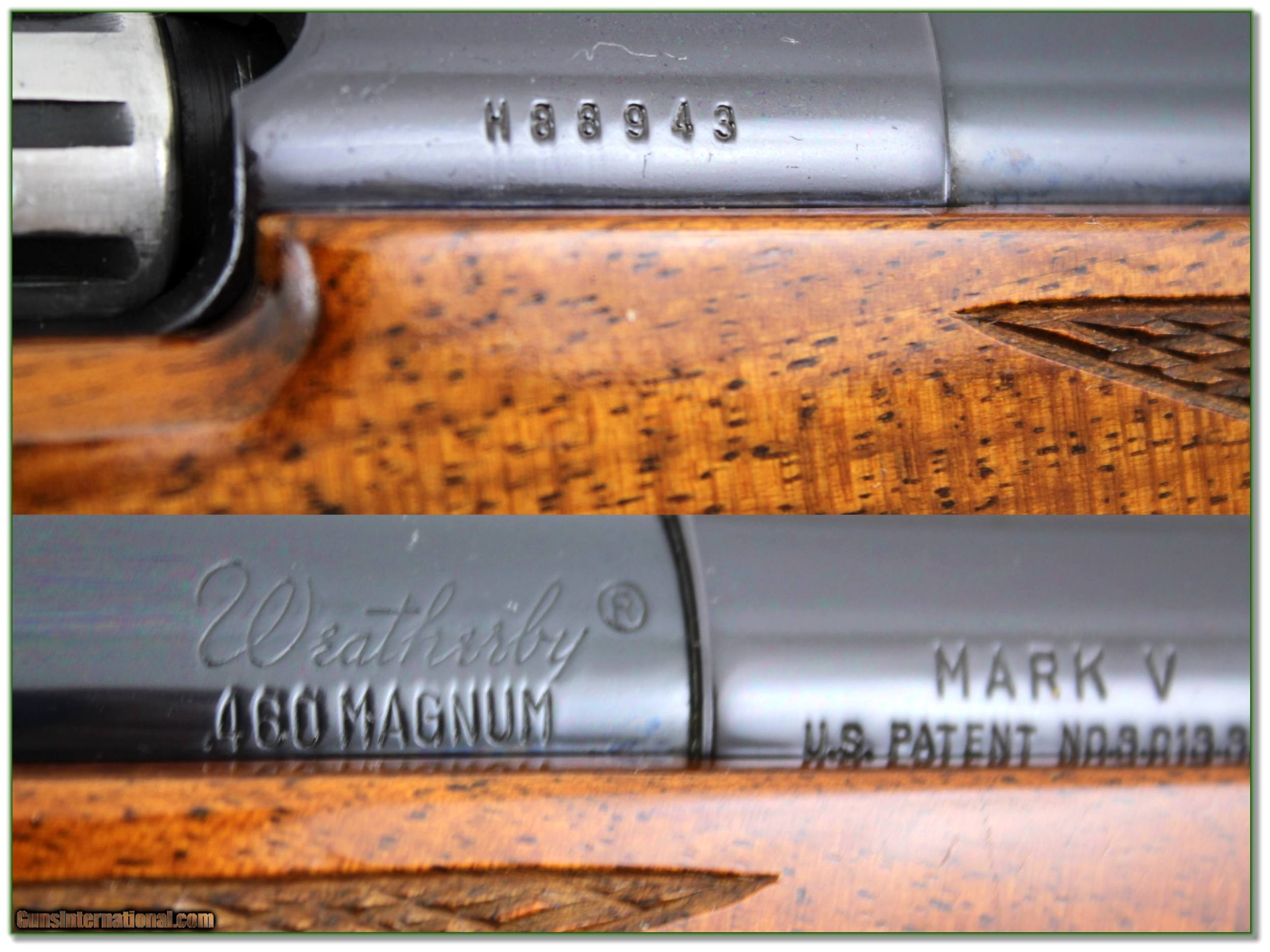 Description: This is a Weatherby Mark V Deluxe in the big 460 Weatherby Magnum. It is a Custom Shop Mark V with Checkered Bolt handle, Jeweled bolt and follower, engraved floorplate and accurized! It has some hunting use with a few marks here and there but like most, only a few rounds. It has a mirror bore with sharp rifling. If you ever wanted a 460 to take to Africa, this one is a fine choice! Shipping and insurance is $39. Please email me with any questions or larger pictures. (Consign your quality firearms with Shooting Investments for only 12%! Let me know if you have any you would like to sell!) 20-0878 Payment: Payment is by Money Order, Cashiers Check or Personal Check. I can now also accept Credit Cards (MasterCard, Visa, Discover & American Express) with a 3% convenience fee. Shipping: The shipping charge will be listed in each description. It is $39 for most firearms. Some heavy guns or those insured for over $2000 will be higher. Shipments to Alaska and Hawaii are higher because air shipment is required. Most firearms are shipped on Tuesday and Thursday and usually in 5 days of receipt of payment. We package all shipments carefully and insure them. Optics are shipped Priority Mail and most other non-firearm shipments are shipped First Class. Returns: Our return policy is simple. If for any reason you are not pleased with your purchase, you may return your item for a full refund of purchase price. Ammunition cannot be returned. It is important to us that you are happy. Guns cannot be fired or dissembled before returning them and they must be returned in the same condition as received. Notification of a return must occur with-in 3 days of receipt at your dealer. Shipping, convenience and dealer fees are not refundable and are the responsibility of the buyer. Lay-a-way: If needed, we offer a 60 day lay-a-way option on most firearms. It is 1/3 now, 1/3 in 30 days and 1/3 in 60 days. Lay-a-way firearm sales are final and if not completed the first payment cannot be returned. Consigning your firearms with Shooting Investments: We will help you get top dollar for your firearms. While most local guns shops charge 20% or more, our fee is only 12% with a minimum of $75. At your local gun shop it might take months to sell. Selling on-line provides instant access to thousands of interested buyers. You won’t find any other on-line dealer willing to sell your firearms for only 12% or listing every gun on 3 separate s. Selling through an House typically costs the seller 15% and the buyer an addition 15% (so 30%) and you have to wait several months to sell and longer to receive funds. If properly priced, we will sell your firearms in a few weeks. Send us an email or give us a call and we’ll explain how easy it is for you to get top dollar. Trading: Trading for use is really just buying your gun to re-sell. If you have a gun you want to trade, please email a picture and we will let you know what we can give or it. You will always get more if we sell it for you on consignment. Help for California Buyers: We are happy to ship to California. It is the buyer’s responsibility to make sure any item you buy is legal in your state. We are also happy to help with your purchase of a firearm from someone other than us. If you see a gun you would like to buy but the seller can’t or won’t ship to California they can ship to use and we’ll then ship it to your California dealer. The cost for this service is only $30 + shipping. Let us know if we can help! SOLD |