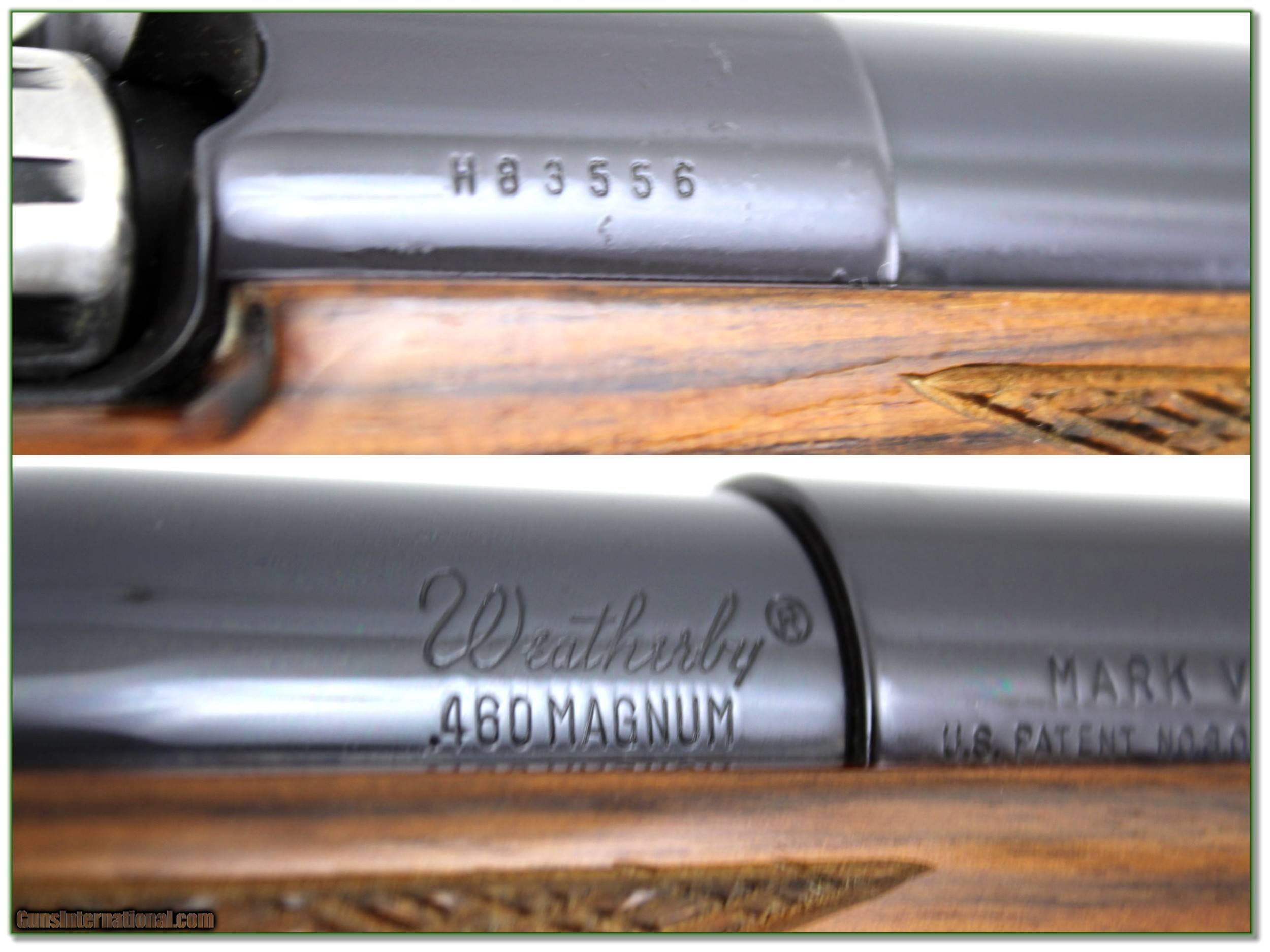 Description: This is a like new condition Weatherby Mark V Deluxe in the big 460 Weatherby Magnum. I has beautiful and harder to find dark wood with nice grain. It is a Custom Shop Mark V with Checkered Bolt handle, Jeweled bolt and follower, engraved floorplate and accurized! At most a few rounds fired since leaving the factory. Most of these heavy recoil Weatherby have plain stock. The wood on this one is MUCH better than most with no marks of note. It has factory open sights and factory Pendleton break. If you ever wanted a 460 this one is a fine choice! Shipping and insurance is $49. Please email me with any questions or larger pictures. (Consign your quality firearms with Shooting Investments for only 12%! Let me know if you have any you would like to sell!) 20-0468 Payment: Payment is by Money Order, Cashier’s Check or Personal Check. I can now also accept Credit Cards (MasterCard, Visa, Discover & American Express) with a 3% convenience fee. Shipping: The shipping charge will be listed in each description. It is $39 for most firearms. Some heavy guns or those insured for over $2000 will be higher. Shipments to Alaska and Hawaii are higher because air shipment is required. Most firearms are shipped on Tuesday and Thursday and usually in 5 days of receipt of payment. We package all shipments carefully and insure them. Optics are shipped Priority Mail and most other non-firearm shipments are shipped First Class. Returns: Our return policy is simple. If for any reason you are not pleased with your purchase, you may return your item for a full refund of purchase price. Ammunition cannot be returned. It is important to us that you are happy. Guns cannot be fired or dissembled before returning them and they must be returned in the same condition as received. Notification of a return must occur with-in 3 days of receipt at your dealer. Shipping, convenience and dealer fees are not refundable and are the responsibility of the buyer. Lay-a-way: If needed, we offer a 60 day lay-a-way option on most firearms. It is 1/3 now, 1/3 in 30 days and 1/3 in 60 days. Lay-a-way firearm sales are final and if not completed the first payment cannot be returned. Consigning your firearms with Shooting Investments: We will help you get top dollar for your firearms. While most local guns shops charge 20% or more, our fee is only 12% with a minimum of $75. At your local gun shop it might take months to sell. Selling on-line provides instant access to thousands of interested buyers. You won’t find any other on-line dealer willing to sell your firearms for only 12% or listing every gun on 3 separate s. Selling through an House typically costs the seller 15% and the buyer an addition 15% (so 30%) and you have to wait several months to sell and longer to receive funds. If properly priced, we will sell your firearms in a few weeks. Send us an email or give us a call and we’ll explain how easy it is for you to get top dollar. Trading: Trading for use is really just buying your gun to re-sell. If you have a gun you want to trade, please email a picture and we will let you know what we can give or it. You will always get more if we sell it for you on consignment. Help for California Buyers: We are happy to ship to California. It is the buyer’s responsibility to make sure any item you buy is legal in your state. We are also happy to help with your purchase of a firearm from someone other than us. If you see a gun you would like to buy but the seller can’t or won’t ship to California they can ship to use and we’ll then ship it to your California dealer. The cost for this service is only $30 + shipping. Let us know if we can help! SOLD |