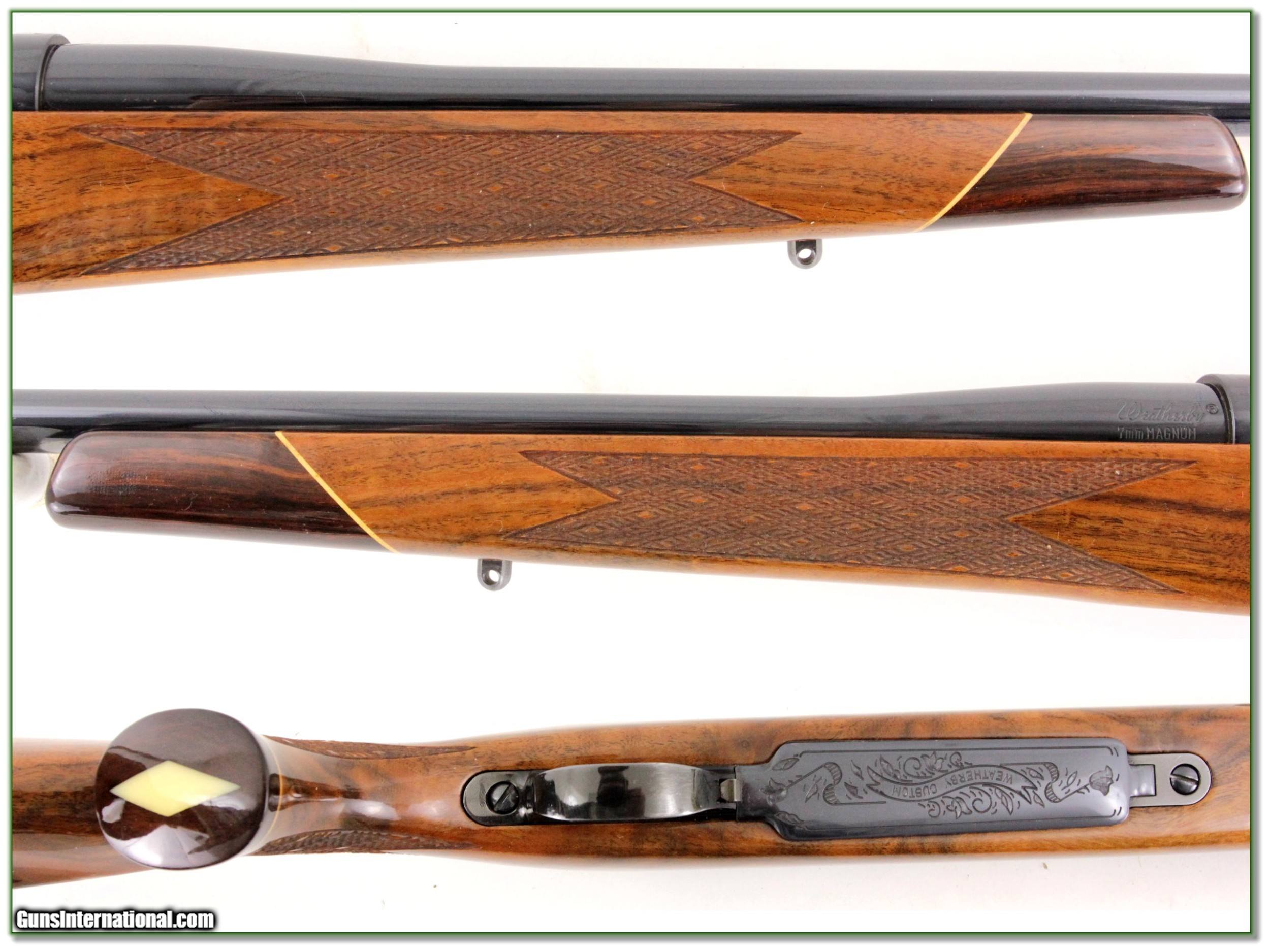 Description: This is a beautiful Weatherby Mark V Deluxe made in the Custom Shop. It has high grade woof and is chambered in 7mm Wthy Magnum. It has a 24in barrel and only a few rounds fired. I find only a couple minor marks on the wood. It will make a fine addition to your collection. It comes as seen in box (no end label). I am selling this one on consignment and as such lay-a-way can’t be used. It does of course have the standard 3-day inspection. Shipping with insurance is $49. Please email me with any questions or larger pictures. (Consign your quality firearms with Shooting Investments for only 12%! Let me know if you have any you would like to sell!) 19-1368 Payment: Payment is by Money Order, Cashiers Check or Personal Check. I can now also accept MasterCard and Visa with a 3% convenience fee. PayPal can be used for some items but never firearms. Please let us know if you would like to pay via PayPal. Shipping: The shipping charge will be listed in each description. It is $39 for most long guns and $29 for most handguns. Some heavy guns or those insured for over $2000 will be higher. Shipments to Alaska and Hawaii are higher because air shipment is required. Most firearms are shipped on Tuesday and Thursday and usually in 5 days of receipt of payment. We package all shipments carefully and insure them. For long guns you can purchase a new Plano case for $19. They now cost us $22 when buying 100 at a time. Optics are shipped Priority Mail and most other non-firearm shipments are shipped First Class. Returns: Our return policy is simple. If for any reason you are not pleased with your purchase, you may return your item for a full refund of purchase price. Ammunition cannot be returned. It is important to us that you are happy. Guns cannot be fired or dissembled before returning them and they must be returned in the same condition as received. Notification of a return must occur with-in 3 days of receipt at your dealer. Shipping, convenience and dealer fees are not refundable and are the responsibility of the buyer. Lay-a-way: If needed, we offer a 60 day lay-a-way option on most firearms. It is 1/3 now, 1/3 in 30 days and 1/3 in 60 days. Lay-a-way firearm sales are final and if not completed the first payment cannot be returned. Consigning your firearms with Shooting Investments: We will help you get top dollar for your firearms. While most local guns shops charge 20% or more, our fee is only 12% with a minimum of $75. At your local gun shop it might take months to sell. Selling on-line provides instant access to thousands of interested buyers. You won’t find any other on-line dealer willing to sell your firearms for only 12% or listing every gun on 3 separate s. Selling through an House typically costs the seller 15% and the buyer an addition 15% (so 30%) and you have to wait several months to sell and longer to receive funds. If properly priced, we will sell your firearms in a few weeks. Send us an email or give us a call and we’ll explain how easy it is for you to get top dollar. Trading: Trading for use is really just buying your gun to re-sell. If you have a gun you want to trade, please email a picture and we will let you know what we can give or it. You will always get more if we sell it for you on consignment. Help for California Buyers: We are happy to ship to California. It is the buyer’s responsibility to make sure any item you buy is legal in your state. We are also happy to help with your purchase of a firearm from someone other than us. If you see a gun you would like to buy but the seller can’t or won’t ship to California they can ship to use and we’ll then ship it to your California dealer. The cost for this service is only $30 + shipping. Let us know if we can help! SOLD |