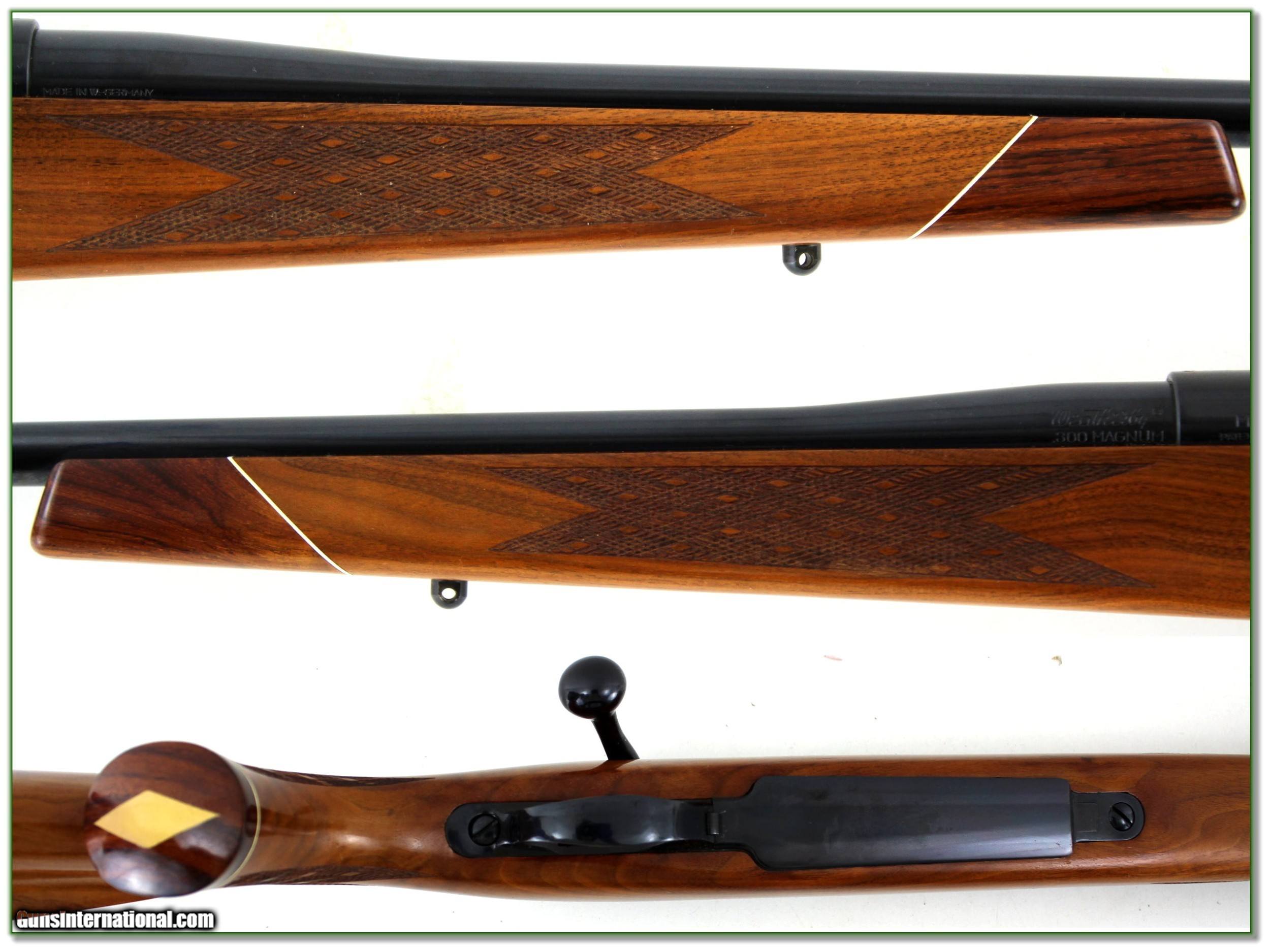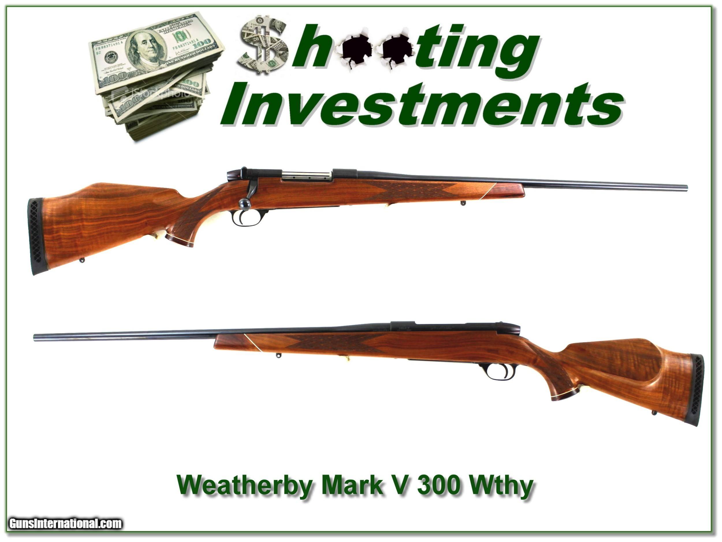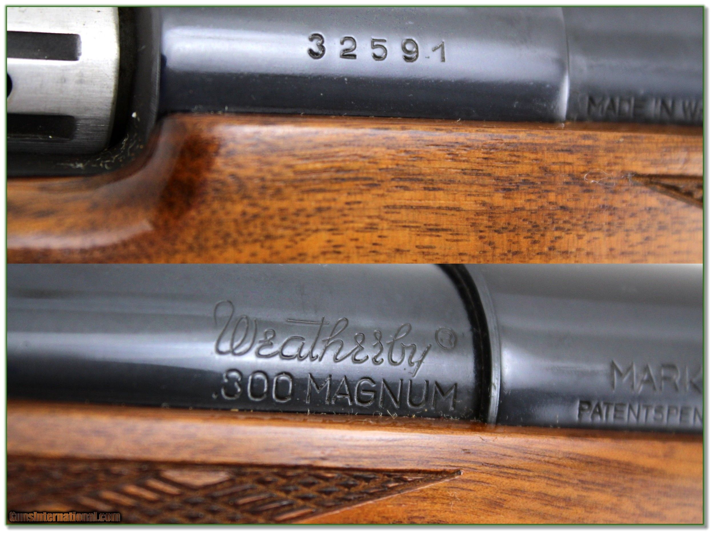 Description: Collectors and hunters, this is a collector condition 1961 German made Mark V Deluxe in 300 Weatherby Magnum. The metal is as new with no marks and from the razor-sharp lugs I am sure not more than a couple rounds fired. The wood has outstanding grain and no marks of note. The recoil pad is the original Weatherby pad of that era. It has a lighter weight 24in barrel so it will be perfect for most hunters. You will look hard to find a nicer early German one. It is a real Shooting Investment. Shipping and insurance is $49. Please email me with any questions or larger pictures. (Consign your quality firearms with Shooting Investments for only 12%! Let me know if you have any you would like to sell!) 22-1112 Payment: Payment is by Money Order, Cashiers Check or Personal Check. I can now also accept Credit Cards (MasterCard, Visa, Discover & American Express) with a 3% convenience fee. Shipping: The shipping charge will be listed in each description. It is $49 for most long guns. Some heavy guns, over 48in boxes or those insured for over $2000 will be higher. Shipments to Alaska and Hawaii are higher because air shipment is required. Most firearms are shipped on Tuesday and Thursday and usually in 5 days of receipt of payment. We package all shipments carefully and insure them. Optics are shipped Priority Mail and most other non-firearm shipments are shipped First Class. Returns: Our return policy is simple. If for any reason you are not pleased with your purchase, you may return your item for a full refund of purchase price. Ammunition cannot be returned. It is important to us that you are happy. Guns cannot be fired or dissembled before returning them and they must be returned in the same condition as received. Notification of a return must occur with-in 3 days of receipt at your dealer. Shipping, convenience and dealer fees are not refundable and are the responsibility of the buyer. Lay-a-way: If needed, we offer a 60 day lay-a-way option on most firearms. It is 1/3 now, 1/3 in 30 days and 1/3 in 60 days. Lay-a-way firearm sales are final and if not completed the first payment cannot be returned. Consigning your firearms with Shooting Investments: We will help you get top dollar for your firearms. While most local guns shops charge 20% or more, our fee is only 12% with a minimum of $75. At your local gun shop it might take months to sell. Selling on-line provides instant access to thousands of interested buyers. You won’t find any other on-line dealer willing to sell your firearms for only 12% or listing every gun on 3 separate s. Selling through an House typically costs the seller 15% and the buyer an addition 15% (so 30%) and you have to wait several months to sell and longer to receive funds. If properly priced, we will sell your firearms in a few weeks. Send us an email or give us a call and we’ll explain how easy it is for you to get top dollar. Trading: Trading for use is really just buying your gun to re-sell. If you have a gun you want to trade, please email a picture and we will let you know what we can give or it. You will always get more if we sell it for you on consignment. Help for California Buyers: We are happy to ship to California. It is the buyer’s responsibility to make sure any item you buy is legal in your state. We are also happy to help with your purchase of a firearm from someone other than us. If you see a gun you would like to buy but the seller can’t or won’t ship to California they can ship to use and we’ll then ship it to your California dealer. The cost for this service is only $30 + shipping. Let us know if we can help! Payment: Payment is by Money Order, Cashiers Check or Personal Check. I can now also accept Credit Cards (MasterCard, Visa, Discover & American Express) with a 3% convenience fee. Shipping: The shipping charge will be listed in each description. It is $49 for most long guns. Some heavy guns, over 48in boxes or those insured for over $2000 will be higher. Shipments to Alaska and Hawaii are higher because air shipment is required. Most firearms are shipped on Tuesday and Thursday and usually in 5 days of receipt of payment. We package all shipments carefully and insure them. Optics are shipped Priority Mail and most other non-firearm shipments are shipped First Class. Returns: Our return policy is simple. If for any reason you are not pleased with your purchase, you may return your item for a full refund of purchase price. Ammunition cannot be returned. It is important to us that you are happy. Guns cannot be fired or dissembled before returning them and they must be returned in the same condition as received. Notification of a return must occur with-in 3 days of receipt at your dealer. Shipping, convenience and dealer fees are not refundable and are the responsibility of the buyer. Lay-a-way: If needed, we offer a 60 day lay-a-way option on most firearms. It is 1/3 now, 1/3 in 30 days and 1/3 in 60 days. Lay-a-way firearm sales are final and if not completed the first payment cannot be returned. Consigning your firearms with Shooting Investments: We will help you get top dollar for your firearms. While most local guns shops charge 20% or more, our fee is only 12% with a minimum of $75. At your local gun shop it might take months to sell. Selling on-line provides instant access to thousands of interested buyers. You won’t find any other on-line dealer willing to sell your firearms for only 12% or listing every gun on 3 separate s. Selling through an House typically costs the seller 15% and the buyer an addition 15% (so 30%) and you have to wait several months to sell and longer to receive funds. If properly priced, we will sell your firearms in a few weeks. Send us an email or give us a call and we’ll explain how easy it is for you to get top dollar. Trading: Trading for use is really just buying your gun to re-sell. If you have a gun you want to trade, please email a picture and we will let you know what we can give 