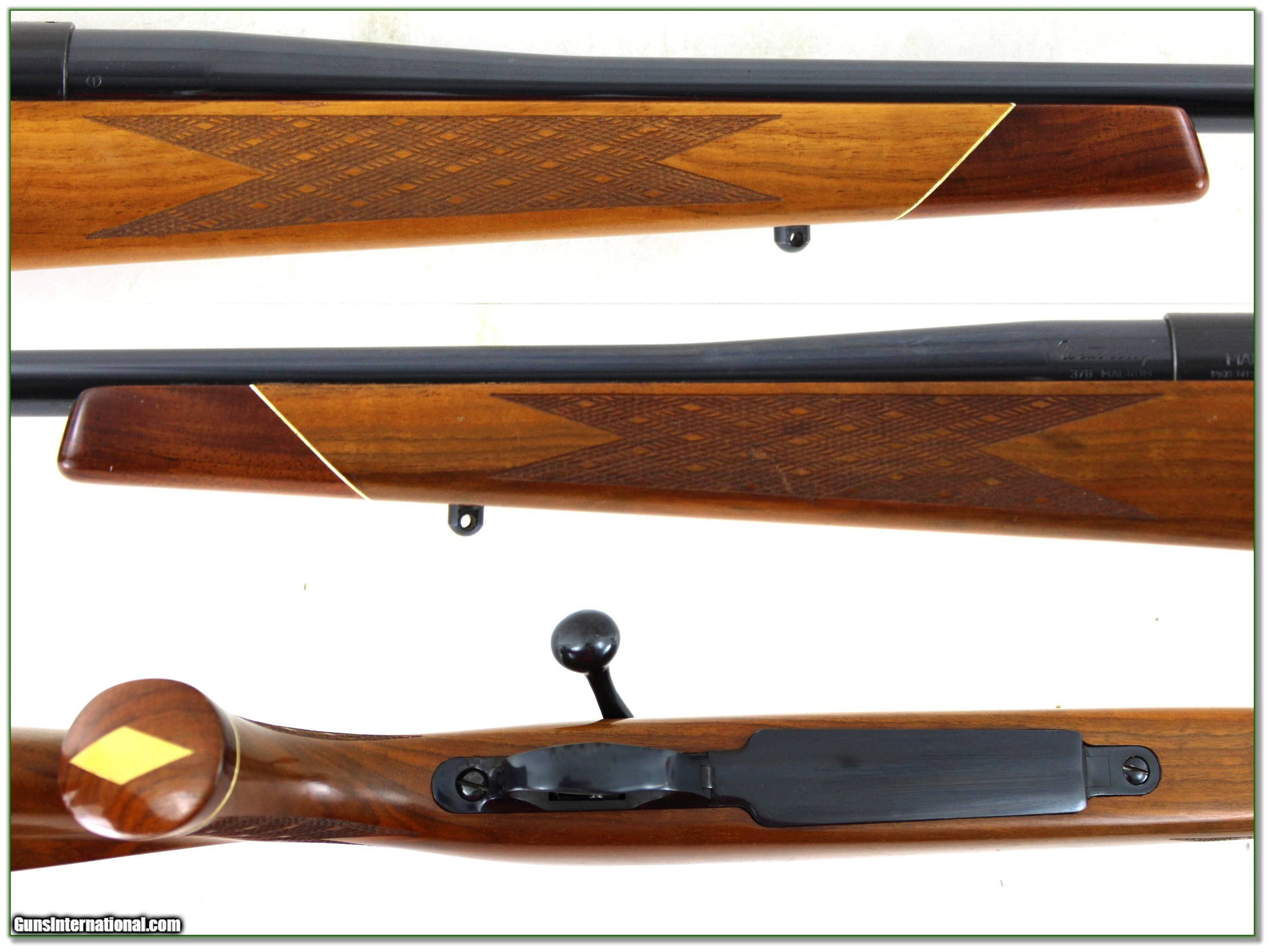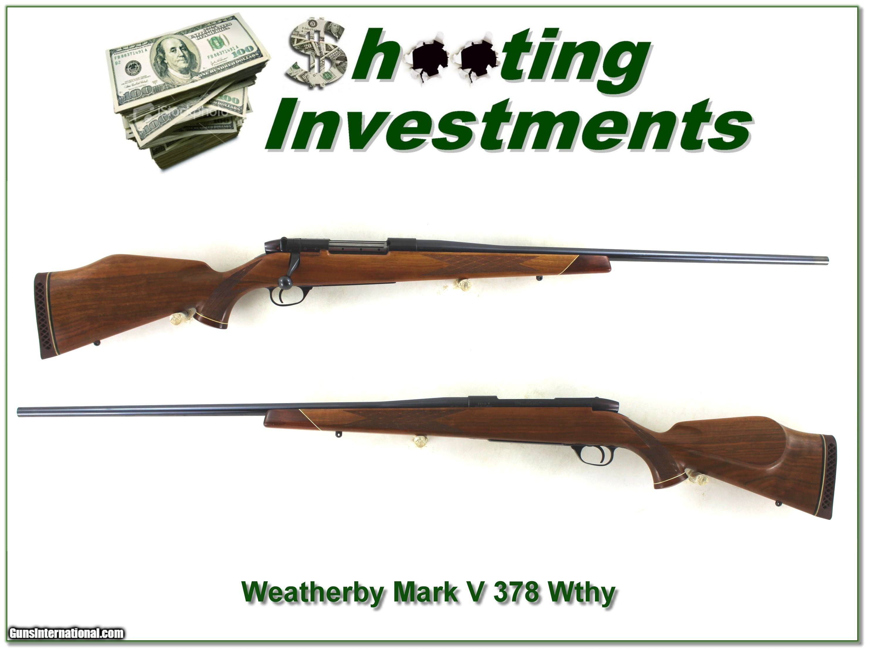 Description: Dangerous game hunters and collectors, this is a very nice 1961 made Weatherby Mark V Deluxe in the hard hitting 378 Weatherby Magnum! This is a German made Weatherby and back then they built the 378 with a standard contour barrel and NO break! So this is relatively light and will have significant recoil! So not for the faint of heart. But I promise if a buffalo is charging you won’t feel a thing! I just find a few minor marks on the walnut and from the bolt I’m sure not many rounds fired! It’s a real Shooting Investment. Shipping and insurance is $59. Please email me with any questions or larger pictures. (Consign your quality firearms with Shooting Investments for only 12%! Let me know if you have any you would like to sell!) 25-0323 Payment: Payment is by Money Order, Cashier’s Check or Personal Check. I can now also accept Credit Cards (MasterCard, Visa, Discover & American Express) with a 3% convenience fee. Shipping: The shipping charge will be listed in each description. It is $49 for most firearms. Some heavy guns or those insured for over $2000 will be higher. Shipments to Alaska and Hawaii are higher because air shipment is required. Most firearms are shipped on Tuesday and Thursday and usually in 5 days of receipt of payment. We package all shipments carefully and insure them. Optics are shipped Priority Mail and most other non-firearm shipments are shipped First Class. Returns: Our return policy is simple. If for any reason you are not pleased with your purchase, you may return your item for a full refund of purchase price. Ammunition cannot be returned. It is important to us that you are happy. Guns cannot be fired or dissembled before returning them and they must be returned in the same condition as received. Notification of a return must occur within 3 days of receipt at your dealer. Shipping, convenience and dealer fees are not refundable and are the responsibility of the buyer. Lay-a-way: If needed, we offer a 60 day lay-a-way option on most firearms. It is 1/3 now, 1/3 in 30 days and 1/3 in 60 days. Lay-a-way firearm sales are final and cannot be returned. If a lay-a-way is not completed the first payment cannot be refunded. Consigning your firearms with Shooting Investments: We will help you get top dollar for your firearms. While most local guns shops charge 20% or more, our fee is only 12% with a minimum of $100. At your local gun shop it might take months to sell. Selling on-line provides instant access to thousands of interested buyers. You won’t find any other on-line dealer willing to sell your firearms for only 12% or listing every gun on 3 separate s. Selling through an House typically costs the seller 15% and the buyer an addition 15% (so 30%) and you have to wait several months to sell and longer to receive funds. If properly priced, we will sell your firearms within a few weeks. Send us an email or give us a call and we’ll explain how easy it is for you to get top dollar. Trading: Trading for us is really just buying your gun to re-sell. If you have a gun you want to trade, please email a picture and we will let you know what we can give for it. You will always get more if we sell it for you on consignment. SOLD |