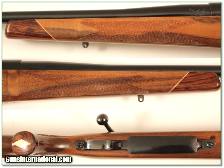 Description: This is a beautiful Waetherby Mark V Deluxe in 257 Wthy Mag. It is the harder to find 26in gun and the wood is Much nicer than most! I see no marks of note and the lugs are razor sharp. I am sure it never fired more than a few rounds. This is a Japan made Mark V which many collectors believe is the highest quality all Mark V production! This is a Shooting Investment and will make a high end hunting gun for sure! Shipping and insurance is $30 or $18 more if you want it shipped in a new Plano hard case. Please email me with any questions or larger pictures. (I now consign quality firearms only 10%! Let me know if you have any you would like to sell!) [14-0963] Payment: Payment is by Money Order, Cashiers Check or Personal Check. I can now also accept MasterCard and Visa with a 3% convenience fee. PayPal can be used for some items but never firearms. Please let us know if you would like to pay via PayPal. Shipping: The shipping charge will be listed in each description. It is $30 for most guns. Some heavy guns or those insured for over $2000 may be higher. Shipments to Alaska and Hawaii are higher because air shipment is required. Most firearms are shipped within 5 days of receipt of payment. We prefer shipping at the beginning of the week to avoid firearms in transit over weekends. We package all shipments carefully and insure them for the full purchase price, rounded up to the next $100. In the unlikely event that damage occurs, it is important that you save all packaging material for the claims process. Optics are shipped Priority Mail and most other non-firearm shipments are shipped First Class. Returns: Our return policy is simple. If for any reason you are not pleased with your purchase, you may return your item for a refund. The only exception is ammunition, it cannot be returned. It is important to us that you are happy. Guns cannot be fired or dissembled before returning them and must be returned in the same condition as received. Notification of a return must occur with-in 3 days of receipt at your dealer. Shipping, convenience and dealer fees are not refundable and are the responsibility of the buyer. Lay-a-way: If needed, we offer a 60 day lay-a-way option on most firearms. It is 1/3 now, 1/3 in 30 days and 1/3 in 60 days. Lay-a-way firearm sales are final. Consigning your firearms with Shooting Investments: We will help you get top dollar for your firearms. While most local guns shops charge 20% or more, our fee is only 10% with a minimum of $50. At your local gun shop it might take months to sell. Selling on-line provides instant access to thousands of interested buyers. You won’t find any other on-line dealer willing to sell your firearms for only 10% or listing every gun on 4 separate s. Selling through an House typically costs the seller 15% and the buyer an addition 15% (so 30%) and you have to wait several months to sell and longer to receive funds. If properly priced, we will sell your firearms in a week or two. Send us an email or give us a call and we’ll explain how easy it is for you to get top dollar. Trading: We collect guns and usually just trade for guns we want to add to our collections. We often sell guns for others wanting to purchase one of ours. We find this the most fair to both of us. Our Commission is only 10% and we hold the gun you want until yours sells. Please contact us if you want to sell one of yours to buy one of ours. Help for California Buyers: We are happy to ship to California. It is the buyer’s responsibility to make sure any item you buy is legal in your state. We are also happy to help with your purchase of a firearm from someone other than us. If you see a gun you would like to buy but the seller can’t or won’t ship to California we can help. You buy the gun and have it shipped to us. We’ll then ship it to your California dealer. The cost for this service is only $30 + shipping. Let me know if we can help! SOLD |