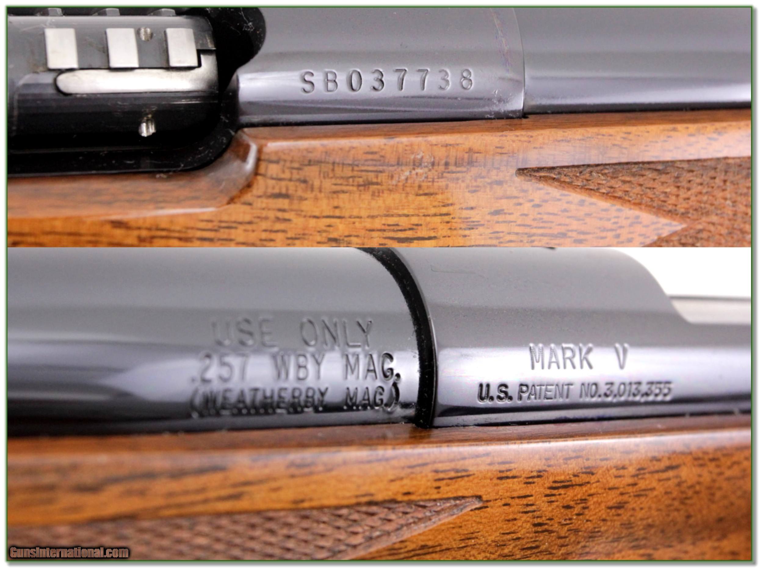Description: This is a beautiful and near new Weatherby Mark V Deluxe in the flat shooting 257 Weatherby Magnum. It is a USA made Mark V with 26in barrel and high gloss blue with high gloss wood. The blue is as new and I only see a few minor handing marks on the wood. From the razor lugs I am sure only fired and few rounds. With he current list price for a new one now over $2700 how can you go wrong and less than half that? Shipping with insurance is $39. Please email me with any questions or larger pictures. (Consign your quality firearms with Shooting Investments for only 12%! Let me know if you have any you would like to sell!) 19-0837 Payment: Payment is by Money Order, Cashiers Check or Personal Check. I can now also accept Credit Cards (MasterCard, Visa, Discover & American Express) with a 3% convenience fee. PayPal can be used for some items but never for firearms. Shipping: The shipping charge will be listed in each description. It is $39 for most firearms. Some heavy guns or those insured for over $2000 will be higher. Shipments to Alaska and Hawaii are higher because air shipment is required. Most firearms are shipped on Tuesday and Thursday and usually in 5 days of receipt of payment. We package all shipments carefully and insure them. Optics are shipped Priority Mail and most other non-firearm shipments are shipped First Class. Returns: Our return policy is simple. If for any reason you are not pleased with your purchase, you may return your item for a full refund of purchase price. Ammunition cannot be returned. It is important to us that you are happy. Guns cannot be fired or dissembled before returning them and they must be returned in the same condition as received. Notification of a return must occur with-in 3 days of receipt at your dealer. Shipping, convenience and dealer fees are not refundable and are the responsibility of the buyer. Lay-a-way: If needed, we offer a 60 day lay-a-way option on most firearms. It is 1/3 now, 1/3 in 30 days and 1/3 in 60 days. Lay-a-way firearm sales are final and if not completed the first payment cannot be returned. Consigning your firearms with Shooting Investments: We will help you get top dollar for your firearms. While most local guns shops charge 20% or more, our fee is only 12% with a minimum of $75. At your local gun shop it might take months to sell. Selling on-line provides instant access to thousands of interested buyers. You won’t find any other on-line dealer willing to sell your firearms for only 12% or listing every gun on 3 separate s. Selling through an House typically costs the seller 15% and the buyer an addition 15% (so 30%) and you have to wait several months to sell and longer to receive funds. If properly priced, we will sell your firearms in a few weeks. Send us an email or give us a call and we’ll explain how easy it is for you to get top dollar. Trading: Trading for use is really just buying your gun to re-sell. If you have a gun you want to trade, please email a picture and we will let you know what we can give or it. You will always get more if we sell it for you on consignment. Help for California Buyers: We are happy to ship to California. It is the buyer’s responsibility to make sure any item you buy is legal in your state. We are also happy to help with your purchase of a firearm from someone other than us. If you see a gun you would like to buy but the seller can’t or won’t ship to California they can ship to use and we’ll then ship it to your California dealer. The cost for this service is only $30 + shipping. Let us know if we can help! SOLD |