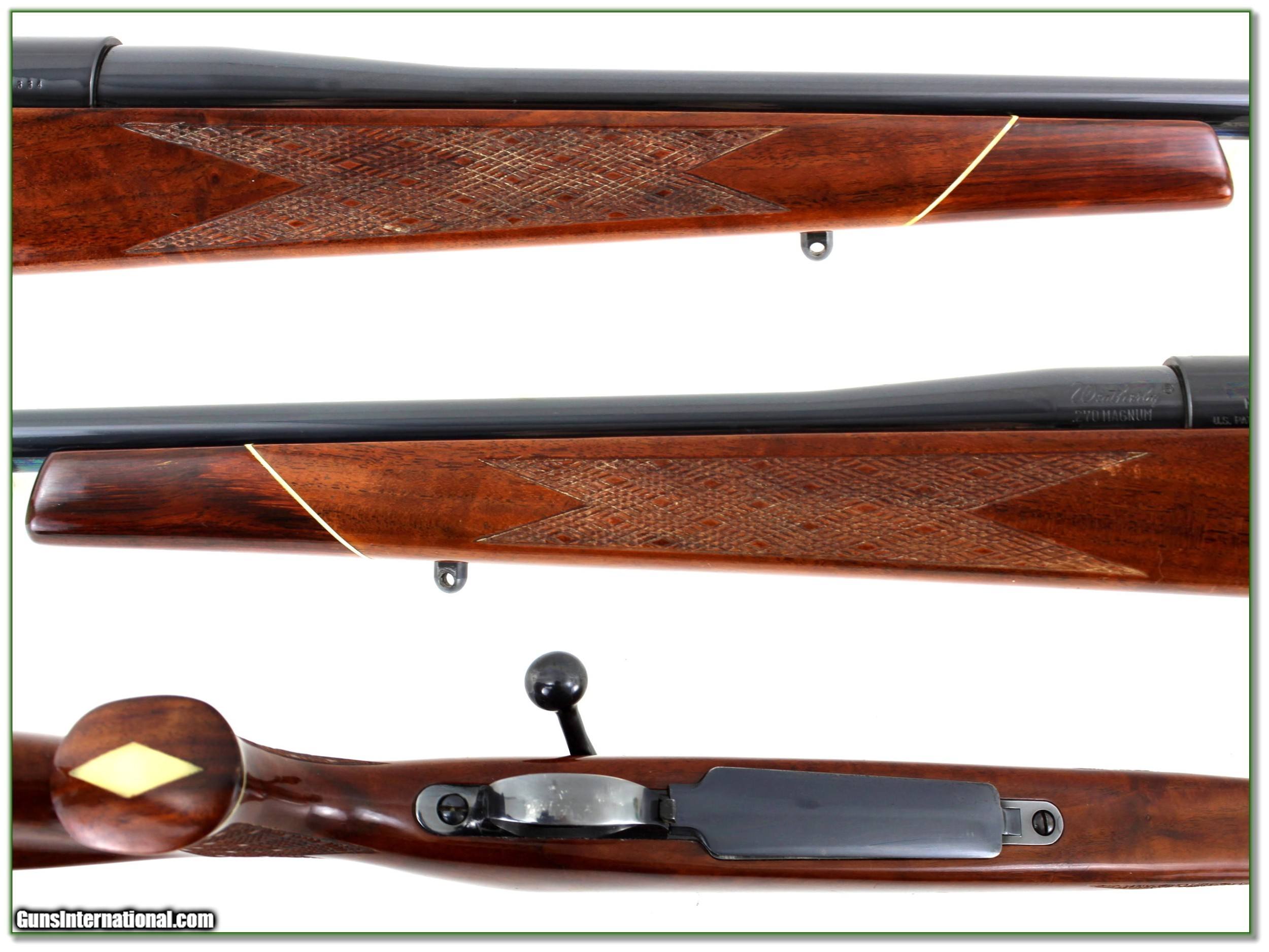 Description: This is a Weatherby Mark V Deluxe in 270 Weatherby Magnum. The blue is excellent just some light wear on the trigger guard. The wood has nice figure with a few minor marks. From the razor sharp lugs we know this one hasn’t fired many rounds. It will make a classic long-range hunting gun and with he price of a new Deluxe it is a real Shooting Investment! It is an early Japan made gun with the lightweight 24in barrel making it the perfect choice for most hunters. Shipping and insurance is $39. Please email me with any questions or larger pictures. (Consign your quality firearms with Shooting Investments for only 12%! Let me know if you have any you would like to sell!) 20-0387 Payment: Payment is by Money Order, Cashiers Check or Personal Check. I can now also accept MasterCard and Visa with a 3% convenience fee. PayPal can be used for some items but never firearms. Please let us know if you would like to pay via PayPal. Shipping: The shipping charge will be listed in each description. It is $39 for most guns. Some heavy guns or those insured for over $2000 will be higher. Shipments to Alaska and Hawaii are higher because air shipment is required. Most firearms are shipped on Tuesday and Thursday and usually in 5 days of receipt of payment. We package all shipments carefully and insure them. Returns: Our return policy is simple. If for any reason you are not pleased with your purchase, you may return your item for a full refund of purchase price. Ammunition cannot be returned. It is important to us that you are happy. Guns cannot be fired or dissembled before returning them and they must be returned in the same condition as received. Notification of a return must occur with-in 3 days of receipt at your dealer. Shipping, convenience and dealer fees are not refundable and are the responsibility of the buyer. Lay-a-way: If needed, we offer a 60 day lay-a-way option on most firearms. It is 1/3 now, 1/3 in 30 days and 1/3 in 60 days. Lay-a-way firearm sales are final and if not completed the first payment cannot be returned. Consigning your firearms with Shooting Investments: We will help you get top dollar for your firearms. While most local guns shops charge 20% or more, our fee is only 12% with a minimum of $75. At your local gun shop it might take months to sell. Selling on-line provides instant access to thousands of interested buyers. You won’t find any other on-line dealer willing to sell your firearms for only 12% or listing every gun on 3 separate s. Selling through an House typically costs the seller 15% and the buyer an addition 15% (so 30%) and you have to wait several months to sell and longer to receive funds. If properly priced, we will sell your firearms in a few weeks. Send us an email or give us a call and we’ll explain how easy it is for you to get top dollar. Trading: Trading for use is really just buying your gun to re-sell. If you have a gun you want to trade, please email a picture and we will let you know what we can give or it. You will always get more if we sell it for you on consignment. Help for California Buyers: We are happy to ship to California. It is the buyer’s responsibility to make sure any item you buy is legal in your state. We are also happy to help with your purchase of a firearm from someone other than us. If you see a gun you would like to buy but the seller can’t or won’t ship to California they can ship to use and we’ll then ship it to your California dealer. The cost for this service is only $30 + shipping. Let us know if we can help! SOLD |