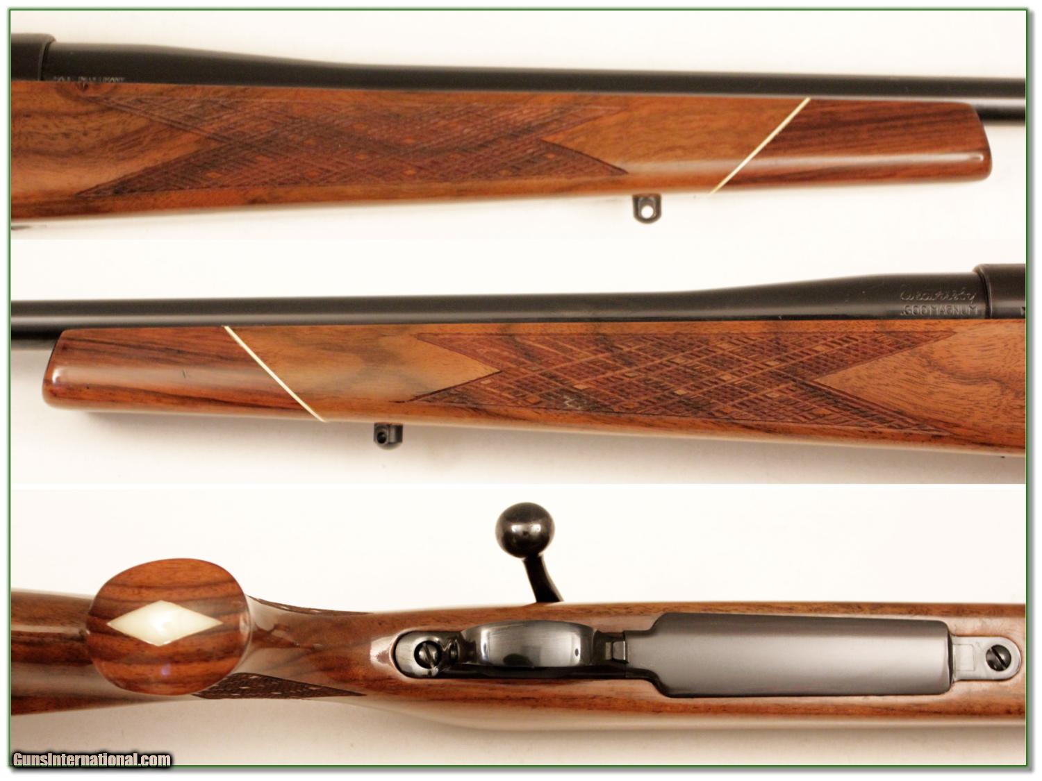 Description: This is a very nice German made Weatherby Mark V Deluxe. It has nicer wood than most of these German guns. It is a 300 Wthy Mag and is the earlier model with side safety. It will make a classic hunting gun or addition to your collection. It has a 24in barrel. Shipping and insurance is $30 or $18 more if you want it shipped in a new Plano hard case. Please email me with any questions or larger pictures. (I now consign quality firearms only 10%! Let me know if you have any you would like to sell!) [15-1069] Payment: Payment is by Money Order, Cashiers Check or Personal Check. I can now also accept MasterCard and Visa with a 3% convenience fee. PayPal can be used for some items but never firearms. Please let us know if you would like to pay via PayPal. Shipping: The shipping charge will be listed in each description. It is $30 for most guns. Some heavy guns or those insured for over $2000 may be higher. Shipments to Alaska and Hawaii are higher because air shipment is required. Most firearms are shipped within 5 days of receipt of payment. We prefer shipping at the beginning of the week to avoid firearms in transit over weekends. We package all shipments carefully and insure them for the full purchase price, rounded up to the next $100. In the unlikely event that damage occurs, it is important that you save all packaging material for the claims process. Optics are shipped Priority Mail and most other non-firearm shipments are shipped First Class. Returns: Our return policy is simple. If for any reason you are not pleased with your purchase, you may return your item for a refund. The only exception is ammunition, it cannot be returned. It is important to us that you are happy. Guns cannot be fired or dissembled before returning them and must be returned in the same condition as received. Notification of a return must occur with-in 3 days of receipt at your dealer. Shipping, convenience and dealer fees are not refundable and are the responsibility of the buyer. Lay-a-way: If needed, we offer a 60 day lay-a-way option on most firearms. It is 1/3 now, 1/3 in 30 days and 1/3 in 60 days. Lay-a-way firearm sales are final. Consigning your firearms with Shooting Investments: We will help you get top dollar for your firearms. While most local guns shops charge 20% or more, our fee is only 10% with a minimum of $50. At your local gun shop it might take months to sell. Selling on-line provides instant access to thousands of interested buyers. You won’t find any other on-line dealer willing to sell your firearms for only 10% or listing every gun on 4 separate s. Selling through an House typically costs the seller 15% and the buyer an addition 15% (so 30%) and you have to wait several months to sell and longer to receive funds. If properly priced, we will sell your firearms in a week or two. Send us an email or give us a call and we’ll explain how easy it is for you to get top dollar. Trading: We collect guns and usually just trade for guns we want to add to our collections. We often sell guns for others wanting to purchase one of ours. We find this the most fair to both of us. Our Commission is only 10% and we hold the gun you want until yours sells. Please contact us if you want to sell one of yours to buy one of ours. Help for California Buyers: We are happy to ship to California. It is the buyer’s responsibility to make sure any item you buy is legal in your state. We are also happy to help with your purchase of a firearm from someone other than us. If you see a gun you would like to buy but the seller can’t or won’t ship to California we can help. You buy the gun and have it shipped to us. We’ll then ship it to your California dealer. The cost for this service is only $30 + shipping. Let me know if we can help! SOLD |