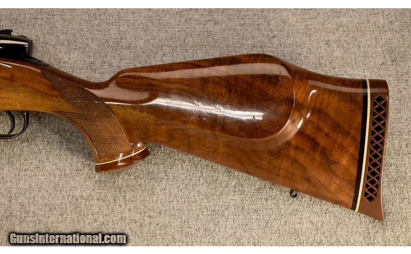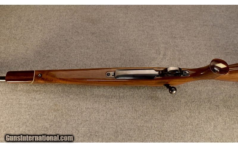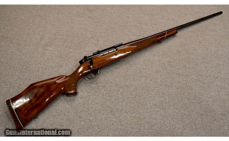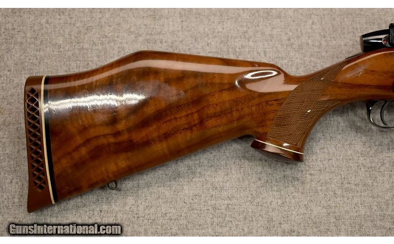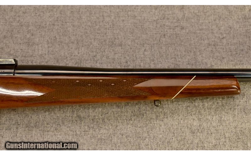 Description: This is a pre-owned Japanese built Weatherby Mark V Deluxe in .300 Weatherby Magnum .300 Weatherby Magnum SOLD Metal Condition: Very good with a few small scratches Wood Condition: Quite good with a number of small to medium sized scratches Bore Condition: Clean with bright lands Barrels: 26 Stock Dimensions: 13 1/2" LOP Fore End: Checkered Claro walnut with rosewood tip and pistol grip cap Butt Pad: Weatherby pad Weight: 8 Lbs. 8 Oz. Sights: One piece scope base installed Item Location: Glendale, AZ |