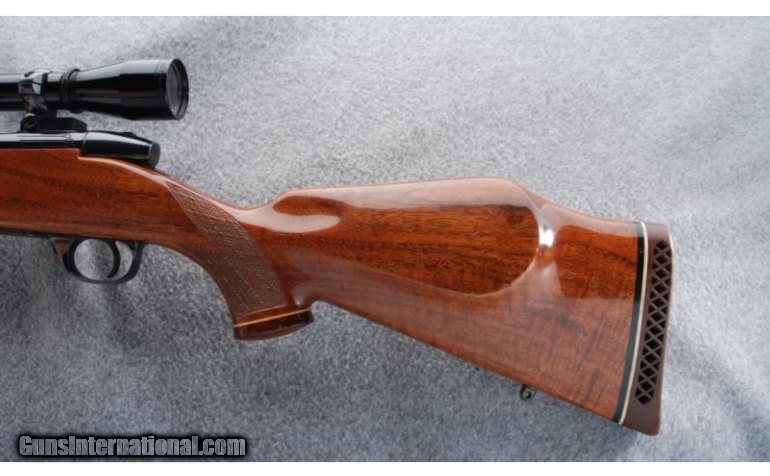 Description: This rifle shows wear from use. It still has a good action and a strong bore. SOLD Caliber Info: .300 Weatherby Magnum Metal Condition: Heavy finish wear on the barrel. Scattered scratches and dings. Wood Condition: Numerous scattered dings and scratches, some large. Bore Condition: Strong bore. Barrels: 24 Triggers: Adjustable. Serrated. Stock: Rosewood capped pistol grip. Stock Dimensions: 13 3/8" LOP Fore End: Rosewood forend tip. Butt Pad: Maker's recoil pad. Weight: 8 lbs. 9 oz. (With scope.) Sights: Leupold M8-4X scope. Item Location: Gonzales, LA |
