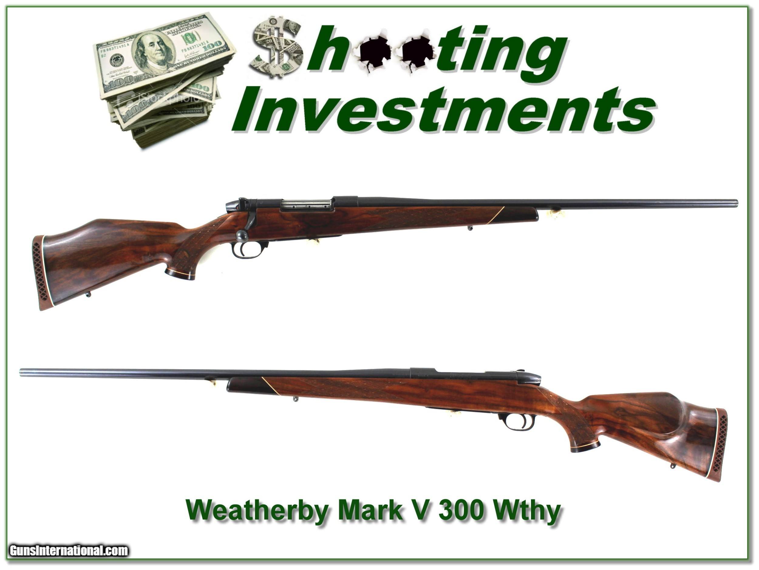 Description: Shooters and hunters, this is a beautiful Weatherby Mark V Deluxe in the 300 Weatherby Magnum. It has outstanding wood colors and figure and a 26in barrel. The wood has only a few minor marks and from the bolt lugs I’m sure only a few rounds fired. It will make a classic high-end hunting gun. Shipping and insurance is $49. Please email me with any questions or larger pictures. (Consign your quality firearms with Shooting Investments for only 12%! Let me know if you have any you would like to sell!) 22-0860 Payment: Payment is by Money Order, Cashier’s Check or Personal Check. I can now also accept Credit Cards (MasterCard, Visa, Discover & American Express) with a 3% convenience fee. Shipping: The shipping charge will be listed in each description. It is $39 for most firearms. Some heavy guns or those insured for over $2000 will be higher. Shipments to Alaska and Hawaii are higher because air shipment is required. Most firearms are shipped on Tuesday and Thursday and usually in 5 days of receipt of payment. We package all shipments carefully and insure them. Optics are shipped Priority Mail and most other non-firearm shipments are shipped First Class. Returns: Our return policy is simple. If for any reason you are not pleased with your purchase, you may return your item for a full refund of purchase price. Ammunition cannot be returned. It is important to us that you are happy. Guns cannot be fired or dissembled before returning them and they must be returned in the same condition as received. Notification of a return must occur within 3 days of receipt at your dealer. Shipping, convenience and dealer fees are not refundable and are the responsibility of the buyer. Lay-a-way: If needed, we offer a 60 day lay-a-way option on most firearms. It is 1/3 now, 1/3 in 30 days and 1/3 in 60 days. Lay-a-way firearm sales are final and cannot be returned. If a lay-a-way is not completed the first payment cannot be refunded. Consigning your firearms with Shooting Investments: We will help you get top dollar for your firearms. While most local guns shops charge 20% or more, our fee is only 12% with a minimum of $75. At your local gun shop it might take months to sell. Selling on-line provides instant access to thousands of interested buyers. You won’t find any other on-line dealer willing to sell your firearms for only 12% or listing every gun on 3 separate s. Selling through an House typically costs the seller 15% and the buyer an addition 15% (so 30%) and you have to wait several months to sell and longer to receive funds. If properly priced, we will sell your firearms within a few weeks. Send us an email or give us a call and we’ll explain how easy it is for you to get top dollar. Trading: Trading for us is really just buying your gun to re-sell. If you have a gun you want to trade, please email a picture and we will let you know what we can give for it. You will always get more if we sell it for you on consignment. Help for California Buyers: We are happy to ship to California. It is the buyer’s responsibility to make sure any item you buy is legal in your state. We are also happy to help with your purchase of a firearm from someone other than us. If you see a gun you would like to buy but the seller can’t or won’t ship to California they can ship to use and we’ll then ship it to your California dealer. The cost for this service is only $30 + shipping. Let us know if we can help! SOLD |