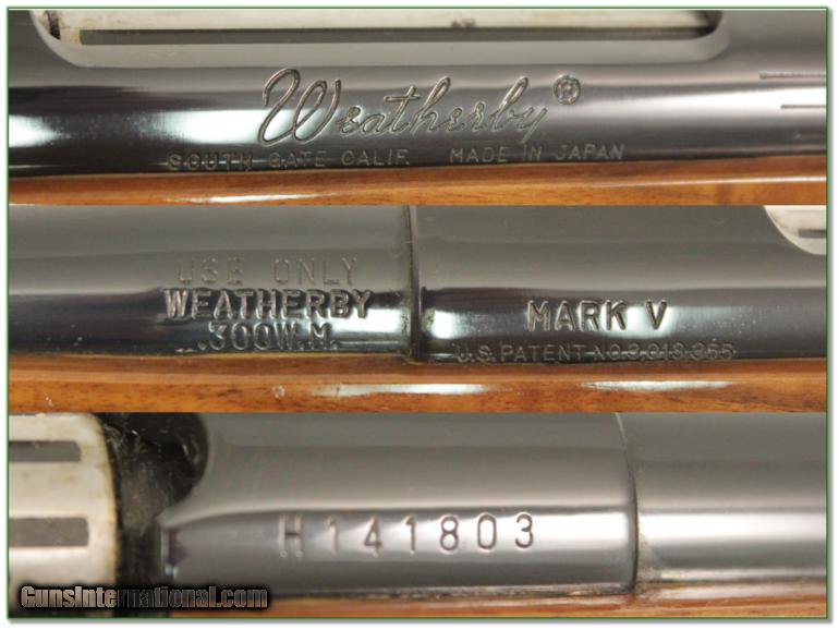 Description: This is a near new and beautiful Weatherby mark V Deluxe. I see no marks on the blue and the wood has only an insignificant handing mark or two with very nice grain and colors. This one is the lighter weight Japan made 24in gun. These are no longer made and many collectors agree the Japan guns are the highest quality of all. Shipping and insurance is $30 or $18 more if you want it shipped in a new Plano hard case. Please email me with any questions or larger pictures. (I now consign quality firearms only 10%! Let me know if you have any you would like to sell!) [14-0572] Terms & Conditions Payment: Payment is by Money Order, Cashiers Check or Personal Check. I can now also accept MasterCard and Visa with a 3% convenience fee. PayPal can be used for some items but never firearms. Please let us know if you would like to pay via PayPal. Shipping: The shipping charge will be listed in each description. It is $30 for most guns. Some heavy guns or those insured for over $2000 may be higher. Shipments to Alaska and Hawaii are higher because air shipment is required. Most firearms are shipped within 5 days of receipt of payment. We prefer shipping at the beginning of the week to avoid firearms in transit over weekends. We package all shipments carefully and insure them for the full purchase price, rounded up to the next $100. In the unlikely event that damage occurs, it is important that you save all packaging material for the claims process. Optics are shipped Priority Mail and most other non-firearm shipments are shipped First Class. Returns: Our return policy is simple. If for any reason you are not pleased with your purchase, you may return your item for a refund. The only exception is ammunition, it cannot be returned. It is important to us that you are happy. Guns cannot be fired or dissembled before returning them and must be returned in the same condition as received. Notification of a return must occur with-in 3 days of receipt at your dealer. Shipping, convenience and dealer fees are not refundable and are the responsibility of the buyer. Lay-a-way: If needed, we offer a 60 day lay-a-way option on most firearms. It is 1/3 now, 1/3 in 30 days and 1/3 in 60 days. Lay-a-way firearm sales are final. Consigning your firearms with Shooting Investments: We will help you get top dollar for your firearms. While most local guns shops charge 20% or more, our fee is only 10% with a minimum of $50. At your local gun shop it might take months to sell. Selling on-line provides instant access to thousands of interested buyers. You won’t find any other on-line dealer willing to sell your firearms for only 10% or listing every gun on 4 separate s. Selling through an House typically costs 15% and you have to wait several months to sell and longer to receive funds. If properly priced, we will sell your firearms in a week or two. Send us an email or give us a call and we’ll explain how easy it is for you to get top dollar. Trading: We collect guns and usually just trade for guns we want to add to our collections. We often sell guns for others wanting to purchase one of ours. We find this the most fair to both of us. Our Commission is only 10% and we hold the gun you want until yours sells. Please contact us if you want to sell one of yours to buy one of ours. Help for California Buyers: We are happy to ship to California. It is the buyer’s responsibility to make sure any item you buy is legal in your state. We are also happy to help with your purchase of a firearm from someone other than us. If you see a gun you would like to buy but the seller can’t or won’t ship to California we can help. You buy the gun and have it shipped to us. We’ll then ship it to your California dealer. The cost for this service is only $30 + shipping. Let me know if we can help! SOLD |