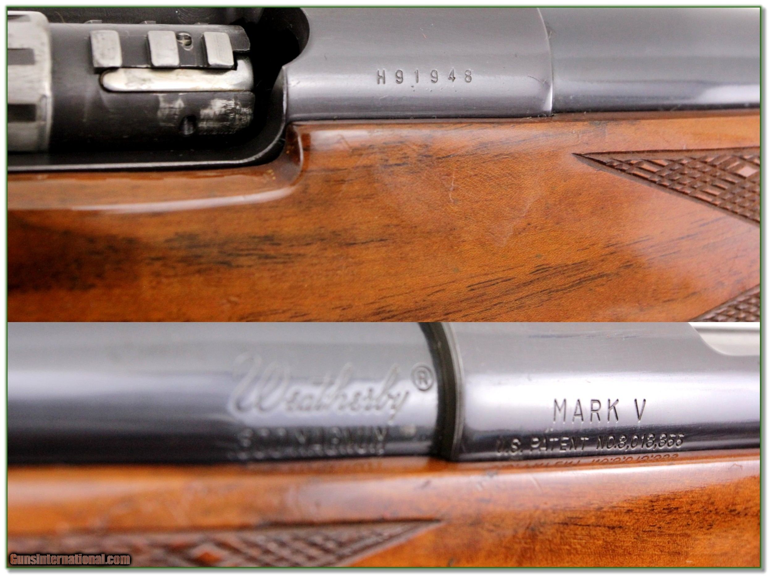 Description: This is a Weatherby Mark V Deluxe in 300 Weatherby Magnum. It is a 24in Light Weight and will make a classic high-end hunting gun. The lugs are still very sharp so I’m sure not many rounds fired. It has some scattered marks from use. The blue is excellent but for a small spot on the outside of the barrel I expect from a blood stain. The bore is bright and shinny! Shipping with insurance is $39. Please email me with any questions or larger pictures. (Consign your quality firearms with Shooting Investments for only 12%! Let me know if you have any you would like to sell!) 19-1129 Payment: Payment is by Money Order, Cashiers Check or Personal Check. I can now also accept Credit Cards (MasterCard, Visa, Discover & American Express) with a 3% convenience fee. PayPal can be used for some items but never for firearms. Shipping: The shipping charge will be listed in each description. It is $39 for most firearms. Some heavy guns or those insured for over $2000 will be higher. Shipments to Alaska and Hawaii are higher because air shipment is required. Most firearms are shipped on Tuesday and Thursday and usually in 5 days of receipt of payment. We package all shipments carefully and insure them. Optics are shipped Priority Mail and most other non-firearm shipments are shipped First Class. Returns: Our return policy is simple. If for any reason you are not pleased with your purchase, you may return your item for a full refund of purchase price. Ammunition cannot be returned. It is important to us that you are happy. Guns cannot be fired or dissembled before returning them and they must be returned in the same condition as received. Notification of a return must occur with-in 3 days of receipt at your dealer. Shipping, convenience and dealer fees are not refundable and are the responsibility of the buyer. Lay-a-way: If needed, we offer a 60 day lay-a-way option on most firearms. It is 1/3 now, 1/3 in 30 days and 1/3 in 60 days. Lay-a-way firearm sales are final and if not completed the first payment cannot be returned. Consigning your firearms with Shooting Investments: We will help you get top dollar for your firearms. While most local guns shops charge 20% or more, our fee is only 12% with a minimum of $75. At your local gun shop it might take months to sell. Selling on-line provides instant access to thousands of interested buyers. You won’t find any other on-line dealer willing to sell your firearms for only 12% or listing every gun on 3 separate s. Selling through an House typically costs the seller 15% and the buyer an addition 15% (so 30%) and you have to wait several months to sell and longer to receive funds. If properly priced, we will sell your firearms in a few weeks. Send us an email or give us a call and we’ll explain how easy it is for you to get top dollar. Trading: Trading for use is really just buying your gun to re-sell. If you have a gun you want to trade, please email a picture and we will let you know what we can give or it. You will always get more if we sell it for you on consignment. Help for California Buyers: We are happy to ship to California. It is the buyer’s responsibility to make sure any item you buy is legal in your state. We are also happy to help with your purchase of a firearm from someone other than us. If you see a gun you would like to buy but the seller can’t or won’t ship to California they can ship to use and we’ll then ship it to your California dealer. The cost for this service is only $30 + shipping. Let us know if we can help! SOLD |