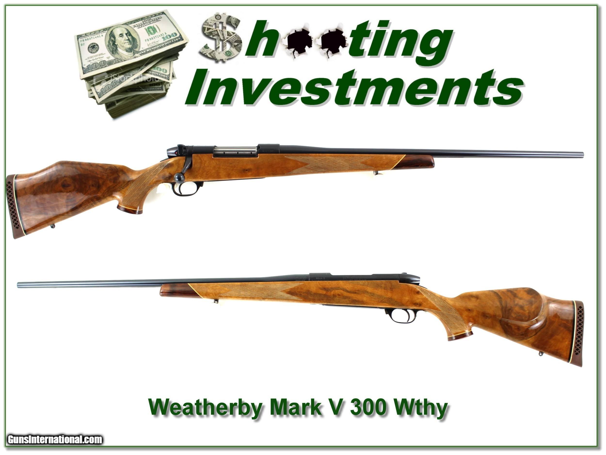 Description: Looks at the wood on this Weatherby! It would be hard to find nicer! This is a Mark V Deluxe in the hard hitting 300 Weatherby. The lugs are razor sharp and I’m sure only a few rounds fired. Both metal and wood are about new with no marks of note. If you are looking for a special gun, this is it! This one has the lighter weight 24in barrel making it perfect for most hunters. Considering a new Deluxe not lists for $2349 how can you go wrong here! Shipping and insurance is $39. Please email me with any questions or larger pictures. (Consign your quality firearms with Shooting Investments for only 12%! Let me know if you have any you would like to sell!) 20-0306 Payment: Payment is by Money Order, Cashiers Check or Personal Check. I can now also accept Credit Cards (MasterCard, Visa, Discover & American Express) with a 3% convenience fee. PayPal can be used for some items but never for firearms. Shipping: The shipping charge will be listed in each description. It is $39 for most firearms. Some heavy guns or those insured for over $2000 will be higher. Shipments to Alaska and Hawaii are higher because air shipment is required. Most firearms are shipped on Tuesday and Thursday and usually in 5 days of receipt of payment. We package all shipments carefully and insure them. Optics are shipped Priority Mail and most other non-firearm shipments are shipped First Class. Returns: Our return policy is simple. If for any reason you are not pleased with your purchase, you may return your item for a full refund of purchase price. Ammunition cannot be returned. It is important to us that you are happy. Guns cannot be fired or dissembled before returning them and they must be returned in the same condition as received. Notification of a return must occur with-in 3 days of receipt at your dealer. Shipping, convenience and dealer fees are not refundable and are the responsibility of the buyer. Lay-a-way: If needed, we offer a 60 day lay-a-way option on most firearms. It is 1/3 now, 1/3 in 30 days and 1/3 in 60 days. Lay-a-way firearm sales are final and if not completed the first payment cannot be returned. Consigning your firearms with Shooting Investments: We will help you get top dollar for your firearms. While most local guns shops charge 20% or more, our fee is only 12% with a minimum of $75. At your local gun shop it might take months to sell. Selling on-line provides instant access to thousands of interested buyers. You won’t find any other on-line dealer willing to sell your firearms for only 12% or listing every gun on 3 separate s. Selling through an House typically costs the seller 15% and the buyer an addition 15% (so 30%) and you have to wait several months to sell and longer to receive funds. If properly priced, we will sell your firearms in a few weeks. Send us an email or give us a call and we’ll explain how easy it is for you to get top dollar. Trading: Trading for use is really just buying your gun to re-sell. If you have a gun you want to trade, please email a picture and we will let you know what we can give or it. You will always get more if we sell it for you on consignment. Help for California Buyers: We are happy to ship to California. It is the buyer’s responsibility to make sure any item you buy is legal in your state. We are also happy to help with your purchase of a firearm from someone other than us. If you see a gun you would like to buy but the seller can’t or won’t ship to California they can ship to use and we’ll then ship it to your California dealer. The cost for this service is only $30 + shipping. Let us know if we can help! SOLD |