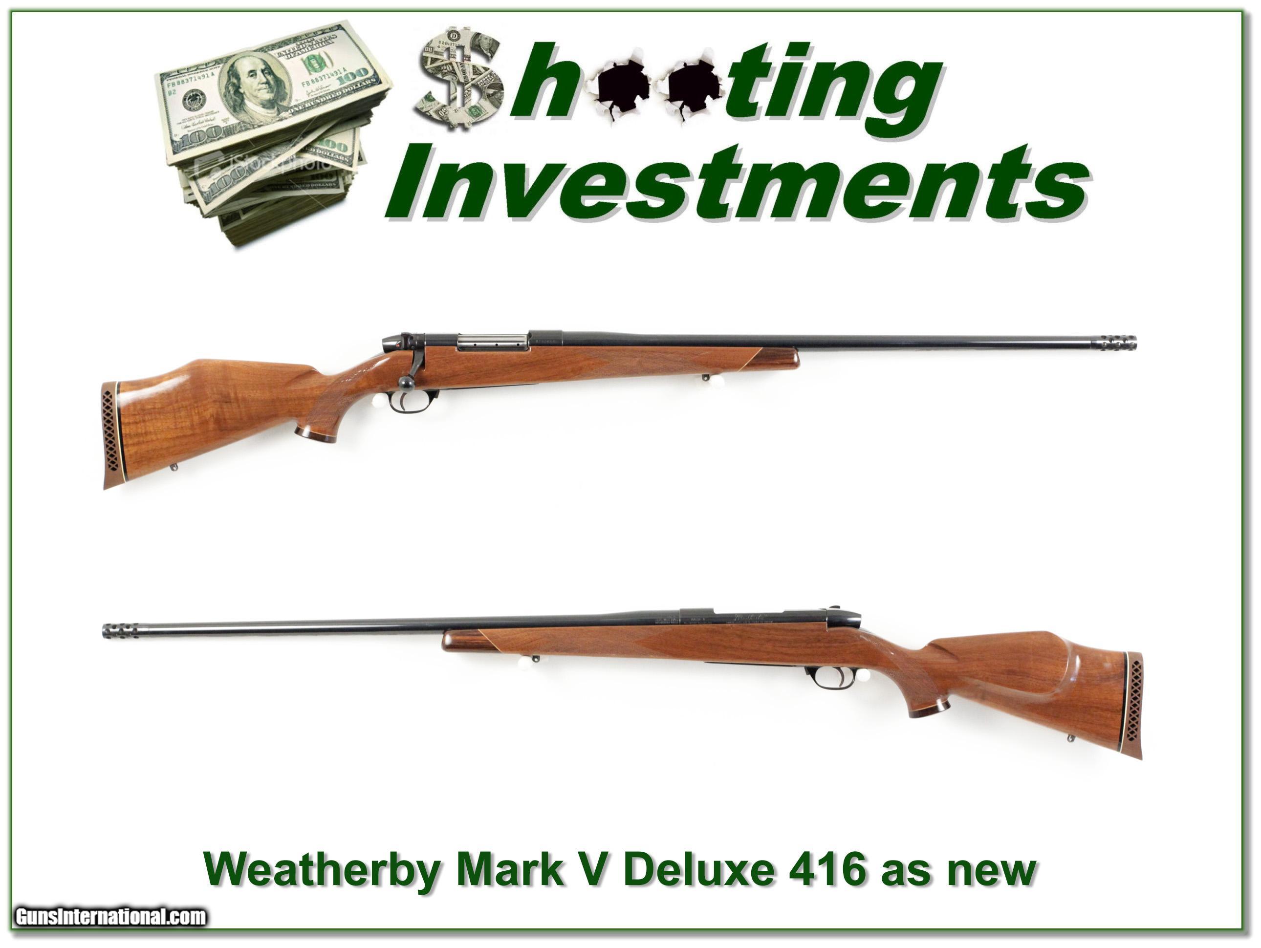 Description: Collectors and dangerous game hunters, this is a like new and beautiful Weatherby Mark V Deluxe. This is a Japan made gun with 26in barrel + accubreak. Many collectors believe it is the Japanese production that is the highest quality of all Mark Vs. This will make a fine addition to any collection or of course be a classic hunting gun! With the current list price now at $3000, you can’t go wrong here! Shipping and insurance is $35 or $15 more if you want it shipped in a new Plano hard case. Please email me with any questions or larger pictures. (Consign your quality firearms with Shooting Investments for only 10%! Let me know if you have any you would like to sell!) 17-0415 Payment: Payment is by Money Order, Cashiers Check or Personal Check. I can now also accept MasterCard and Visa with a 3% convenience fee. PayPal can be used for some items but never firearms. Please let us know if you would like to pay via PayPal. Shipping: The shipping charge will be listed in each description. It is $35 for most guns. Some heavy guns or those insured for over $2000 will be higher. Shipments to Alaska and Hawaii are higher because air shipment is required. Most firearms are shipped within 5 days of receipt of payment. We prefer shipping at the beginning of the week to avoid firearms in transit over weekends. We package all shipments carefully and insure them for the full purchase price, rounded up to the next $100. In the unlikely event that damage occurs, it is important that you save all packaging material for the claims process. Optics are shipped Priority Mail and most other non-firearm shipments are shipped First Class. Returns: Our return policy is simple. If for any reason you are not pleased with your purchase, you may return your item for a refund. The only exception is ammunition, it cannot be returned. It is important to us that you are happy. Guns cannot be fired or dissembled before returning them and must be returned in the same condition as received. Notification of a return must occur with-in 3 days of receipt at your dealer. Shipping, convenience and dealer fees are not refundable and are the responsibility of the buyer. Lay-a-way: If needed, we offer a 60 day lay-a-way option on most firearms. It is 1/3 now, 1/3 in 30 days and 1/3 in 60 days. Lay-a-way firearm sales are final. Consigning your firearms with Shooting Investments: We will help you get top dollar for your firearms. While most local guns shops charge 20% or more, our fee is only 10% with a minimum of $50. At your local gun shop it might take months to sell. Selling on-line provides instant access to thousands of interested buyers. You won’t find any other on-line dealer willing to sell your firearms for only 10% or listing every gun on 4 separate s. Selling through an House typically costs the seller 15% and the buyer an addition 15% (so 30%) and you have to wait several months to sell and longer to receive funds. If properly priced, we will sell your firearms in a week or two. Send us an email or give us a call and we’ll explain how easy it is for you to get top dollar. Trading: We collect guns and usually just trade for guns we want to add to our collections. We often sell guns for others wanting to purchase one of ours. We find this the most fair to both of us. Our Commission is only 10% and we hold the gun you want until yours sells. Please contact us if you want to sell one of yours to buy one of ours. Help for California Buyers: We are happy to ship to California. It is the buyer’s responsibility to make sure any item you buy is legal in your state. We are also happy to help with your purchase of a firearm from someone other than us. If you see a gun you would like to buy but the seller can’t or won’t ship to California we can help. You buy the gun and have it shipped to us. We’ll then ship it to your California dealer. The cost for this service is only $30 + shipping. Let me know if we can help! SOLD |