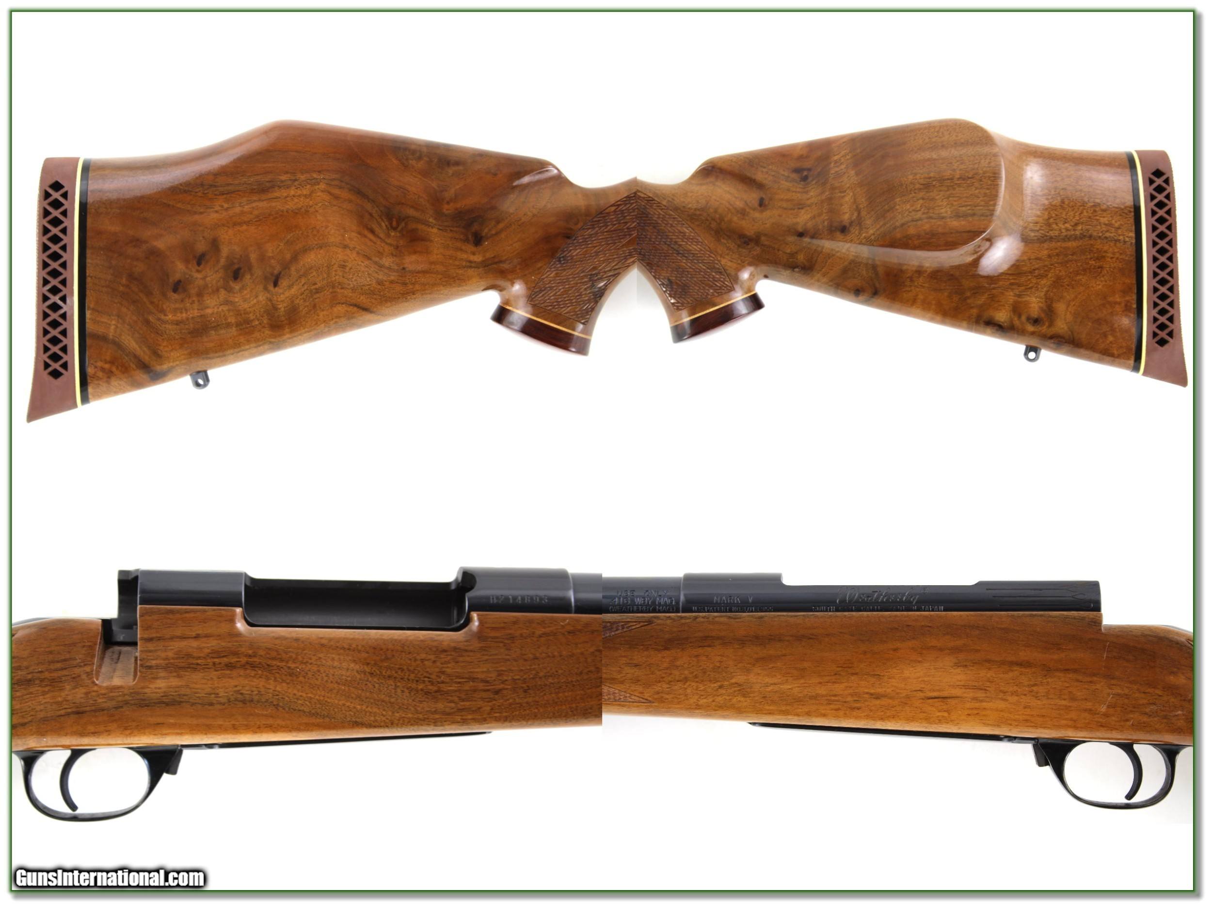 Description: Collectors, this is the hard-hitting Weatherby Mark V Deluxe 416 Weatherby Magnum in new condition. I believe unfired since leaving the factory with no scope ever mounted. It is a RARE 26in Mark V in 416. In the early production you could order one with the 26in barrel and factory magna-porting or 26in threaded barrel with factory break. Nearly all came threaded with break and 28in total barrel length. This one was order with magna-porting and thus the shorted 26in barrel. It has beautiful wood with no marks I find. It is a real Shooting Investment. It come is box as seen but there is no end label. Shipping and insurance is $39. Please email me with any questions or larger pictures. (Consign your quality firearms with Shooting Investments for only 12%! Let me know if you have any you would like to sell!) 21-0265 Payment: Payment is by Money Order, Cashier’s Check or Personal Check. I can now also accept Credit Cards (MasterCard, Visa, Discover & American Express) with a 3% convenience fee. Shipping: The shipping charge will be listed in each description. It is $39 for most firearms. Some heavy guns or those insured for over $2000 will be higher. Shipments to Alaska and Hawaii are higher because air shipment is required. Most firearms are shipped on Tuesday and Thursday and usually in 5 days of receipt of payment. We package all shipments carefully and insure them. Optics are shipped Priority Mail and most other non-firearm shipments are shipped First Class. Returns: Our return policy is simple. If for any reason you are not pleased with your purchase, you may return your item for a full refund of purchase price. Ammunition cannot be returned. It is important to us that you are happy. Guns cannot be fired or dissembled before returning them and they must be returned in the same condition as received. Notification of a return must occur within 3 days of receipt at your dealer. Shipping, convenience and dealer fees are not refundable and are the responsibility of the buyer. Lay-a-way: If needed, we offer a 60 day lay-a-way option on most firearms. It is 1/3 now, 1/3 in 30 days and 1/3 in 60 days. Lay-a-way firearm sales are final and cannot be returned. If a lay-a-way is not completed the first payment cannot be refunded. Consigning your firearms with Shooting Investments: We will help you get top dollar for your firearms. While most local guns shops charge 20% or more, our fee is only 12% with a minimum of $75. At your local gun shop it might take months to sell. Selling on-line provides instant access to thousands of interested buyers. You won’t find any other on-line dealer willing to sell your firearms for only 12% or listing every gun on 3 separate s. Selling through an House typically costs the seller 15% and the buyer an addition 15% (so 30%) and you have to wait several months to sell and longer to receive funds. If properly priced, we will sell your firearms within a few weeks. Send us an email or give us a call and we’ll explain how easy it is for you to get top dollar. Trading: Trading for us is really just buying your gun to re-sell. If you have a gun you want to trade, please email a picture and we will let you know what we can give for it. You will always get more if we sell it for you on consignment. Help for California Buyers: We are happy to ship to California. It is the buyer’s responsibility to make sure any item you buy is legal in your state. We are also happy to help with your purchase of a firearm from someone other than us. If you see a gun you would like to buy but the seller can’t or won’t ship to California they can ship to use and we’ll then ship it to your California dealer. The cost for this service is only $30 + shipping. Let us know if we can help! SOLD |