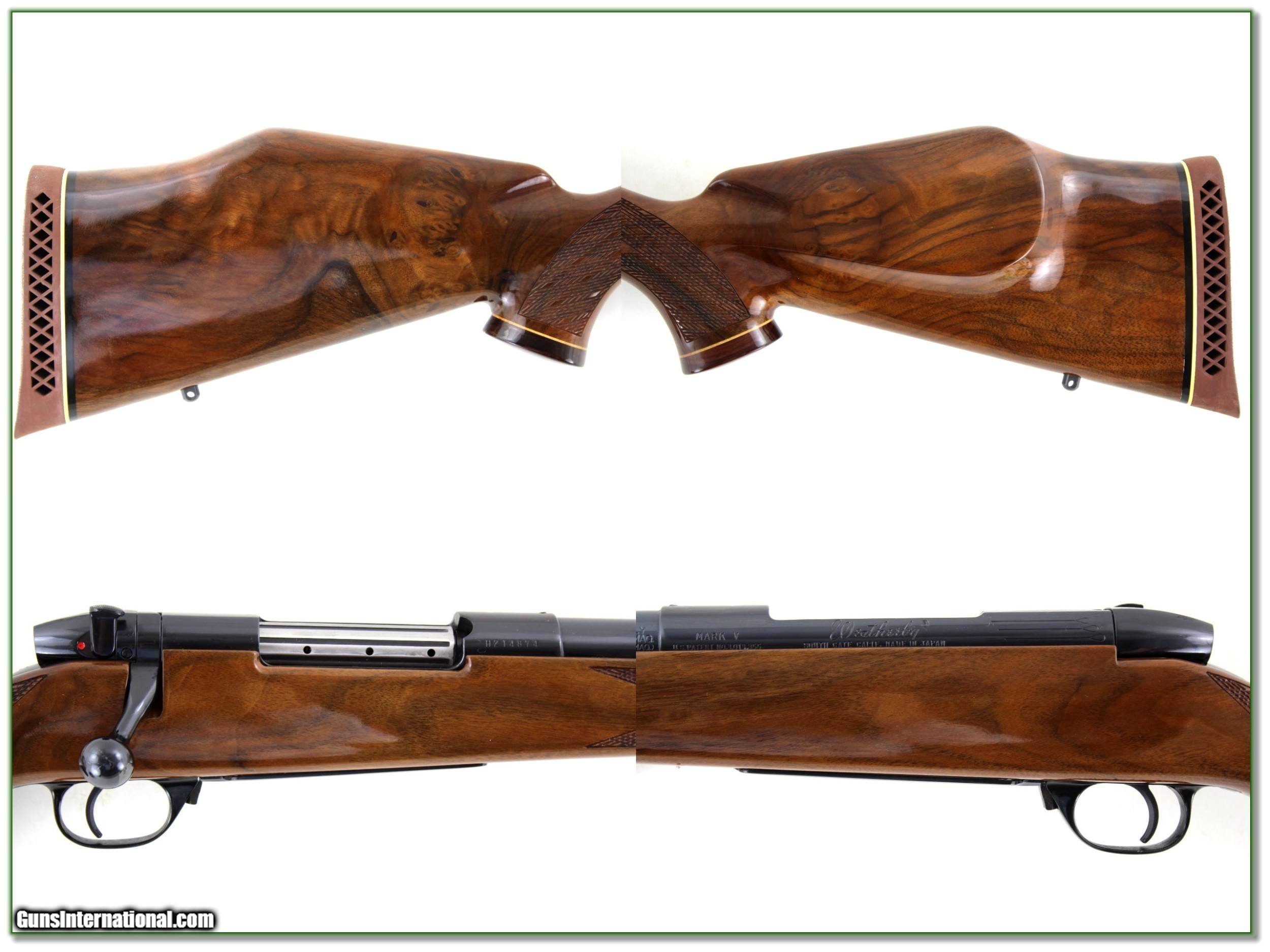 Description: Collectors, this is the hard-hitting Weatherby Mark V Deluxe 416 Weatherby Magnum in new condition. From he bolt face it looks unfired. It has a factory Accubreak and a 26in barrel (total length). It has MUCH better wood figure than typical of the big bores. I find no marks on the metl or wood. It is a real Shooting Investment. Shipping and insurance is $49. Please email me with any questions or larger pictures. (Consign your quality firearms with Shooting Investments for only 12%! Let me know if you have any you would like to sell!) 21-1529 Payment: Payment is by Money Order, Cashiers Check or Personal Check. I can now also accept Credit Cards (MasterCard, Visa, Discover & American Express) with a 3% convenience fee. Shipping: The shipping charge will be listed in each description. It is $39 for most firearms. Some heavy guns or those insured for over $2000 will be higher. Shipments to Alaska and Hawaii are higher because air shipment is required. Most firearms are shipped on Tuesday and Thursday and usually in 5 days of receipt of payment. We package all shipments carefully and insure them. Optics are shipped Priority Mail and most other non-firearm shipments are shipped First Class. Returns: Our return policy is simple. If for any reason you are not pleased with your purchase, you may return your item for a full refund of purchase price. Ammunition cannot be returned. It is important to us that you are happy. Guns cannot be fired or dissembled before returning them and they must be returned in the same condition as received. Notification of a return must occur with-in 3 days of receipt at your dealer. Shipping, convenience and dealer fees are not refundable and are the responsibility of the buyer. Lay-a-way: If needed, we offer a 60 day lay-a-way option on most firearms. It is 1/3 now, 1/3 in 30 days and 1/3 in 60 days. Lay-a-way firearm sales are final and if not completed the first payment cannot be returned. Consigning your firearms with Shooting Investments: We will help you get top dollar for your firearms. While most local guns shops charge 20% or more, our fee is only 12% with a minimum of $75. At your local gun shop it might take months to sell. Selling on-line provides instant access to thousands of interested buyers. You won’t find any other on-line dealer willing to sell your firearms for only 12% or listing every gun on 3 separate s. Selling through an House typically costs the seller 15% and the buyer an addition 15% (so 30%) and you have to wait several months to sell and longer to receive funds. If properly priced, we will sell your firearms in a few weeks. Send us an email or give us a call and we’ll explain how easy it is for you to get top dollar. Trading: Trading for use is really just buying your gun to re-sell. If you have a gun you want to trade, please email a picture and we will let you know what we can give or it. You will always get more if we sell it for you on consignment. Help for California Buyers: We are happy to ship to California. It is the buyer’s responsibility to make sure any item you buy is legal in your state. We are also happy to help with your purchase of a firearm from someone other than us. If you see a gun you would like to buy but the seller can’t or won’t ship to California they can ship to use and we’ll then ship it to your California dealer. The cost for this service is only $30 + shipping. Let us know if we can help! SOLD |