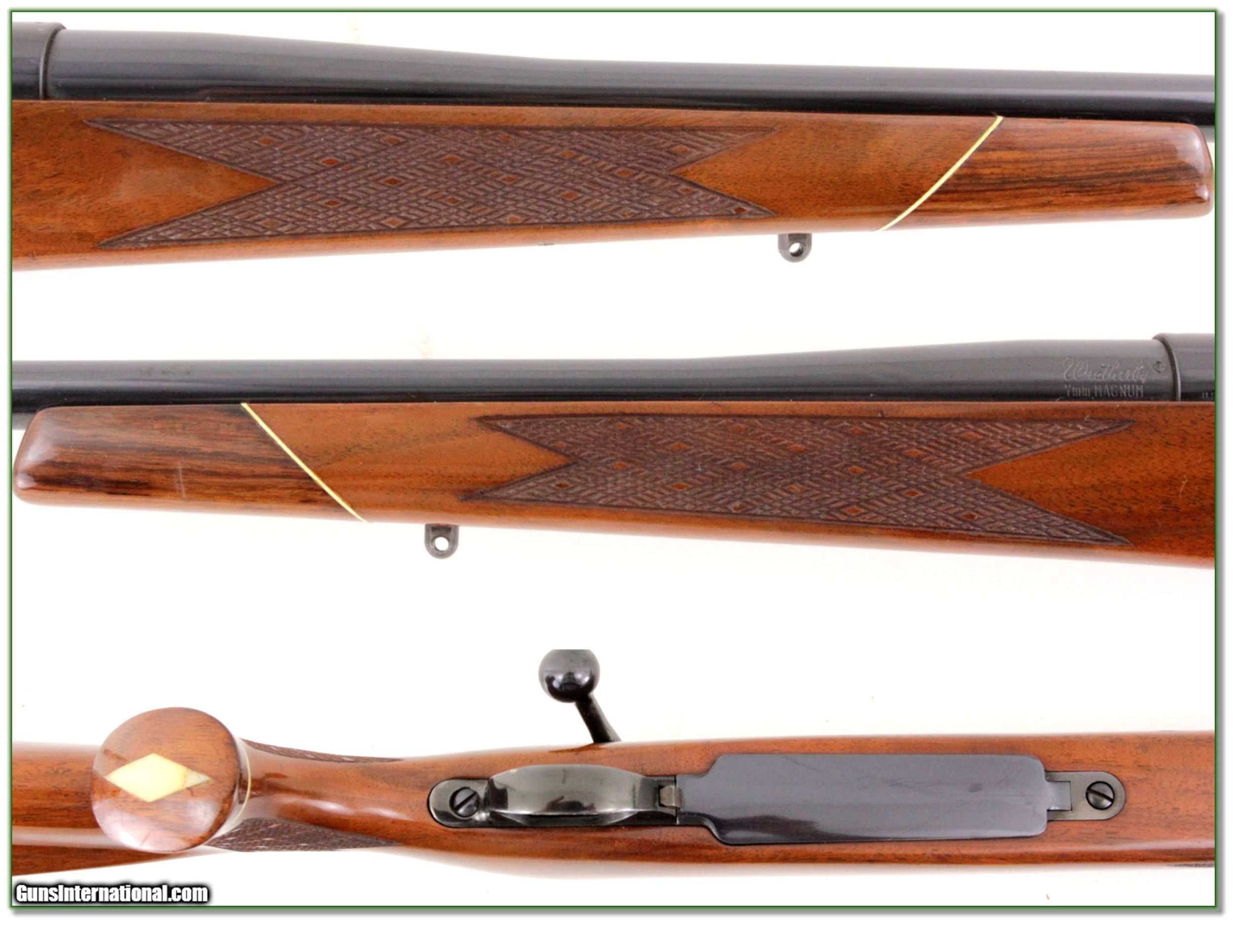 Description: This is a Weatherby Mark V Deluxe in 7mm Weatherby Magnum. It is in excellent condition with just a few minor marks. The bolt lugs are razor sharp so I know only a few rounds fired. This is a top-quality Japan made Mark V and with the current list price for a new Deluxe at $2700 how can you go wrong here! Shipping with insurance is $39. Please email me with any questions or larger pictures. (Consign your quality firearms with Shooting Investments for only 12%! Let me know if you have any you would like to sell!) 19-0619 Payment: Payment is by Money Order, Cashiers Check or Personal Check. I can now also accept MasterCard and Visa with a 3% convenience fee. PayPal can be used for some items but never firearms. Please let us know if you would like to pay via PayPal. Shipping: The shipping charge will be listed in each description. It is $39 for most long guns and $29 for most handguns. Some heavy guns or those insured for over $2000 will be higher. Shipments to Alaska and Hawaii are higher because air shipment is required. Most firearms are shipped on Tuesday and Thursday and usually in 5 days of receipt of payment. We package all shipments carefully and insure them. For long guns you can purchase a new Plano case for $19. They now cost us $22 when buying 100 at a time. Optics are shipped Priority Mail and most other non-firearm shipments are shipped First Class. Returns: Our return policy is simple. If for any reason you are not pleased with your purchase, you may return your item for a full refund of purchase price. Ammunition cannot be returned. It is important to us that you are happy. Guns cannot be fired or dissembled before returning them and they must be returned in the same condition as received. Notification of a return must occur with-in 3 days of receipt at your dealer. Shipping, convenience and dealer fees are not refundable and are the responsibility of the buyer. Lay-a-way: If needed, we offer a 60 day lay-a-way option on most firearms. It is 1/3 now, 1/3 in 30 days and 1/3 in 60 days. Lay-a-way firearm sales are final and if not completed the first payment cannot be returned. Consigning your firearms with Shooting Investments: We will help you get top dollar for your firearms. While most local guns shops charge 20% or more, our fee is only 12% with a minimum of $75. At your local gun shop it might take months to sell. Selling on-line provides instant access to thousands of interested buyers. You won’t find any other on-line dealer willing to sell your firearms for only 12% or listing every gun on 3 separate s. Selling through an House typically costs the seller 15% and the buyer an addition 15% (so 30%) and you have to wait several months to sell and longer to receive funds. If properly priced, we will sell your firearms in a few weeks. Send us an email or give us a call and we’ll explain how easy it is for you to get top dollar. Trading: Trading for use is really just buying your gun to re-sell. If you have a gun you want to trade, please email a picture and we will let you know what we can give or it. You will always get more if we sell it for you on consignment. Help for California Buyers: We are happy to ship to California. It is the buyer’s responsibility to make sure any item you buy is legal in your state. We are also happy to help with your purchase of a firearm from someone other than us. If you see a gun you would like to buy but the seller can’t or won’t ship to California they can ship to use and we’ll then ship it to your California dealer. The cost for this service is only $30 + shipping. Let us know if we can help! SOLD |