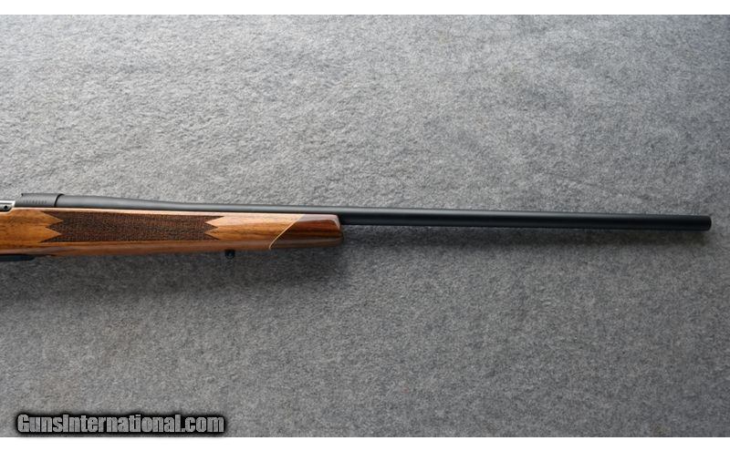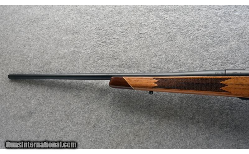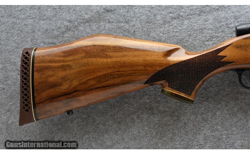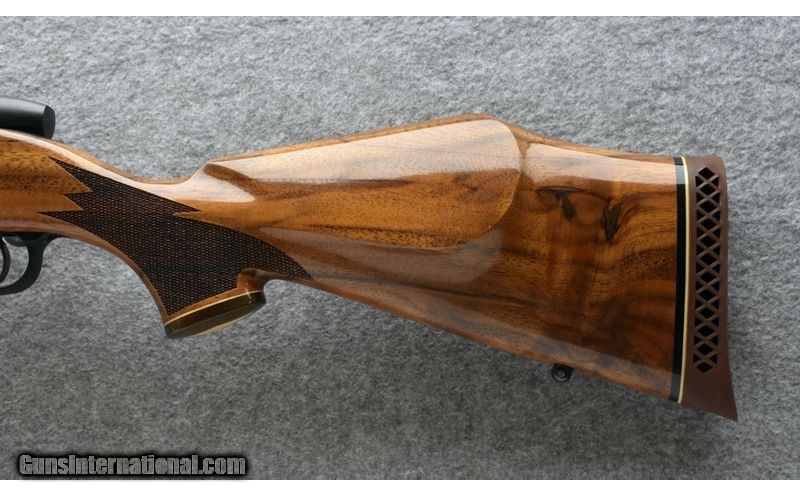 Description: This Mark V Deluxe is a rare configuration not only in its chambering, but with regard to its combination of satin-finished steel and glossy stock. Famed outdoor writer, Layne Simpson, initiated development of the 7mm Shooting Times Westerner in the late 1970s shortly after Remington's introduction of its 8mm Magnum, which provided the voluminous parent case. Velocity per bullet weight exceeds that of the 7mm Rem. Mag. by about 150 to 200 fps. 7mm STW SOLD Metal Condition: Shows excellent factory satin finish with a few trivial marks. Wood Condition: Shows excellent factory gloss finish with a few trivial marks. Bore Condition: Bright with sharp lands. Barrels: 26" # 2 contour satin-finished barrel Stock Dimensions: 13 5/8" LOP Fore End: Rosewood Butt Pad: Factory Weight: 8 lb. Item Location: Post Falls, ID |