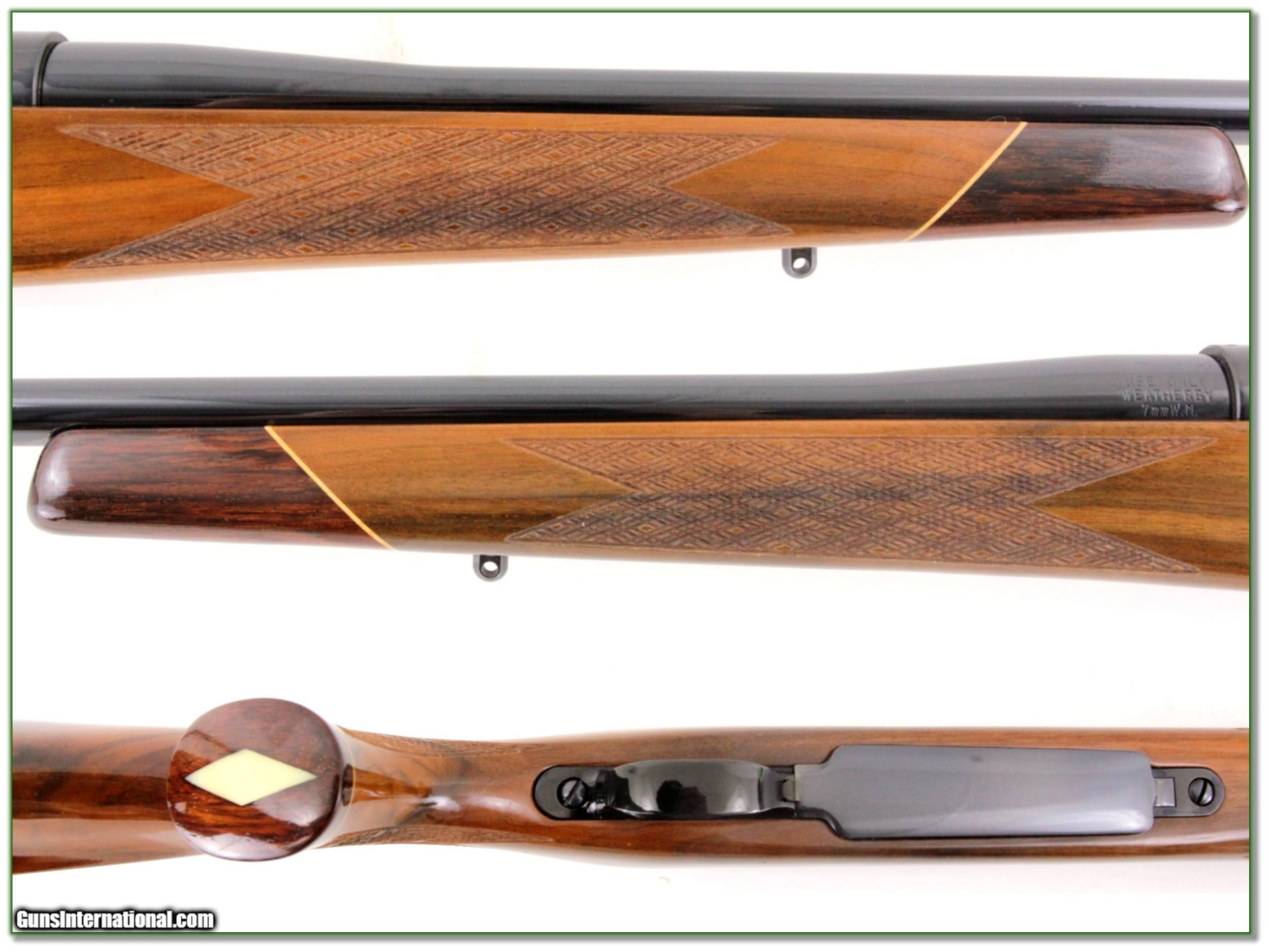 Description: This is a beautiful Weatherby Mark V Deluxe in 7mm Wthy Magnum. I believe it is unfired since leaving factory. It has MUCH better wood than most and comes in box as shown but there is no end label on the box and no papers. It has a lightweight 24in barrel making it perfect for most hunters. You will look a long time to find a nicer one. I find only a couple insignifincat storage marks. Shipping with insurance is $39. Please email me with any questions or larger pictures. (Consign your quality firearms with Shooting Investments for only 12%! Let me know if you have any you would like to sell!) 19-0914 Payment: Payment is by Money Order, Cashiers Check or Personal Check. I can now also accept Credit Cards (MasterCard, Visa, Discover & American Express) with a 3% convenience fee. PayPal can be used for some items but never for firearms. Shipping: The shipping charge will be listed in each description. It is $39 for most firearms. Some heavy guns or those insured for over $2000 will be higher. Shipments to Alaska and Hawaii are higher because air shipment is required. Most firearms are shipped on Tuesday and Thursday and usually in 5 days of receipt of payment. We package all shipments carefully and insure them. Optics are shipped Priority Mail and most other non-firearm shipments are shipped First Class. Returns: Our return policy is simple. If for any reason you are not pleased with your purchase, you may return your item for a full refund of purchase price. Ammunition cannot be returned. It is important to us that you are happy. Guns cannot be fired or dissembled before returning them and they must be returned in the same condition as received. Notification of a return must occur with-in 3 days of receipt at your dealer. Shipping, convenience and dealer fees are not refundable and are the responsibility of the buyer. Lay-a-way: If needed, we offer a 60 day lay-a-way option on most firearms. It is 1/3 now, 1/3 in 30 days and 1/3 in 60 days. Lay-a-way firearm sales are final and if not completed the first payment cannot be returned. Consigning your firearms with Shooting Investments: We will help you get top dollar for your firearms. While most local guns shops charge 20% or more, our fee is only 12% with a minimum of $75. At your local gun shop it might take months to sell. Selling on-line provides instant access to thousands of interested buyers. You won’t find any other on-line dealer willing to sell your firearms for only 12% or listing every gun on 3 separate s. Selling through an House typically costs the seller 15% and the buyer an addition 15% (so 30%) and you have to wait several months to sell and longer to receive funds. If properly priced, we will sell your firearms in a few weeks. Send us an email or give us a call and we’ll explain how easy it is for you to get top dollar. Trading: Trading for use is really just buying your gun to re-sell. If you have a gun you want to trade, please email a picture and we will let you know what we can give or it. You will always get more if we sell it for you on consignment. Help for California Buyers: We are happy to ship to California. It is the buyer’s responsibility to make sure any item you buy is legal in your state. We are also happy to help with your purchase of a firearm from someone other than us. If you see a gun you would like to buy but the seller can’t or won’t ship to California they can ship to use and we’ll then ship it to your California dealer. The cost for this service is only $30 + shipping. Let us know if we can help! SOLD |