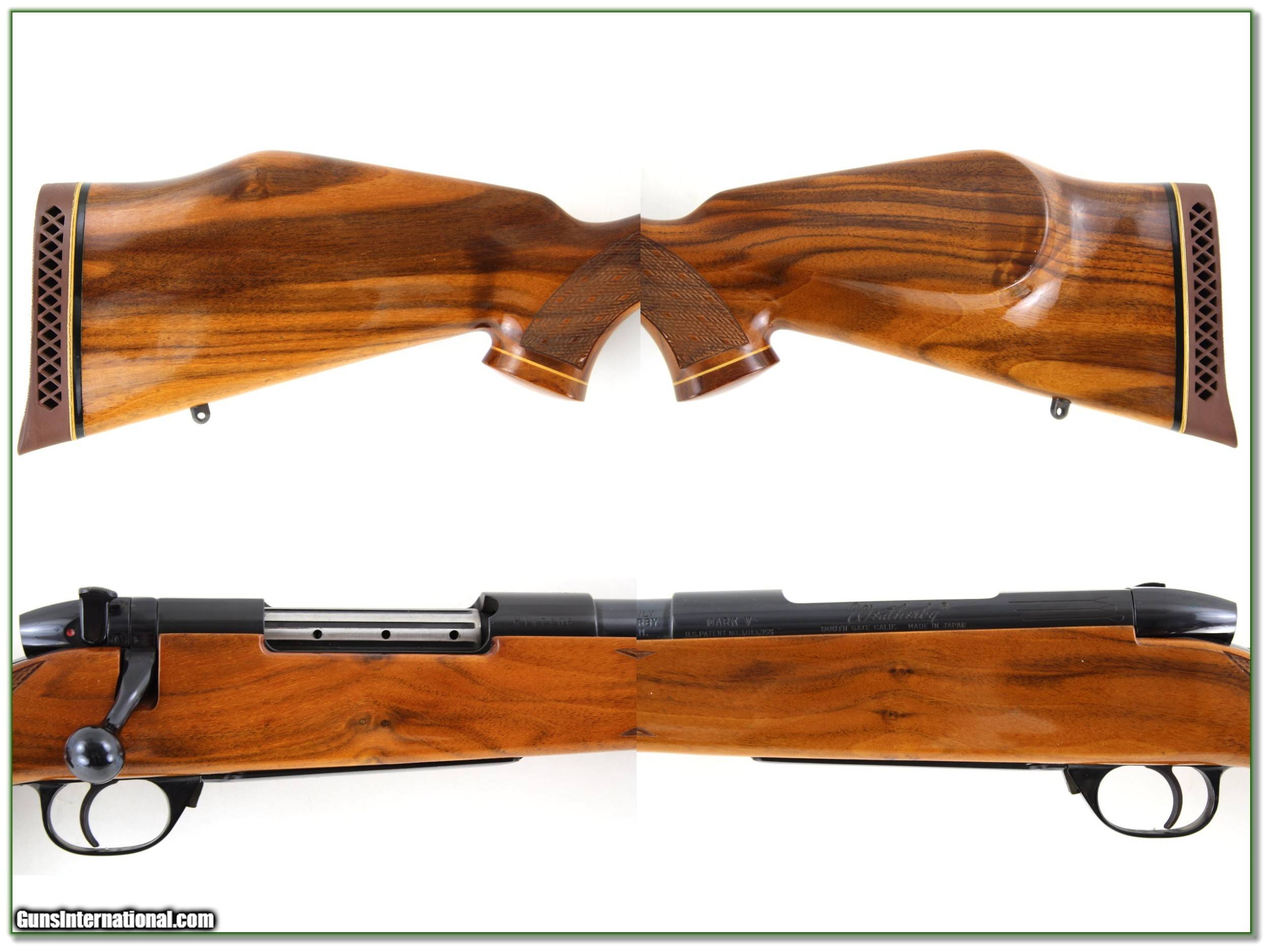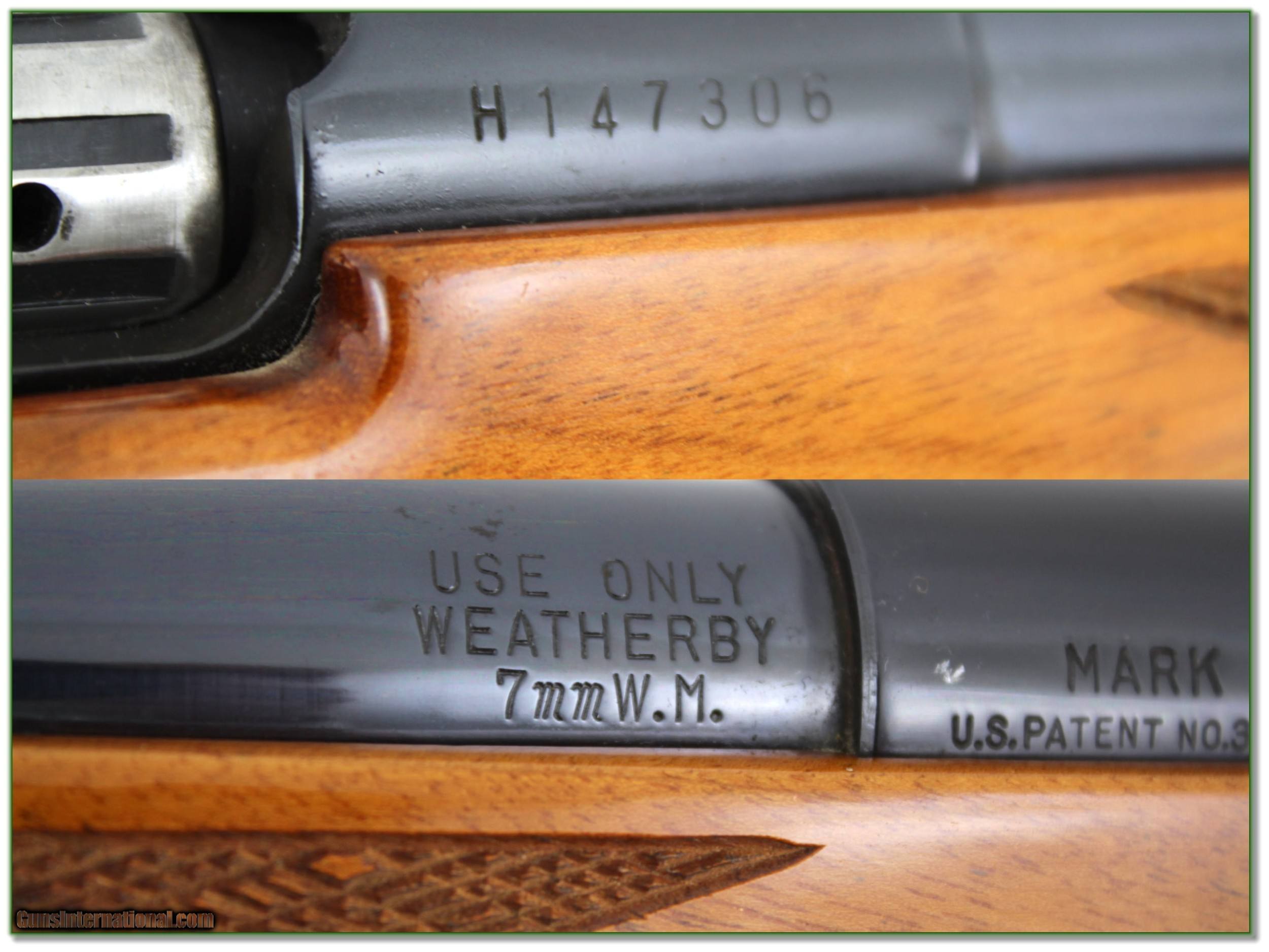 Description: Collectors and hunters, this is a new condition Weatherby Mark V Deluxe n 7mm Weatherby magnum. And look at the wood! It is exceptional! This is an early Japan made Mark V with the lighter weight and no longer made 24in barrel. From the bolt face I can’t tell it was ever fired. I find no marks. It will make a high-end hunting gun or be a fine addition to your collection. Either way it is a Shooting Investment. I am selling this one on consignment and as such lay-a-way can’t be used. It does of course have the standard 3-day inspection. Shipping and insurance is $39. Please email me with any questions or larger pictures. (Consign your quality firearms with Shooting Investments for only 12%! Let me know if you have any you would like to sell!) 21-0172 Payment: Payment is by Money Order, Cashiers Check or Personal Check. I can now also accept Credit Cards (MasterCard, Visa, Discover & American Express) with a 3% convenience fee. Shipping: The shipping charge will be listed in each description. It is $39 for most firearms. Some heavy guns or those insured for over $2000 will be higher. Shipments to Alaska and Hawaii are higher because air shipment is required. Most firearms are shipped on Tuesday and Thursday and usually in 5 days of receipt of payment. We package all shipments carefully and insure them. Optics are shipped Priority Mail and most other non-firearm shipments are shipped First Class. Returns: Our return policy is simple. If for any reason you are not pleased with your purchase, you may return your item for a full refund of purchase price. Ammunition cannot be returned. It is important to us that you are happy. Guns cannot be fired or dissembled before returning them and they must be returned in the same condition as received. Notification of a return must occur with-in 3 days of receipt at your dealer. Shipping, convenience and dealer fees are not refundable and are the responsibility of the buyer. Lay-a-way: If needed, we offer a 60 day lay-a-way option on most firearms. It is 1/3 now, 1/3 in 30 days and 1/3 in 60 days. Lay-a-way firearm sales are final and if not completed the first payment cannot be returned. Consigning your firearms with Shooting Investments: We will help you get top dollar for your firearms. While most local guns shops charge 20% or more, our fee is only 12% with a minimum of $75. At your local gun shop it might take months to sell. Selling on-line provides instant access to thousands of interested buyers. You won’t find any other on-line dealer willing to sell your firearms for only 12% or listing every gun on 3 separate s. Selling through an House typically costs the seller 15% and the buyer an addition 15% (so 30%) and you have to wait several months to sell and longer to receive funds. If properly priced, we will sell your firearms in a few weeks. Send us an email or give us a call and we’ll explain how easy it is for you to get top dollar. Trading: Trading for use is really just buying your gun to re-sell. If you have a gun you want to trade, please email a picture and we will let you know what we can give or it. You will always get more if we sell it for you on consignment. Help for California Buyers: We are happy to ship to California. It is the buyer’s responsibility to make sure any item you buy is legal in your state. We are also happy to help with your purchase of a firearm from someone other than us. If you see a gun you would like to buy but the seller can’t or won’t ship to California they can ship to use and we’ll then ship it to your California dealer. The cost for this service is only $30 + shipping. Let us know if we can help! SOLD |