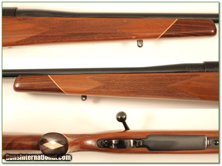 Description: This is a beautiful Waetherby Mark V Deluxe in 7mm Wthy Mag. T wood is Much nicer than most! I see no marks of note and the lugs are razor sharp. I am sure it never fired more than a few rounds. This is a Japan made Mark V which many collectors believe is the highest quality all Mark V production! It is a lightweight 24in gun. This is a Shooting Investment and will make a high end hunting gun for sure! Shipping and insurance is $30 or $18 more if you want it shipped in a new Plano hard case. Please email me with any questions or larger pictures. (I now consign quality firearms only 10%! Let me know if you have any you would like to sell!) [14-0962] Terms & Conditions Payment: Payment is by Money Order, Cashiers Check or Personal Check. I can now also accept MasterCard and Visa with a 3% convenience fee. PayPal can be used for some items but never firearms. Please let us know if you would like to pay via PayPal. Shipping: The shipping charge will be listed in each description. It is $30 for most guns. Some heavy guns or those insured for over $2000 may be higher. Shipments to Alaska and Hawaii are higher because air shipment is required. Most firearms are shipped within 5 days of receipt of payment. We prefer shipping at the beginning of the week to avoid firearms in transit over weekends. We package all shipments carefully and insure them for the full purchase price, rounded up to the next $100. In the unlikely event that damage occurs, it is important that you save all packaging material for the claims process. Optics are shipped Priority Mail and most other non-firearm shipments are shipped First Class. Returns: Our return policy is simple. If for any reason you are not pleased with your purchase, you may return your item for a refund. The only exception is ammunition, it cannot be returned. It is important to us that you are happy. Guns cannot be fired or dissembled before returning them and must be returned in the same condition as received. Notification of a return must occur with-in 3 days of receipt at your dealer. Shipping, convenience and dealer fees are not refundable and are the responsibility of the buyer. Lay-a-way: If needed, we offer a 60 day lay-a-way option on most firearms. It is 1/3 now, 1/3 in 30 days and 1/3 in 60 days. Lay-a-way firearm sales are final. Consigning your firearms with Shooting Investments: We will help you get top dollar for your firearms. While most local guns shops charge 20% or more, our fee is only 10% with a minimum of $50. At your local gun shop it might take months to sell. Selling on-line provides instant access to thousands of interested buyers. You won’t find any other on-line dealer willing to sell your firearms for only 10% or listing every gun on 4 separate s. Selling through an House typically costs 15% and you have to wait several months to sell and longer to receive funds. If properly priced, we will sell your firearms in a week or two. Send us an email or give us a call and we’ll explain how easy it is for you to get top dollar. Trading: We collect guns and usually just trade for guns we want to add to our collections. We often sell guns for others wanting to purchase one of ours. We find this the most fair to both of us. Our Commission is only 10% and we hold the gun you want until yours sells. Please contact us if you want to sell one of yours to buy one of ours. Help for California Buyers: We are happy to ship to California. It is the buyer’s responsibility to make sure any item you buy is legal in your state. We are also happy to help with your purchase of a firearm from someone other than us. If you see a gun you would like to buy but the seller can’t or won’t ship to California we can help. You buy the gun and have it shipped to us. We’ll then ship it to your California dealer. The cost for this service is only $30 + shipping. Let me know if we can help! SOLD |