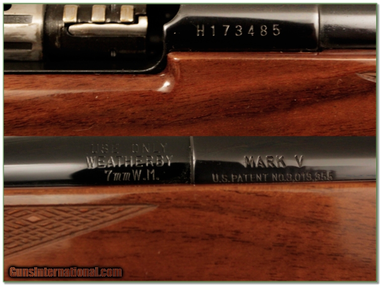 Description: This is an excellent condition Weathebry Mark V Deluxe in 7mm Wthy Mag. It has much nicer wood than most and only a couple minor marks. It will make a high end hunting gun. With the price of new Mark V Deluxe now over $2400 how can you go wrong here? This is a Japan made lighter weight 24in gun. It will make a great choice for most hunters. Shipping and insurance is $30 or $18 more if you want it shipped in a new Plano hard case. Please email me with any questions or larger pictures. (I now consign quality firearms only 10%! Let me know if you have any you would like to sell!) [14-1053] Payment: Payment is by Money Order, Cashiers Check or Personal Check. I can now also accept MasterCard and Visa with a 3% convenience fee. PayPal can be used for some items but never firearms. Please let us know if you would like to pay via PayPal. Shipping: The shipping charge will be listed in each description. It is $30 for most guns. Some heavy guns or those insured for over $2000 may be higher. Shipments to Alaska and Hawaii are higher because air shipment is required. Most firearms are shipped within 5 days of receipt of payment. We prefer shipping at the beginning of the week to avoid firearms in transit over weekends. We package all shipments carefully and insure them for the full purchase price, rounded up to the next $100. In the unlikely event that damage occurs, it is important that you save all packaging material for the claims process. Optics are shipped Priority Mail and most other non-firearm shipments are shipped First Class. Returns: Our return policy is simple. If for any reason you are not pleased with your purchase, you may return your item for a refund. The only exception is ammunition, it cannot be returned. It is important to us that you are happy. Guns cannot be fired or dissembled before returning them and must be returned in the same condition as received. Notification of a return must occur with-in 3 days of receipt at your dealer. Shipping, convenience and dealer fees are not refundable and are the responsibility of the buyer. Lay-a-way: If needed, we offer a 60 day lay-a-way option on most firearms. It is 1/3 now, 1/3 in 30 days and 1/3 in 60 days. Lay-a-way firearm sales are final. Consigning your firearms with Shooting Investments: We will help you get top dollar for your firearms. While most local guns shops charge 20% or more, our fee is only 10% with a minimum of $50. At your local gun shop it might take months to sell. Selling on-line provides instant access to thousands of interested buyers. You won’t find any other on-line dealer willing to sell your firearms for only 10% or listing every gun on 4 separate s. Selling through an House typically costs the seller 15% and the buyer an addition 15% (so 30%) and you have to wait several months to sell and longer to receive funds. If properly priced, we will sell your firearms in a week or two. Send us an email or give us a call and we’ll explain how easy it is for you to get top dollar. Trading: We collect guns and usually just trade for guns we want to add to our collections. We often sell guns for others wanting to purchase one of ours. We find this the most fair to both of us. Our Commission is only 10% and we hold the gun you want until yours sells. Please contact us if you want to sell one of yours to buy one of ours. Help for California Buyers: We are happy to ship to California. It is the buyer’s responsibility to make sure any item you buy is legal in your state. We are also happy to help with your purchase of a firearm from someone other than us. If you see a gun you would like to buy but the seller can’t or won’t ship to California we can help. You buy the gun and have it shipped to us. We’ll then ship it to your California dealer. The cost for this service is only $30 + shipping. Let me know if we can help! SOLD |