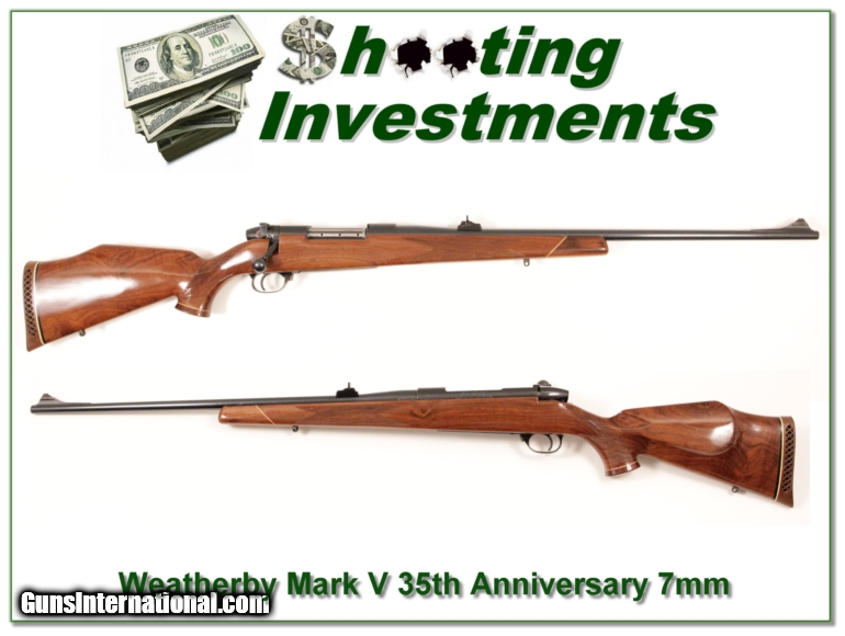Description: This is a Weatherby mark V Deluxe in 7mm Wthy Mag. It is in excellent condition with much nicer wood grain than most. The blue shows little use. This is a harder to find version with factory open site and the lighter weight 24in barrel. It will make an impressive hunting gun you can use yet still expect to go up in value over time. With the current list price of $2400 this one is a no-brainer. It is a Shooting Investment. Shipping and insurance is $30 or $18 more if you want it shipped in a new Plano hard case. Please email me with any questions or larger pictures. (I now consign quality firearms only 10%! Let me know if you have any you would like to sell!) [14-0304] Terms & Conditions Payment: Payment is by Money Order, Cashiers Check or Personal Check. I can now also accept MasterCard and Visa with a 3% convenience fee. PayPal can be used for some items but never firearms. Please let us know if you would like to pay via PayPal. Shipping: The shipping charge will be listed in each description. It is $30 for most guns. Some heavy guns or those insured for over $2000 may be higher. Shipments to Alaska and Hawaii are higher because air shipment is required. Most firearms are shipped within 5 days of receipt of payment. We prefer shipping at the beginning of the week to avoid firearms in transit over weekends. We package all shipments carefully and insure them for the full purchase price, rounded up to the next $100. In the unlikely event that damage occurs, it is important that you save all packaging material for the claims process. Optics are shipped Priority Mail and most other non-firearm shipments are shipped First Class. Returns: Our return policy is simple. If for any reason you are not pleased with your purchase, you may return your item for a refund. The only exception is ammunition, it cannot be returned. It is important to us that you are happy. Guns cannot be fired or dissembled before returning them and must be returned in the same condition as received. Notification of a return must occur with-in 3 days of receipt at your dealer. Shipping, convenience and dealer fees are not refundable and are the responsibility of the buyer. Lay-a-way: If needed, we offer a 60 day lay-a-way option on most firearms. It is 1/3 now, 1/3 in 30 days and 1/3 in 60 days. Lay-a-way firearm sales are final. Consigning your firearms with Shooting Investments: We will help you get top dollar for your firearms. While most local guns shops charge 20% or more, our fee is only 10% with a minimum of $50. At your local gun shop it might take months to sell. Selling on-line provides instant access to thousands of interested buyers. You won’t find any other on-line dealer willing to sell your firearms for only 10% or listing every gun on 4 separate s. Selling through an House typically costs 15% and you have to wait several months to sell and longer to receive funds. If properly priced, we will sell your firearms in a week or two. Send us an email or give us a call and we’ll explain how easy it is for you to get top dollar. Trading: We collect guns and usually just trade for guns we want to add to our collections. We often sell guns for others wanting to purchase one of ours. We find this the most fair to both of us. Our Commission is only 10% and we hold the gun you want until yours sells. Please contact us if you want to sell one of yours to buy one of ours. Help for California Buyers: We are happy to ship to California. It is the buyer’s responsibility to make sure any item you buy is legal in your state. We are also happy to help with your purchase of a firearm from someone other than us. If you see a gun you would like to buy but the seller can’t or won’t ship to California we can help. You buy the gun and have it shipped to us. We’ll then ship it to your California dealer. The cost for this service is only $30 + shipping. Let me know if we can help! SOLD |