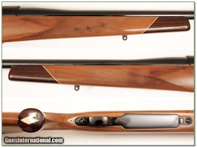 Description: This Weatherby Mark V deluxe is a no longer made 30-06 made on the original 9 lug Mark V action. This one has beautiful wood and appears unfired after leaving the factory. It comes with box, manual and test target. (end label missing from box). It will make a high end hunting gun or prized addition to your collection. The blue and wood are both in excellent condition with only a couple minor handing marks. Shipping and insurance is $30 and please email me with any questions or larger pictures. (I now consign quality firearms only 10%! Let me know if you have any you would like to sell!) [15-0355] Payment: Payment is by Money Order, Cashiers Check or Personal Check. I can now also accept MasterCard and Visa with a 3% convenience fee. PayPal can be used for some items but never firearms. Please let us know if you would like to pay via PayPal. Shipping: The shipping charge will be listed in each description. It is $30 for most guns. Some heavy guns or those insured for over $2000 may be higher. Shipments to Alaska and Hawaii are higher because air shipment is required. Most firearms are shipped within 5 days of receipt of payment. We prefer shipping at the beginning of the week to avoid firearms in transit over weekends. We package all shipments carefully and insure them for the full purchase price, rounded up to the next $100. In the unlikely event that damage occurs, it is important that you save all packaging material for the claims process. Optics are shipped Priority Mail and most other non-firearm shipments are shipped First Class. Returns: Our return policy is simple. If for any reason you are not pleased with your purchase, you may return your item for a refund. The only exception is ammunition, it cannot be returned. It is important to us that you are happy. Guns cannot be fired or dissembled before returning them and must be returned in the same condition as received. Notification of a return must occur with-in 3 days of receipt at your dealer. Shipping, convenience and dealer fees are not refundable and are the responsibility of the buyer. Lay-a-way: If needed, we offer a 60 day lay-a-way option on most firearms. It is 1/3 now, 1/3 in 30 days and 1/3 in 60 days. Lay-a-way firearm sales are final. Consigning your firearms with Shooting Investments: We will help you get top dollar for your firearms. While most local guns shops charge 20% or more, our fee is only 10% with a minimum of $50. At your local gun shop it might take months to sell. Selling on-line provides instant access to thousands of interested buyers. You won’t find any other on-line dealer willing to sell your firearms for only 10% or listing every gun on 4 separate s. Selling through an House typically costs the seller 15% and the buyer an addition 15% (so 30%) and you have to wait several months to sell and longer to receive funds. If properly priced, we will sell your firearms in a week or two. Send us an email or give us a call and we’ll explain how easy it is for you to get top dollar. Trading: We collect guns and usually just trade for guns we want to add to our collections. We often sell guns for others wanting to purchase one of ours. We find this the most fair to both of us. Our Commission is only 10% and we hold the gun you want until yours sells. Please contact us if you want to sell one of yours to buy one of ours. Help for California Buyers: We are happy to ship to California. It is the buyer’s responsibility to make sure any item you buy is legal in your state. We are also happy to help with your purchase of a firearm from someone other than us. If you see a gun you would like to buy but the seller can’t or won’t ship to California we can help. You buy the gun and have it shipped to us. We’ll then ship it to your California dealer. The cost for this service is only $30 + shipping. Let me know if we can help! SOLD |