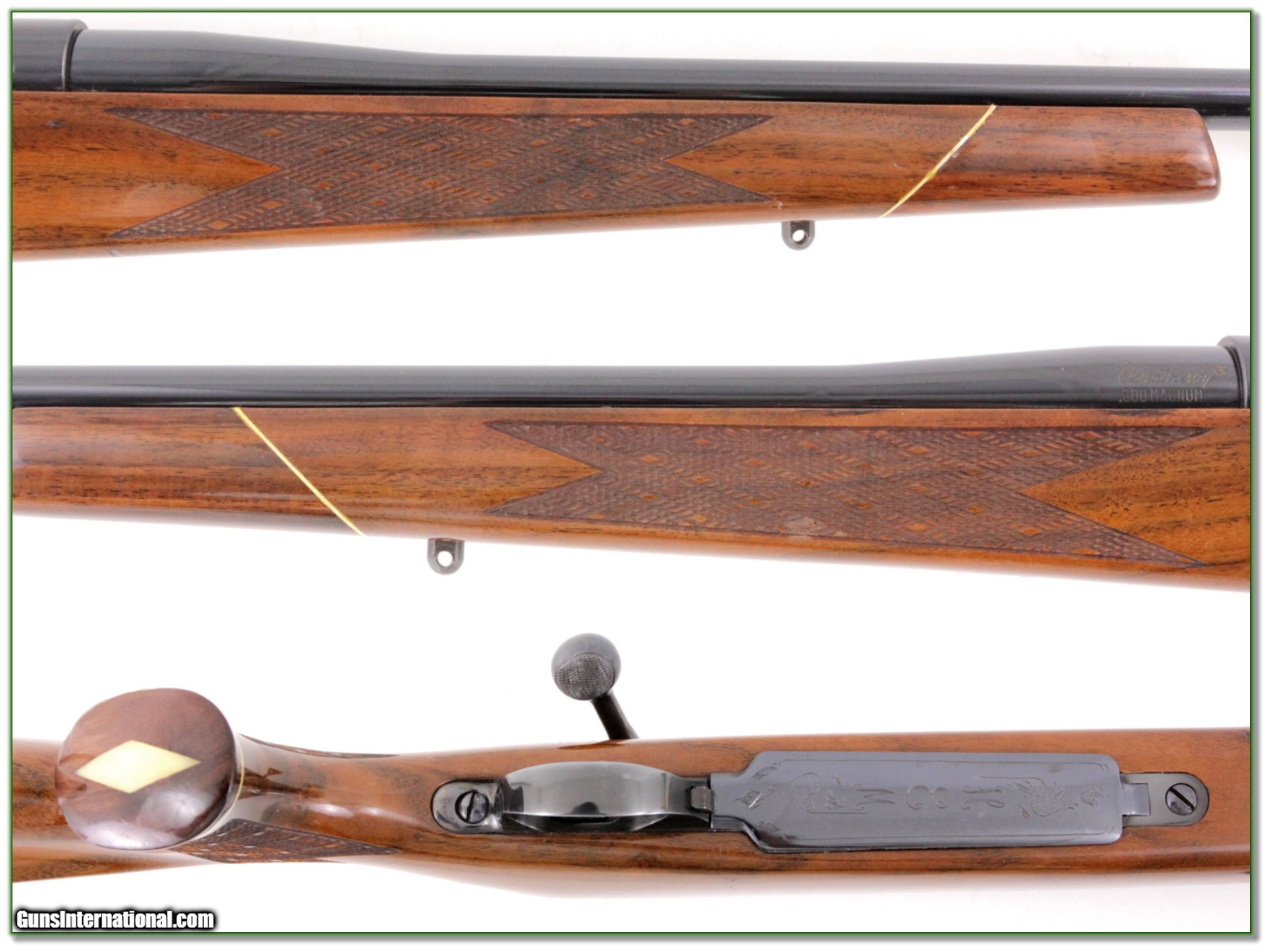 Description: Collectors, shooters and hunters, this is a Mark V Deluxe made in the Custom Shop. It is in excellent condition and is a flat shooting hard-hitting 300 Wthy Magnum. It has a 24in barrel. These custom shops guns were factory accurized, has checkered bolts handles, engraved floorplates and jeweled bolts and followers. I expect if still make they would cost $3500 or more. This one has only a few minor marks and has original owners initials in the floor plate “HEM”. It will make a high-end hunting gun at much less than half the new replacement cost. Shipping and insurance is $39. Please email me with any questions or larger pictures. (Consign your quality firearms with Shooting Investments for only 12%! Let me know if you have any you would like to sell!) 18-0717 Payment: Payment is by Money Order, Cashiers Check or Personal Check. I can now also accept MasterCard and Visa with a 3% convenience fee. PayPal can be used for some items but never firearms. Please let us know if you would like to pay via PayPal. Shipping: The shipping charge will be listed in each description. It is $39 for most long guns and $29 for most handguns. Some heavy guns or those insured for over $2000 will be higher. Shipments to Alaska and Hawaii are higher because air shipment is required. Most firearms are shipped on Tuesday and Thursday and usually in 5 days of receipt of payment. We package all shipments carefully and insure them. For long guns you can purchase a new Plano case for $19. They now cost us $22 when buying 100 at a time. Optics are shipped Priority Mail and most other non-firearm shipments are shipped First Class. Returns: Our return policy is simple. If for any reason you are not pleased with your purchase, you may return your item for a full refund of purchase price. Ammunition cannot be returned. It is important to us that you are happy. Guns cannot be fired or dissembled before returning them and they must be returned in the same condition as received. Notification of a return must occur with-in 3 days of receipt at your dealer. Shipping, convenience and dealer fees are not refundable and are the responsibility of the buyer. Lay-a-way: If needed, we offer a 60 day lay-a-way option on most firearms. It is 1/3 now, 1/3 in 30 days and 1/3 in 60 days. Lay-a-way firearm sales are final and if not completed the first payment cannot be returned. Consigning your firearms with Shooting Investments: We will help you get top dollar for your firearms. While most local guns shops charge 20% or more, our fee is only 12% with a minimum of $75. At your local gun shop it might take months to sell. Selling on-line provides instant access to thousands of interested buyers. You won’t find any other on-line dealer willing to sell your firearms for only 12% or listing every gun on 3 separate s. Selling through an House typically costs the seller 15% and the buyer an addition 15% (so 30%) and you have to wait several months to sell and longer to receive funds. If properly priced, we will sell your firearms in a few weeks. Send us an email or give us a call and we’ll explain how easy it is for you to get top dollar. Trading: Trading for use is really just buying your gun to re-sell. If you have a gun you want to trade, please email a picture and we will let you know what we can give or it. You will always get more if we sell it for you on consignment. Help for California Buyers: We are happy to ship to California. It is the buyer’s responsibility to make sure any item you buy is legal in your state. We are also happy to help with your purchase of a firearm from someone other than us. If you see a gun you would like to buy but the seller can’t or won’t ship to California they can ship to use and we’ll then ship it to your California dealer. The cost for this service is only $30 + shipping. Let us know if we can help! SOLD |