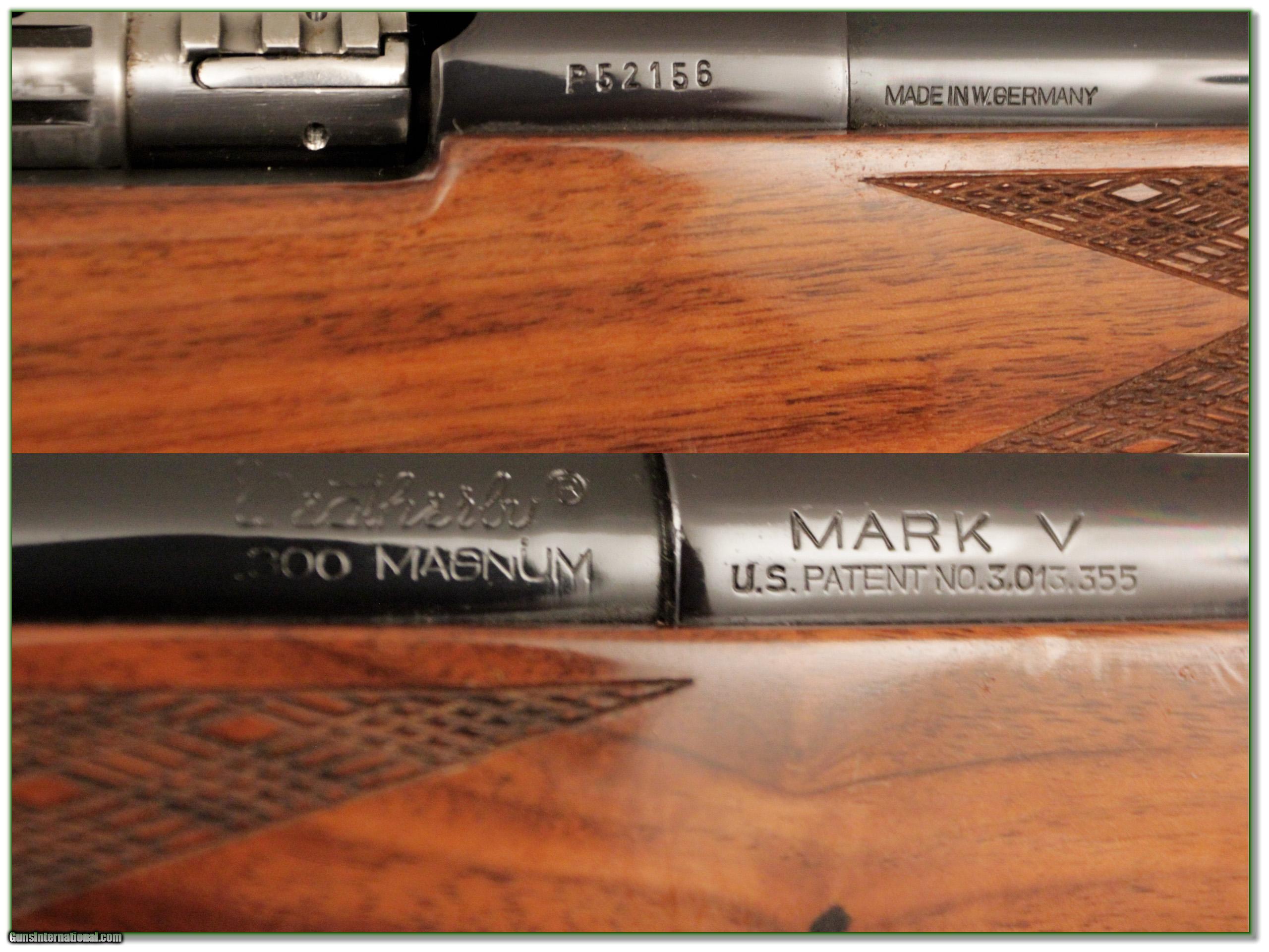Description: This German Mark V Deluxe has much nicer wood grin that most. It is a 24in 300 Wthy Mag. The blue is excellent and I don’t believe fired many rounds. The wood has only a few minor marks. It will make a classic high end hunting gun or nice addition to your collection. Shipping and insurance is $35 or $15 more if you want it shipped in a new Plano hard case. Please email me with any questions or larger pictures. (I now consign quality firearms only 10%! Let me know if you have any you would like to sell!) [16-0289] Payment: Payment is by Money Order, Cashiers Check or Personal Check. I can now also accept MasterCard and Visa with a 3% convenience fee. PayPal can be used for some items but never firearms. Please let us know if you would like to pay via PayPal. Shipping: The shipping charge will be listed in each description. It is $35 for most guns. Some heavy guns or those insured for over $2000 will be higher. Shipments to Alaska and Hawaii are higher because air shipment is required. Most firearms are shipped within 5 days of receipt of payment. We prefer shipping at the beginning of the week to avoid firearms in transit over weekends. We package all shipments carefully and insure them for the full purchase price, rounded up to the next $100. In the unlikely event that damage occurs, it is important that you save all packaging material for the claims process. Optics are shipped Priority Mail and most other non-firearm shipments are shipped First Class. Returns: Our return policy is simple. If for any reason you are not pleased with your purchase, you may return your item for a refund. The only exception is ammunition, it cannot be returned. It is important to us that you are happy. Guns cannot be fired or dissembled before returning them and must be returned in the same condition as received. Notification of a return must occur with-in 3 days of receipt at your dealer. Shipping, convenience and dealer fees are not refundable and are the responsibility of the buyer. Lay-a-way: If needed, we offer a 60 day lay-a-way option on most firearms. It is 1/3 now, 1/3 in 30 days and 1/3 in 60 days. Lay-a-way firearm sales are final. Consigning your firearms with Shooting Investments: We will help you get top dollar for your firearms. While most local guns shops charge 20% or more, our fee is only 10% with a minimum of $50. At your local gun shop it might take months to sell. Selling on-line provides instant access to thousands of interested buyers. You won’t find any other on-line dealer willing to sell your firearms for only 10% or listing every gun on 4 separate s. Selling through an House typically costs the seller 15% and the buyer an addition 15% (so 30%) and you have to wait several months to sell and longer to receive funds. If properly priced, we will sell your firearms in a week or two. Send us an email or give us a call and we’ll explain how easy it is for you to get top dollar. Trading: We collect guns and usually just trade for guns we want to add to our collections. We often sell guns for others wanting to purchase one of ours. We find this the most fair to both of us. Our Commission is only 10% and we hold the gun you want until yours sells. Please contact us if you want to sell one of yours to buy one of ours. Help for California Buyers: We are happy to ship to California. It is the buyer’s responsibility to make sure any item you buy is legal in your state. We are also happy to help with your purchase of a firearm from someone other than us. If you see a gun you would like to buy but the seller can’t or won’t ship to California we can help. You buy the gun and have it shipped to us. We’ll then ship it to your California dealer. The cost for this service is only $30 + shipping. Let me know if we can help! SOLD |
