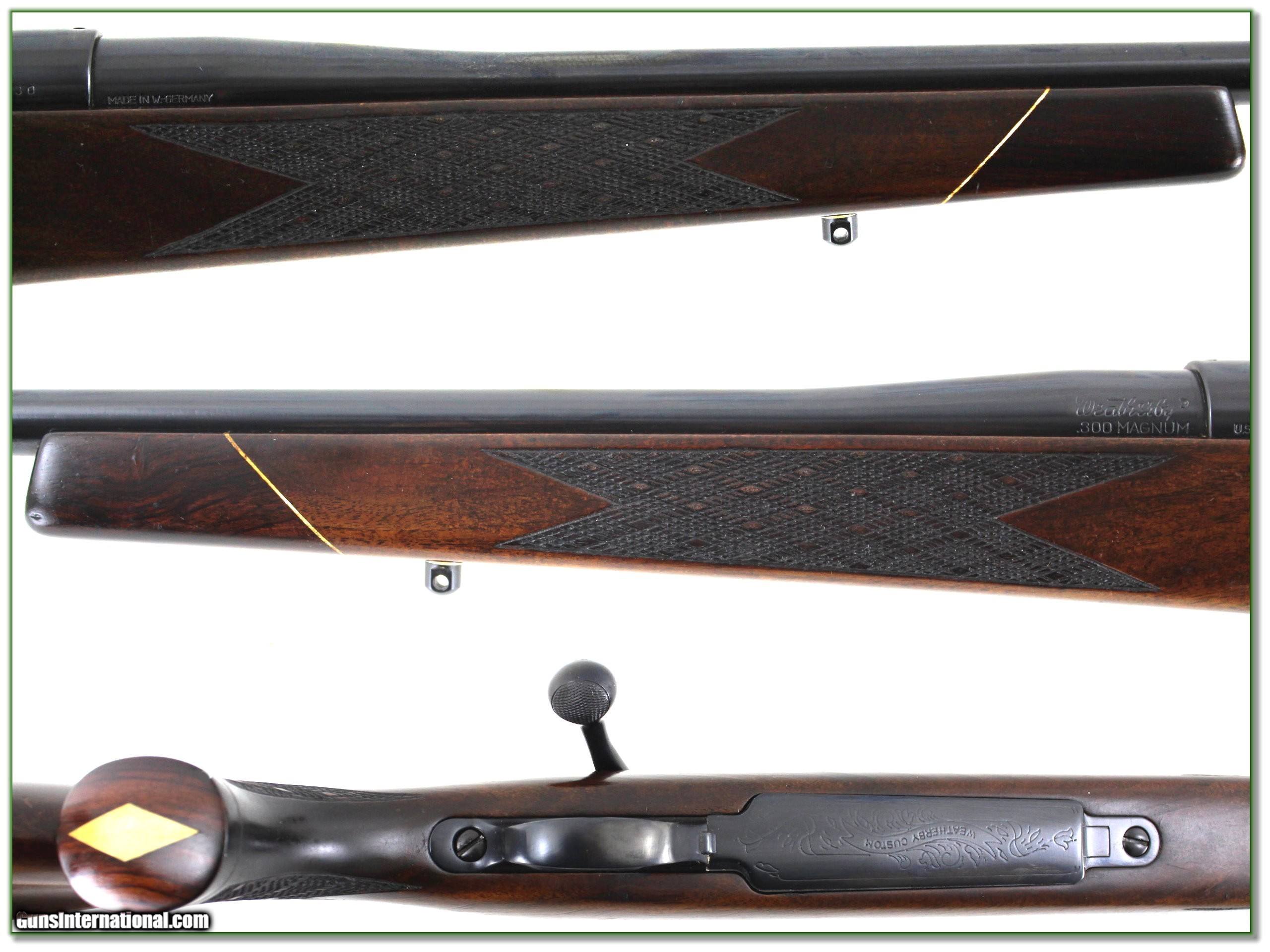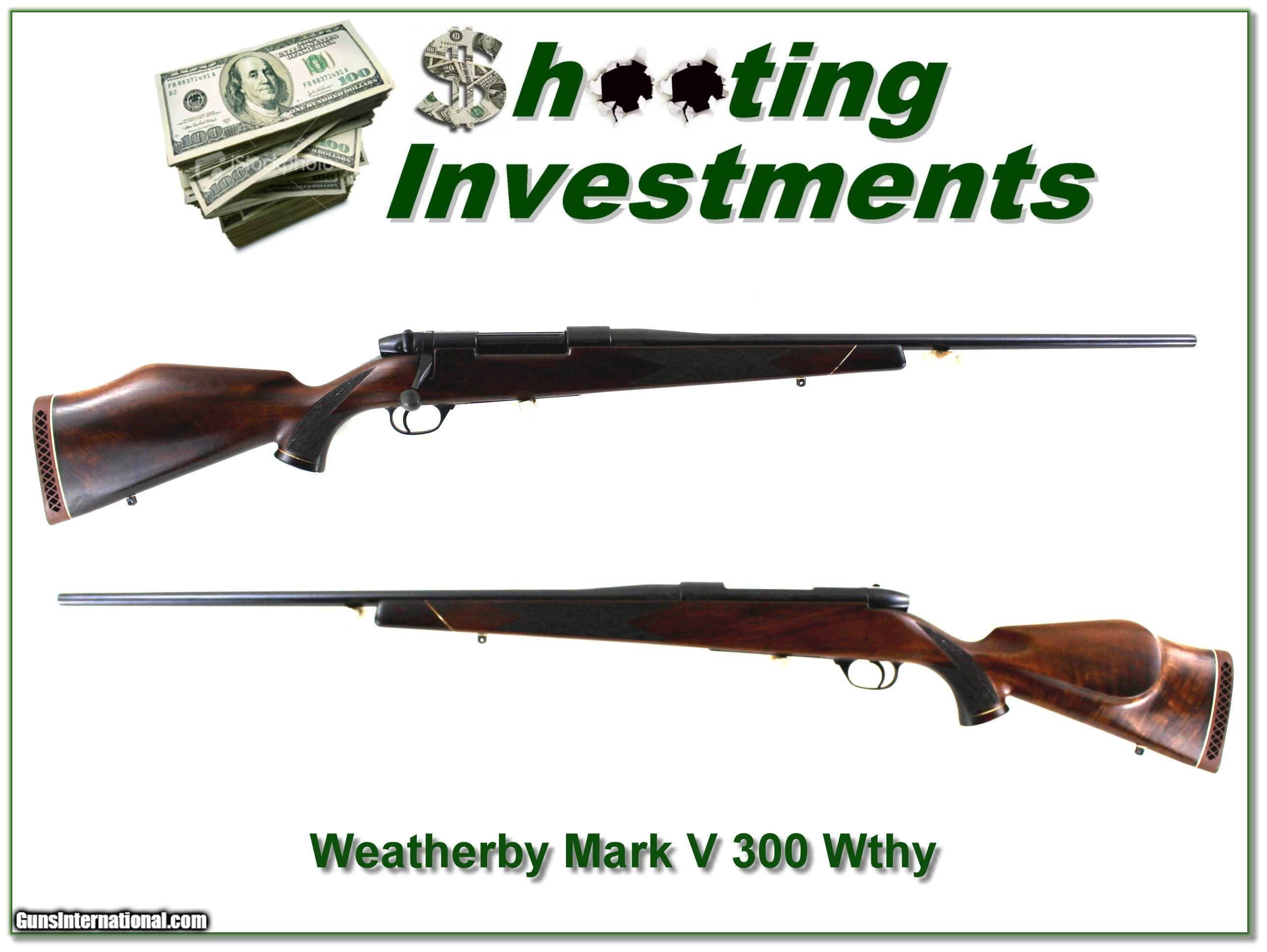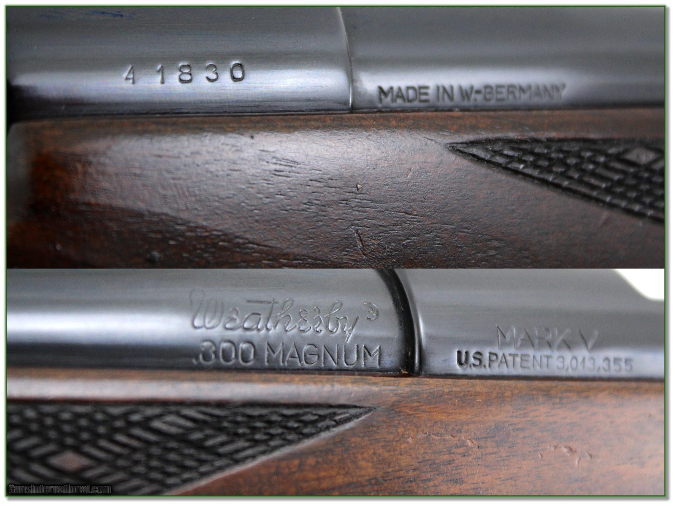 Description: This is a German made Weatherby Mark V Deluxe in 300 Weatherby Magnum. It is a Custom Shop made Weatherby with engraved floorplate, checkered bolt handle and nicer wood what standard grade Marks V’s. This one was reblued at some point. It has a 24in barrel with a bright shiny bore. It will make a high-end hunting gun and is a real Shooting Investment. Shipping and insurance is $49. Please email me with any questions or larger pictures. (Consign your quality firearms with Shooting Investments for only 12%! Let me know if you have any you would like to sell!) 23-1361 Payment: Payment is by Money Order, Cashier’s Check or Personal Check. I can now also accept Credit Cards (MasterCard, Visa, Discover & American Express) with a 3% convenience fee. Shipping: The shipping charge will be listed in each description. It is $49 for most firearms. Some heavy guns or those insured for over $2000 will be higher. Shipments to Alaska and Hawaii are higher because air shipment is required. Most firearms are shipped on Tuesday and Thursday and usually in 5 days of receipt of payment. We package all shipments carefully and insure them. Optics are shipped Priority Mail and most other non-firearm shipments are shipped First Class. Returns: Our return policy is simple. If for any reason you are not pleased with your purchase, you may return your item for a full refund of purchase price. Ammunition cannot be returned. It is important to us that you are happy. Guns cannot be fired or dissembled before returning them and they must be returned in the same condition as received. Notification of a return must occur within 3 days of receipt at your dealer. Shipping, convenience and dealer fees are not refundable and are the responsibility of the buyer. Lay-a-way: If needed, we offer a 60 day lay-a-way option on most firearms. It is 1/3 now, 1/3 in 30 days and 1/3 in 60 days. Lay-a-way firearm sales are final and cannot be returned. If a lay-a-way is not completed the first payment cannot be refunded. Consigning your firearms with Shooting Investments: We will help you get top dollar for your firearms. While most local guns shops charge 20% or more, our fee is only 12% with a minimum of $75. At your local gun shop it might take months to sell. Selling on-line provides instant access to thousands of interested buyers. You won’t find any other on-line dealer willing to sell your firearms for only 12% or listing every gun on 3 separate s. Selling through an House typically costs the seller 15% and the buyer an addition 15% (so 30%) and you have to wait several months to sell and longer to receive funds. If properly priced, we will sell your firearms within a few weeks. Send us an email or give us a call and we’ll explain how easy it is for you to get top dollar. Trading: Trading for us is really just buying your gun to re-sell. If you have a gun you want to trade, please email a picture and we will let you know what we can give for it. You will always get more if we sell it for you on consignment. SOLD |