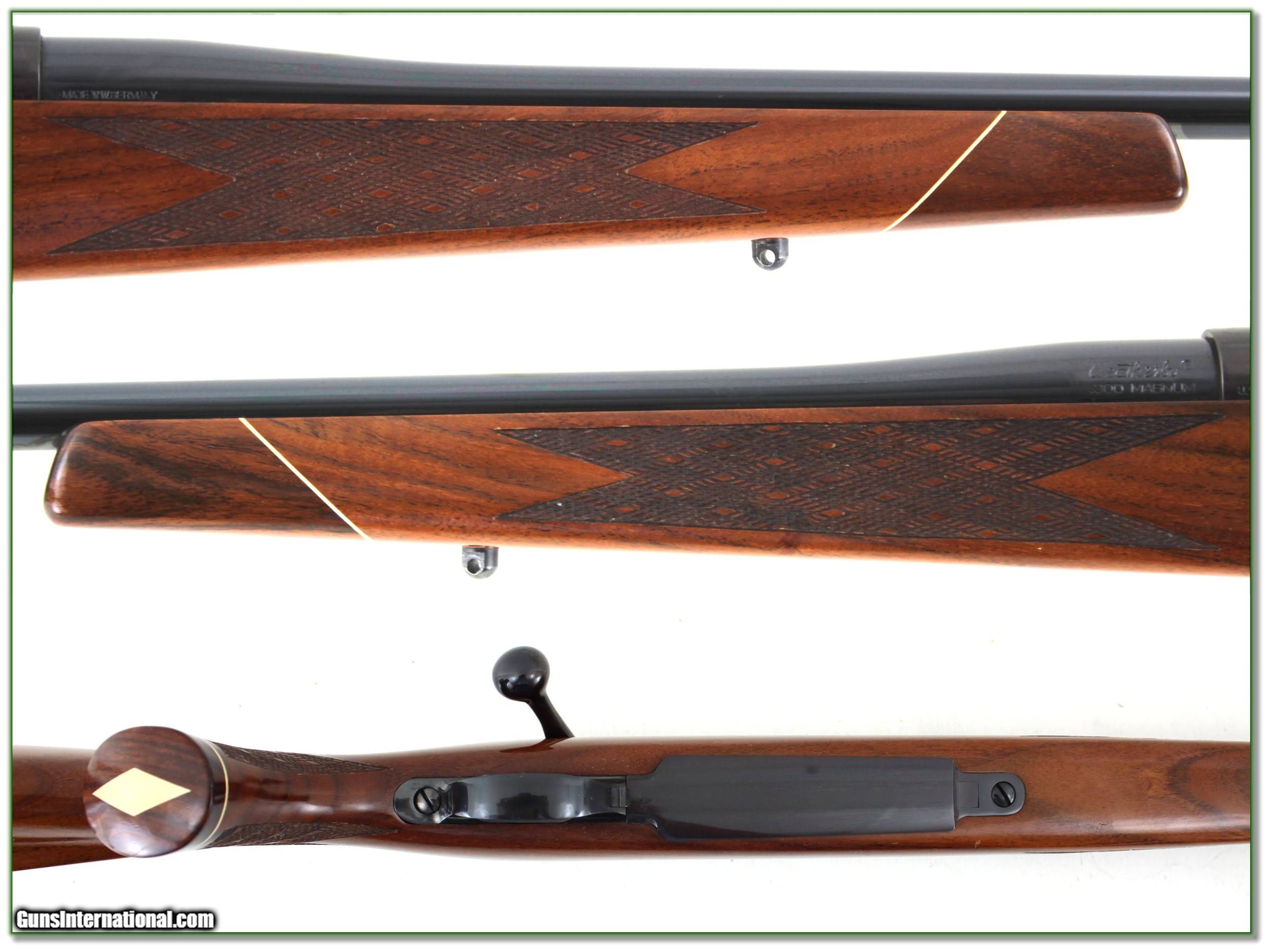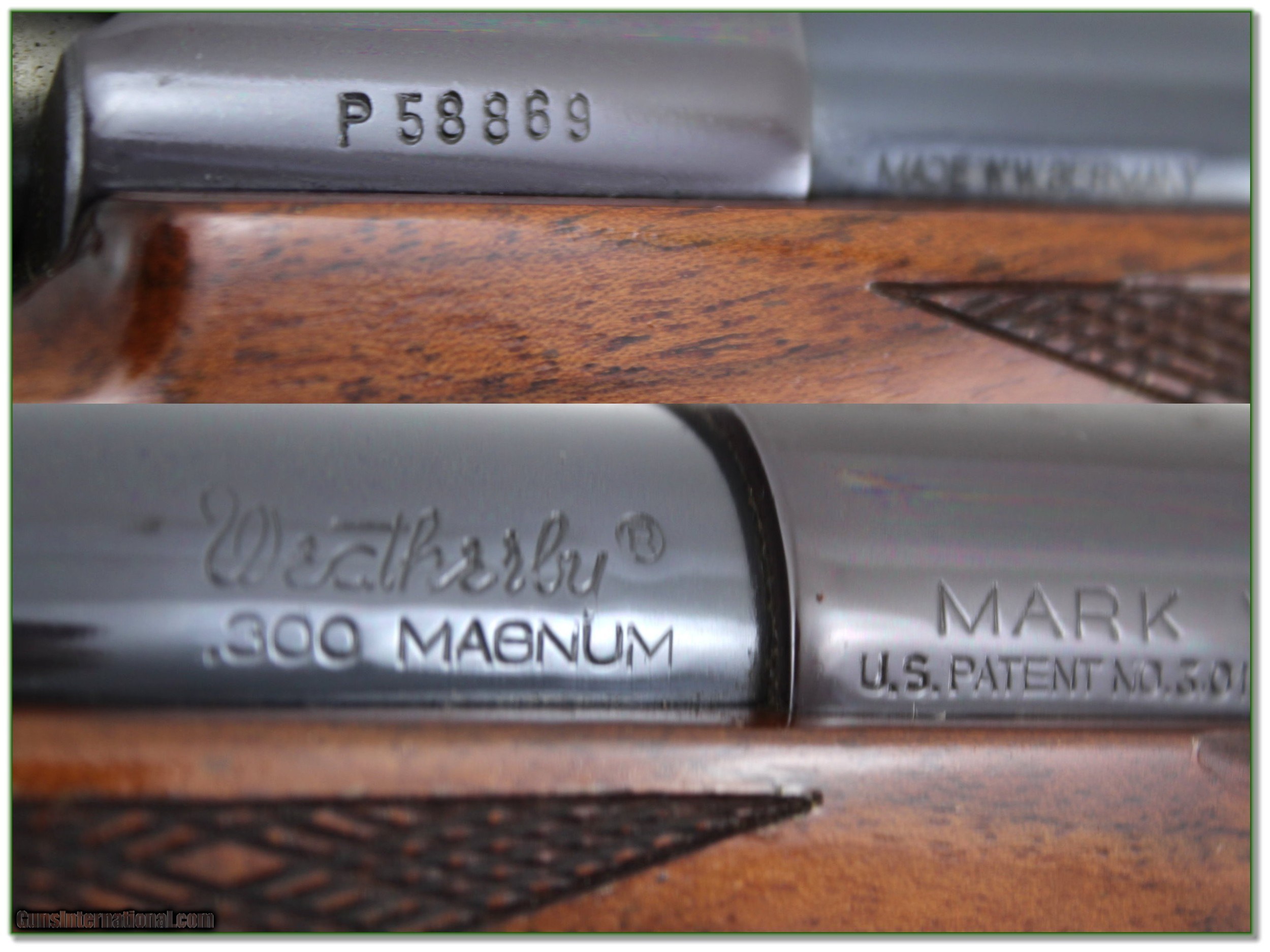 Description: Collectors and big game hunters, this is an excellent collector condition German made Weatherby Mark V Deluxe. It is a 300 Weatherby Magnum with more useful 24in barrel. I am sure form the razor sharp lugs it never fired many rounds. I find no marks of note on metal or wood! It is a true Shooting Investment! Shipping and insurance is $39. Please email me with any questions or larger pictures. (Consign your quality firearms with Shooting Investments for only 12%! Let me know if you have any you would like to sell!) 21-1057 Payment: Payment is by Money Order, Cashiers Check or Personal Check. I can now also accept Credit Cards (MasterCard, Visa, Discover & American Express) with a 3% convenience fee. Shipping: The shipping charge will be listed in each description. It is $39 for most firearms. Some heavy guns or those insured for over $2000 will be higher. Shipments to Alaska and Hawaii are higher because air shipment is required. Most firearms are shipped on Tuesday and Thursday and usually in 5 days of receipt of payment. We package all shipments carefully and insure them. Optics are shipped Priority Mail and most other non-firearm shipments are shipped First Class. Returns: Our return policy is simple. If for any reason you are not pleased with your purchase, you may return your item for a full refund of purchase price. Ammunition cannot be returned. It is important to us that you are happy. Guns cannot be fired or dissembled before returning them and they must be returned in the same condition as received. Notification of a return must occur with-in 3 days of receipt at your dealer. Shipping, convenience and dealer fees are not refundable and are the responsibility of the buyer. Lay-a-way: If needed, we offer a 60 day lay-a-way option on most firearms. It is 1/3 now, 1/3 in 30 days and 1/3 in 60 days. Lay-a-way firearm sales are final and if not completed the first payment cannot be returned. Consigning your firearms with Shooting Investments: We will help you get top dollar for your firearms. While most local guns shops charge 20% or more, our fee is only 12% with a minimum of $75. At your local gun shop it might take months to sell. Selling on-line provides instant access to thousands of interested buyers. You won’t find any other on-line dealer willing to sell your firearms for only 12% or listing every gun on 3 separate s. Selling through an House typically costs the seller 15% and the buyer an addition 15% (so 30%) and you have to wait several months to sell and longer to receive funds. If properly priced, we will sell your firearms in a few weeks. Send us an email or give us a call and we’ll explain how easy it is for you to get top dollar. Trading: Trading for use is really just buying your gun to re-sell. If you have a gun you want to trade, please email a picture and we will let you know what we can give or it. You will always get more if we sell it for you on consignment. Help for California Buyers: We are happy to ship to California. It is the buyer’s responsibility to make sure any item you buy is legal in your state. We are also happy to help with your purchase of a firearm from someone other than us. If you see a gun you would like to buy but the seller can’t or won’t ship to California they can ship to use and we’ll then ship it to your California dealer. The cost for this service is only $30 + shipping. Let us know if we can help! SOLD |