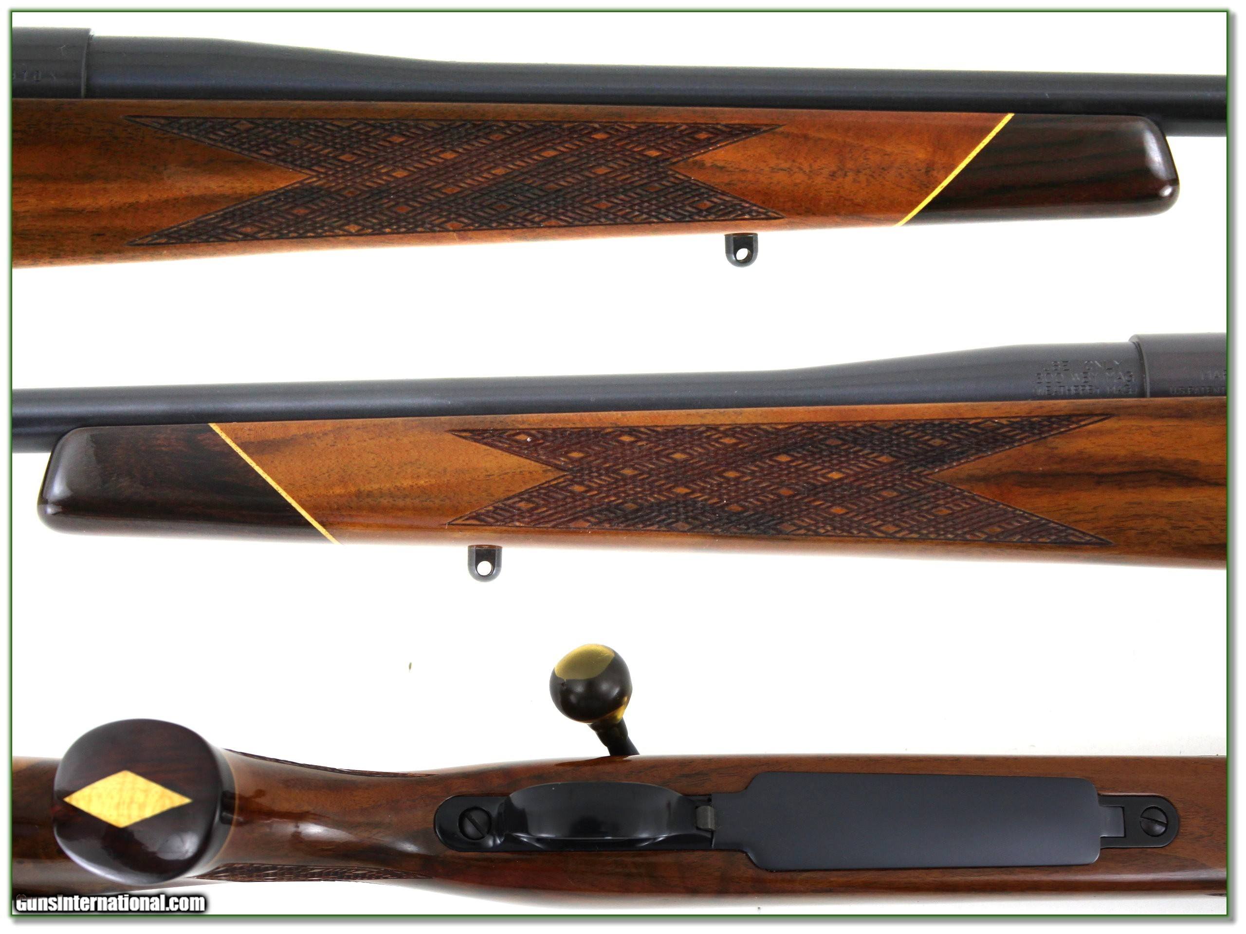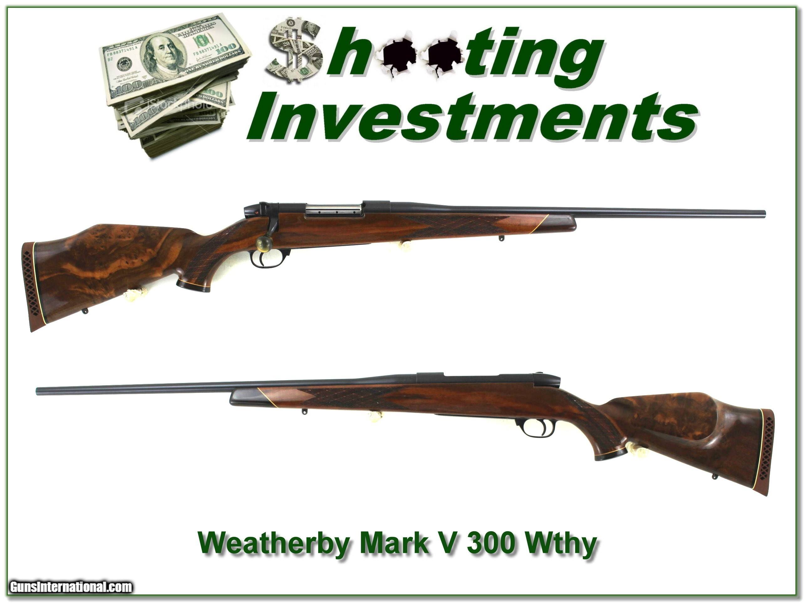 Description: Collectors and big game hunters, this is a beautiful Weatherby Mark V Deluxe in the hard hitting and flat shooting 300 Wthy mag! If is near new and still has the factory rubber covering on the bolt. It doesn’t look like a scope was ever mounted and at most a few rounds fired. It has the lightweight no longer available 24in barrel making it for me the better choice for most real world hunters. And look at the wood! It has an exceptional figure in the butt! I don’t see any marks. With the current cost a new Deluxe now at $2600 how in world can you go wrong here? It is a Shooting Investment! Shipping with insurance is $49. Please email me with any questions or larger pictures. (Consign your quality firearms with Shooting Investments for only 12%! Let me know if you have any you would like to sell!) 24-0809 Payment: Payment is by Money Order, Cashier’s Check or Personal Check. I can now also accept Credit Cards (MasterCard, Visa, Discover & American Express) with a 3% convenience fee. Shipping: The shipping charge will be listed in each description. It is $49 for most firearms. Some heavy guns or those insured for over $2000 will be higher. Shipments to Alaska and Hawaii are higher because air shipment is required. Most firearms are shipped on Tuesday and Thursday and usually in 5 days of receipt of payment. We package all shipments carefully and insure them. Optics are shipped Priority Mail and most other non-firearm shipments are shipped First Class. Returns: Our return policy is simple. If for any reason you are not pleased with your purchase, you may return your item for a full refund of purchase price. Ammunition cannot be returned. It is important to us that you are happy. Guns cannot be fired or dissembled before returning them and they must be returned in the same condition as received. Notification of a return must occur within 3 days of receipt at your dealer. Shipping, convenience and dealer fees are not refundable and are the responsibility of the buyer. Lay-a-way: If needed, we offer a 60 day lay-a-way option on most firearms. It is 1/3 now, 1/3 in 30 days and 1/3 in 60 days. Lay-a-way firearm sales are final and cannot be returned. If a lay-a-way is not completed the first payment cannot be refunded. Consigning your firearms with Shooting Investments: We will help you get top dollar for your firearms. While most local guns shops charge 20% or more, our fee is only 12% with a minimum of $75. At your local gun shop it might take months to sell. Selling on-line provides instant access to thousands of interested buyers. You won’t find any other on-line dealer willing to sell your firearms for only 12% or listing every gun on 3 separate s. Selling through an House typically costs the seller 15% and the buyer an addition 15% (so 30%) and you have to wait several months to sell and longer to receive funds. If properly priced, we will sell your firearms within a few weeks. Send us an email or give us a call and we’ll explain how easy it is for you to get top dollar. Trading: Trading for us is really just buying your gun to re-sell. If you have a gun you want to trade, please email a picture and we will let you know what we can give for it. You will always get more if we sell it for you on consignment. SOLD |