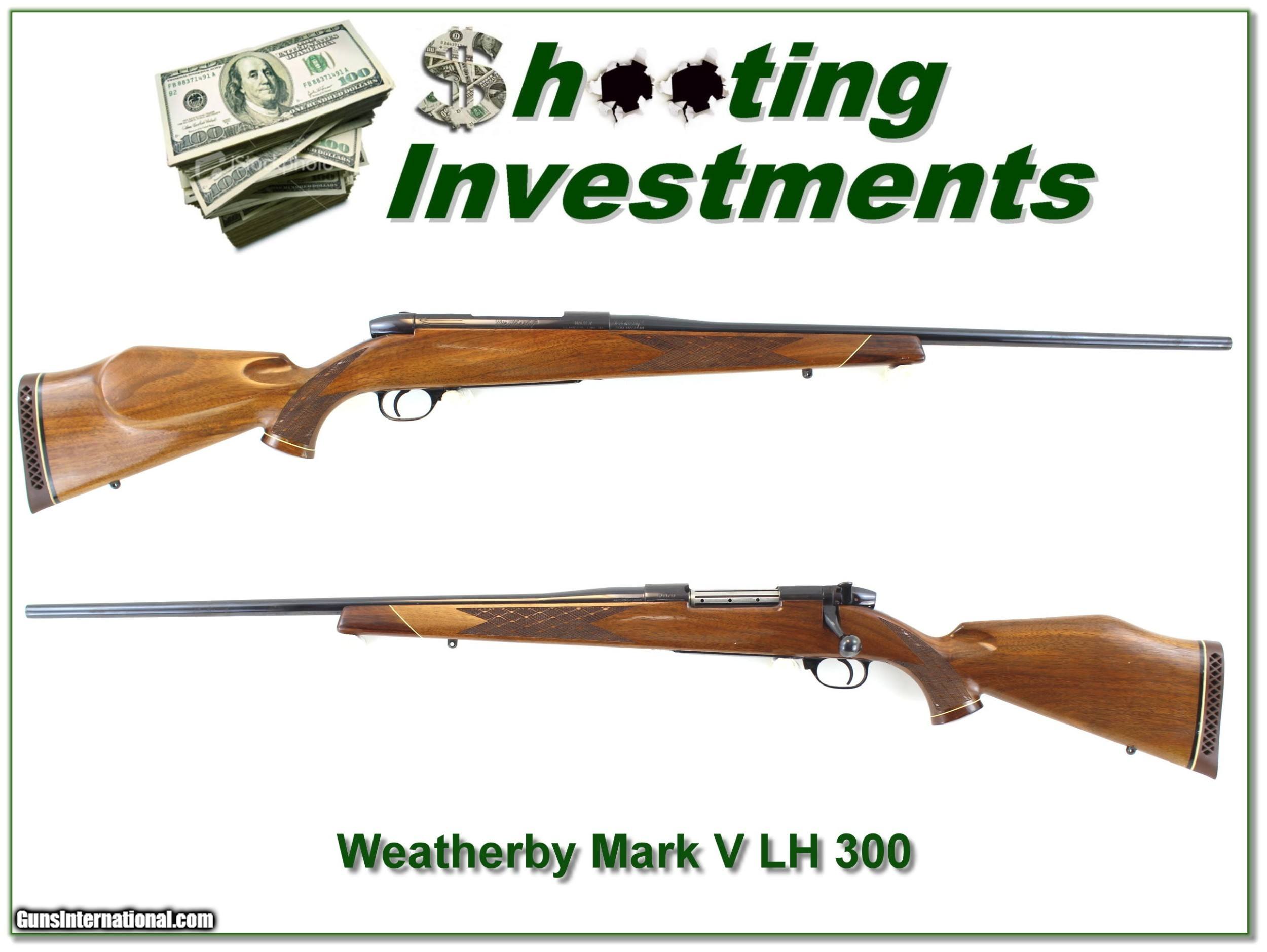 Description: This is a Left-Handed German made Weatherby Mark V Deluxe in the flat shooting and hard hitting 300 Weatherby Magnum. I am sure only a few rounds fired, and the lugs are very sharp. The blue is excellent with the exception of some spots on the outside of the barrel from blood or being stored damp at some point. The bore is perfect and razor sharp. The wood is excellent with just a few minor marks. This will make a classic big game hunting gun for the Left-Handed shooter! Shipping and insurance is $39. Please email me with any questions or larger pictures. (Consign your quality firearms with Shooting Investments for only 12%! Let me know if you have any you would like to sell!) 20-0144 Payment: Payment is by Money Order, Cashiers Check or Personal Check. I can now also accept MasterCard and Visa with a 3% convenience fee. PayPal can be used for some items but never firearms. Please let us know if you would like to pay via PayPal. Shipping: The shipping charge will be listed in each description. It is $39 for most long guns and $29 for most handguns. Some heavy guns or those insured for over $2000 will be higher. Shipments to Alaska and Hawaii are higher because air shipment is required. Most firearms are shipped on Tuesday and Thursday and usually in 5 days of receipt of payment. We package all shipments carefully and insure them. For long guns you can purchase a new Plano case for $19. They now cost us $22 when buying 100 at a time. Optics are shipped Priority Mail and most other non-firearm shipments are shipped First Class. Returns: Our return policy is simple. If for any reason you are not pleased with your purchase, you may return your item for a full refund of purchase price. Ammunition cannot be returned. It is important to us that you are happy. Guns cannot be fired or dissembled before returning them and they must be returned in the same condition as received. Notification of a return must occur with-in 3 days of receipt at your dealer. Shipping, convenience and dealer fees are not refundable and are the responsibility of the buyer. Lay-a-way: If needed, we offer a 60 day lay-a-way option on most firearms. It is 1/3 now, 1/3 in 30 days and 1/3 in 60 days. Lay-a-way firearm sales are final and if not completed the first payment cannot be returned. Consigning your firearms with Shooting Investments: We will help you get top dollar for your firearms. While most local guns shops charge 20% or more, our fee is only 12% with a minimum of $75. At your local gun shop it might take months to sell. Selling on-line provides instant access to thousands of interested buyers. You won’t find any other on-line dealer willing to sell your firearms for only 12% or listing every gun on 3 separate s. Selling through an House typically costs the seller 15% and the buyer an addition 15% (so 30%) and you have to wait several months to sell and longer to receive funds. If properly priced, we will sell your firearms in a few weeks. Send us an email or give us a call and we’ll explain how easy it is for you to get top dollar. Trading: Trading for use is really just buying your gun to re-sell. If you have a gun you want to trade, please email a picture and we will let you know what we can give or it. You will always get more if we sell it for you on consignment. Help for California Buyers: We are happy to ship to California. It is the buyer’s responsibility to make sure any item you buy is legal in your state. We are also happy to help with your purchase of a firearm from someone other than us. If you see a gun you would like to buy but the seller can’t or won’t ship to California they can ship to use and we’ll then ship it to your California dealer. The cost for this service is only $30 + shipping. Let us know if we can help! SOLD |