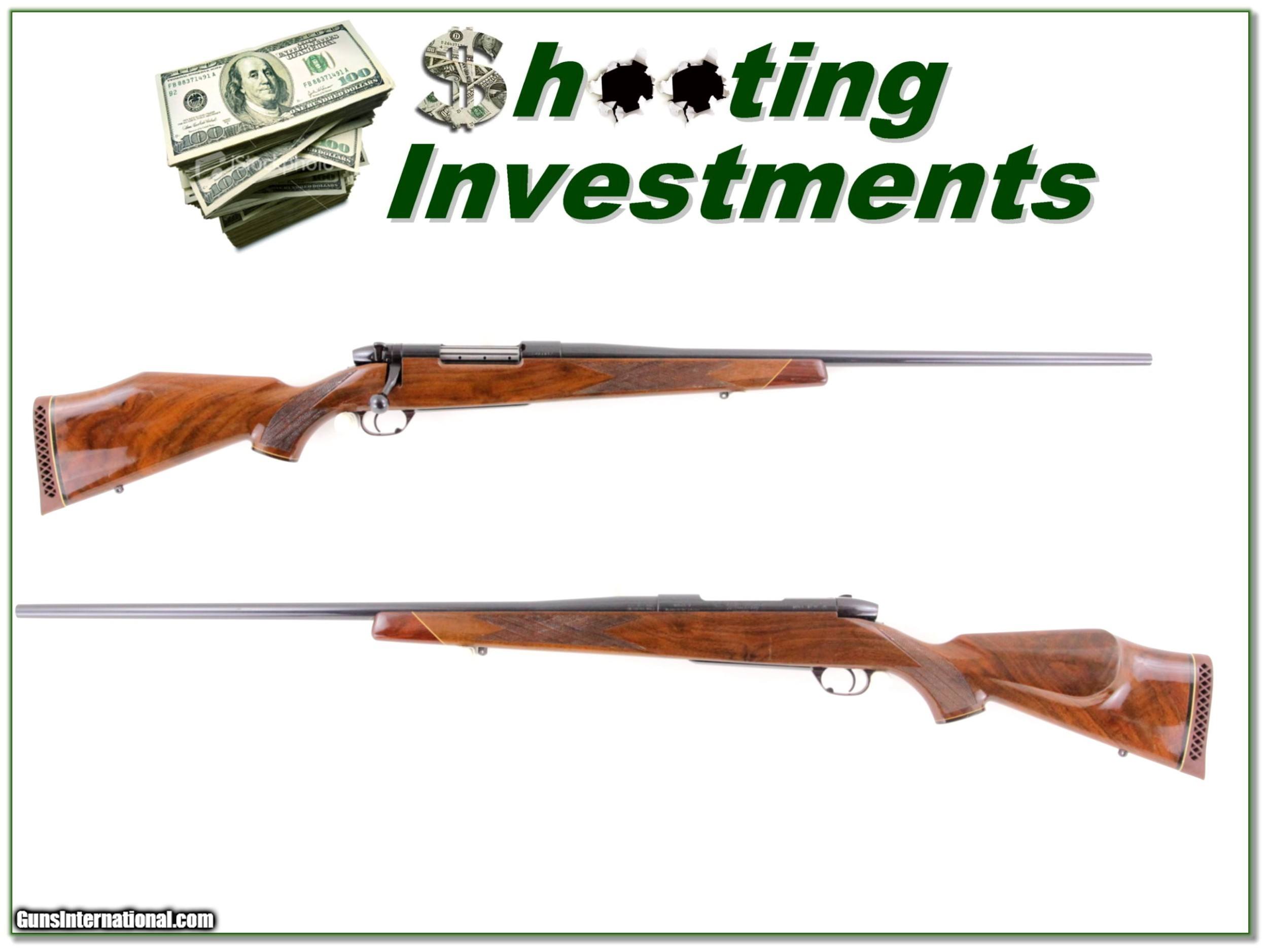 Description: This is a Mark V Deluxe in 7mm Weatherby Magnum. It is a USA made Mark V with 26in barrel. The wood is better than most. It has a few marks from light use. The lugs are razor sharp, so I know no fired many rounds. It will make a high-end hunting gun at less than half the price of a new Deluxe! Shipping with insurance is $39. Please email me with any questions or larger pictures. (Consign your quality firearms with Shooting Investments for only 12%! Let me know7if you have any you would like to sell!) 19-0927 Payment: Payment is by Money Order, Cashiers Check or Personal Check. I can now also accept MasterCard and Visa with a 3% convenience fee. PayPal can be used for some items but never firearms. Please let us know if you would like to pay via PayPal. Shipping: The shipping charge will be listed in each description. It is $39 for most long guns and $29 for most handguns. Some heavy guns or those insured for over $2000 will be higher. Shipments to Alaska and Hawaii are higher because air shipment is required. Most firearms are shipped on Tuesday and Thursday and usually in 5 days of receipt of payment. We package all shipments carefully and insure them. For long guns you can purchase a new Plano case for $19. They now cost us $22 when buying 100 at a time. Optics are shipped Priority Mail and most other non-firearm shipments are shipped First Class. Returns: Our return policy is simple. If for any reason you are not pleased with your purchase, you may return your item for a full refund of purchase price. Ammunition cannot be returned. It is important to us that you are happy. Guns cannot be fired or dissembled before returning them and they must be returned in the same condition as received. Notification of a return must occur with-in 3 days of receipt at your dealer. Shipping, convenience and dealer fees are not refundable and are the responsibility of the buyer. Lay-a-way: If needed, we offer a 60 day lay-a-way option on most firearms. It is 1/3 now, 1/3 in 30 days and 1/3 in 60 days. Lay-a-way firearm sales are final and if not completed the first payment cannot be returned. Consigning your firearms with Shooting Investments: We will help you get top dollar for your firearms. While most local guns shops charge 20% or more, our fee is only 12% with a minimum of $75. At your local gun shop it might take months to sell. Selling on-line provides instant access to thousands of interested buyers. You won’t find any other on-line dealer willing to sell your firearms for only 12% or listing every gun on 3 separate s. Selling through an House typically costs the seller 15% and the buyer an addition 15% (so 30%) and you have to wait several months to sell and longer to receive funds. If properly priced, we will sell your firearms in a few weeks. Send us an email or give us a call and we’ll explain how easy it is for you to get top dollar. Trading: Trading for use is really just buying your gun to re-sell. If you have a gun you want to trade, please email a picture and we will let you know what we can give or it. You will always get more if we sell it for you on consignment. Help for California Buyers: We are happy to ship to California. It is the buyer’s responsibility to make sure any item you buy is legal in your state. We are also happy to help with your purchase of a firearm from someone other than us. If you see a gun you would like to buy but the seller can’t or won’t ship to California they can ship to use and we’ll then ship it to your California dealer. The cost for this service is only $30 + shipping. Let us know if we can help! SOLD |