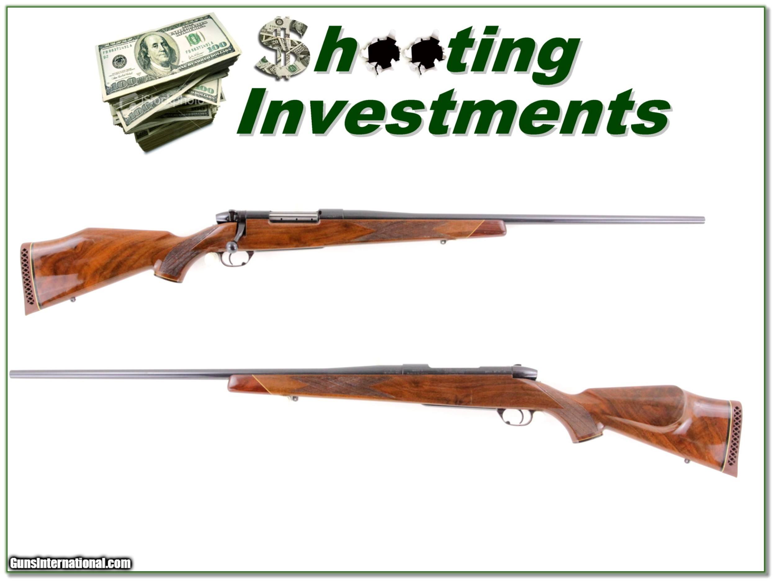 Description: This is a Mark V Deluxe in 7mm Weatherby Magnum. It is a USA made Mark V with 26in barrel. The wood is better than most. It has a few marks from light use. The lugs are razor sharp, so I know no fired many rounds. It will make a high-end hunting gun at less than half the price of a new Deluxe! Shipping with insurance is $39. Please email me with any questions or larger pictures. (Consign your quality firearms with Shooting Investments for only 12%! Let me know7if you have any you would like to sell!) 19-0927 Payment: Payment is by Money Order, Cashiers Check or Personal Check. I can now also accept Credit Cards (MasterCard, Visa, Discover & American Express) with a 3% convenience fee. PayPal can be used for some items but never for firearms. Shipping: The shipping charge will be listed in each description. It is $39 for most firearms. Some heavy guns or those insured for over $2000 will be higher. Shipments to Alaska and Hawaii are higher because air shipment is required. Most firearms are shipped on Tuesday and Thursday and usually in 5 days of receipt of payment. We package all shipments carefully and insure them. Optics are shipped Priority Mail and most other non-firearm shipments are shipped First Class. Returns: Our return policy is simple. If for any reason you are not pleased with your purchase, you may return your item for a full refund of purchase price. Ammunition cannot be returned. It is important to us that you are happy. Guns cannot be fired or dissembled before returning them and they must be returned in the same condition as received. Notification of a return must occur with-in 3 days of receipt at your dealer. Shipping, convenience and dealer fees are not refundable and are the responsibility of the buyer. Lay-a-way: If needed, we offer a 60 day lay-a-way option on most firearms. It is 1/3 now, 1/3 in 30 days and 1/3 in 60 days. Lay-a-way firearm sales are final and if not completed the first payment cannot be returned. Consigning your firearms with Shooting Investments: We will help you get top dollar for your firearms. While most local guns shops charge 20% or more, our fee is only 12% with a minimum of $75. At your local gun shop it might take months to sell. Selling on-line provides instant access to thousands of interested buyers. You won’t find any other on-line dealer willing to sell your firearms for only 12% or listing every gun on 3 separate s. Selling through an House typically costs the seller 15% and the buyer an addition 15% (so 30%) and you have to wait several months to sell and longer to receive funds. If properly priced, we will sell your firearms in a few weeks. Send us an email or give us a call and we’ll explain how easy it is for you to get top dollar. Trading: Trading for use is really just buying your gun to re-sell. If you have a gun you want to trade, please email a picture and we will let you know what we can give or it. You will always get more if we sell it for you on consignment. Help for California Buyers: We are happy to ship to California. It is the buyer’s responsibility to make sure any item you buy is legal in your state. We are also happy to help with your purchase of a firearm from someone other than us. If you see a gun you would like to buy but the seller can’t or won’t ship to California they can ship to use and we’ll then ship it to your California dealer. The cost for this service is only $30 + shipping. Let us know if we can help! SOLD |