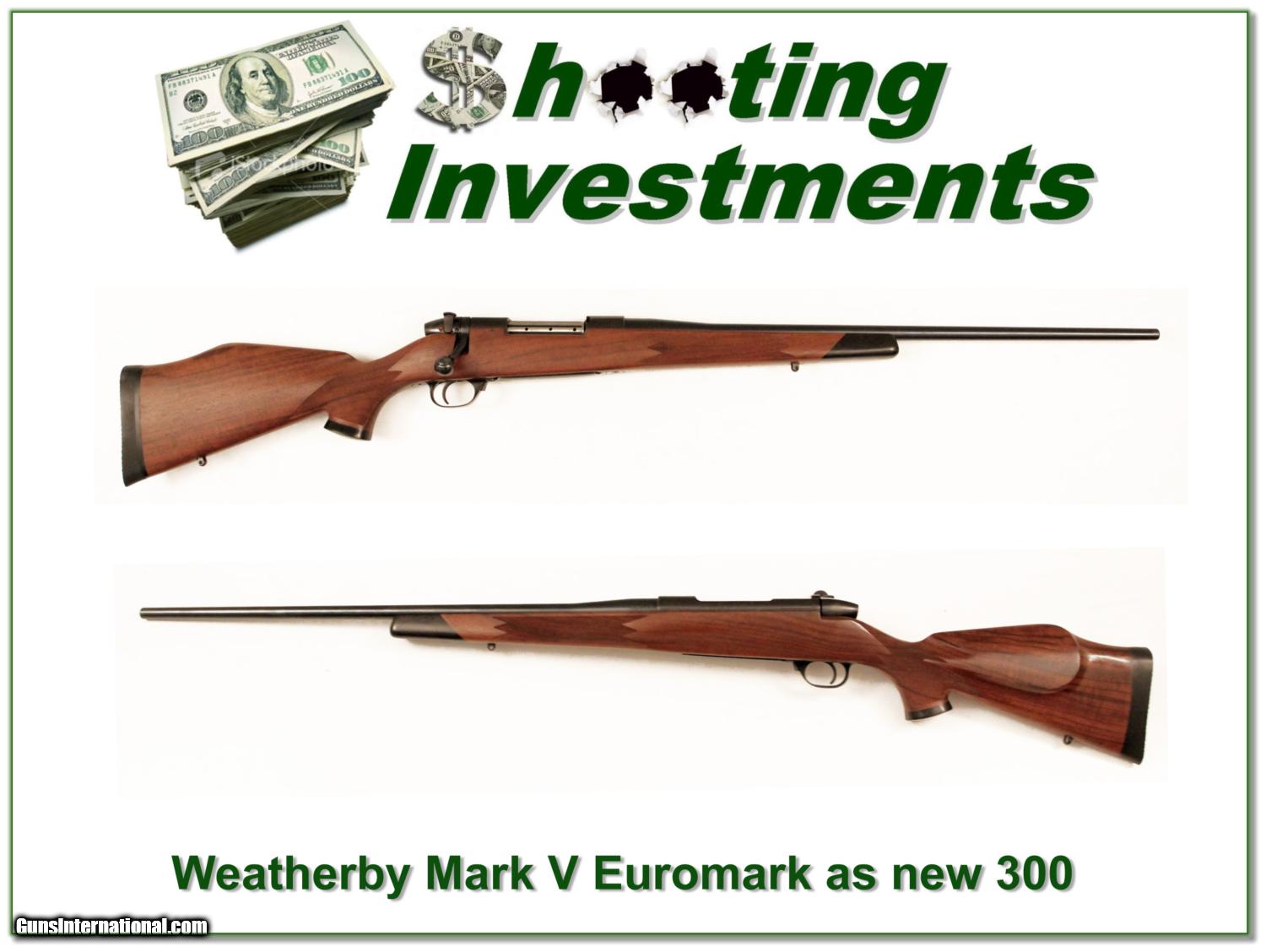 Description: Collectors and hunters, this is an early Japan Mark V Euromark made in the 80’s. It is in excellent as new condition. These guns have an oil finished stock and low luster blue. This one is a no longer made 300 with a lighter 24in barrel. This makes it perfect for most hunters. This is a gun that is sure to increase in value over time. That makes it a Shooting Investment. Shipping and insurance is $30 or $18 more if you want it shipped in a new Plano hard case. Please email me with any questions or larger pictures. (I now consign quality firearms only 10%! Let me know if you have any you would like to sell!) [15-1010] Payment: Payment is by Money Order, Cashiers Check or Personal Check. I can now also accept MasterCard and Visa with a 3% convenience fee. PayPal can be used for some items but never firearms. Please let us know if you would like to pay via PayPal. Shipping: The shipping charge will be listed in each description. It is $30 for most guns. Some heavy guns or those insured for over $2000 may be higher. Shipments to Alaska and Hawaii are higher because air shipment is required. Most firearms are shipped within 5 days of receipt of payment. We prefer shipping at the beginning of the week to avoid firearms in transit over weekends. We package all shipments carefully and insure them for the full purchase price, rounded up to the next $100. In the unlikely event that damage occurs, it is important that you save all packaging material for the claims process. Optics are shipped Priority Mail and most other non-firearm shipments are shipped First Class. Returns: Our return policy is simple. If for any reason you are not pleased with your purchase, you may return your item for a refund. The only exception is ammunition, it cannot be returned. It is important to us that you are happy. Guns cannot be fired or dissembled before returning them and must be returned in the same condition as received. Notification of a return must occur with-in 3 days of receipt at your dealer. Shipping, convenience and dealer fees are not refundable and are the responsibility of the buyer. Lay-a-way: If needed, we offer a 60 day lay-a-way option on most firearms. It is 1/3 now, 1/3 in 30 days and 1/3 in 60 days. Lay-a-way firearm sales are final. Consigning your firearms with Shooting Investments: We will help you get top dollar for your firearms. While most local guns shops charge 20% or more, our fee is only 10% with a minimum of $50. At your local gun shop it might take months to sell. Selling on-line provides instant access to thousands of interested buyers. You won’t find any other on-line dealer willing to sell your firearms for only 10% or listing every gun on 4 separate s. Selling through an House typically costs the seller 15% and the buyer an addition 15% (so 30%) and you have to wait several months to sell and longer to receive funds. If properly priced, we will sell your firearms in a week or two. Send us an email or give us a call and we’ll explain how easy it is for you to get top dollar. Trading: We collect guns and usually just trade for guns we want to add to our collections. We often sell guns for others wanting to purchase one of ours. We find this the most fair to both of us. Our Commission is only 10% and we hold the gun you want until yours sells. Please contact us if you want to sell one of yours to buy one of ours. Help for California Buyers: We are happy to ship to California. It is the buyer’s responsibility to make sure any item you buy is legal in your state. We are also happy to help with your purchase of a firearm from someone other than us. If you see a gun you would like to buy but the seller can’t or won’t ship to California we can help. You buy the gun and have it shipped to us. We’ll then ship it to your California dealer. The cost for this service is only $30 + shipping. Let me know if we can help! SOLD |