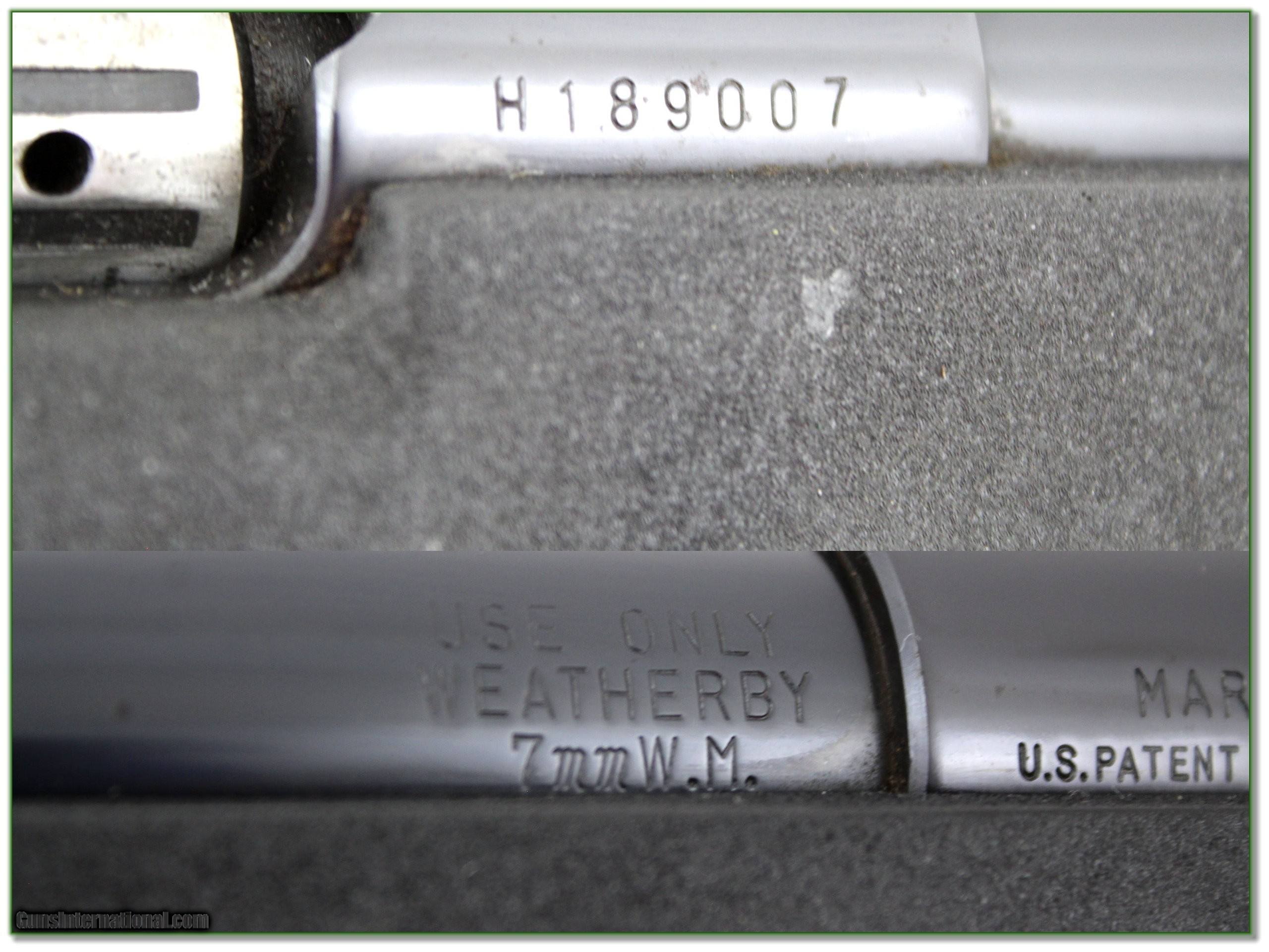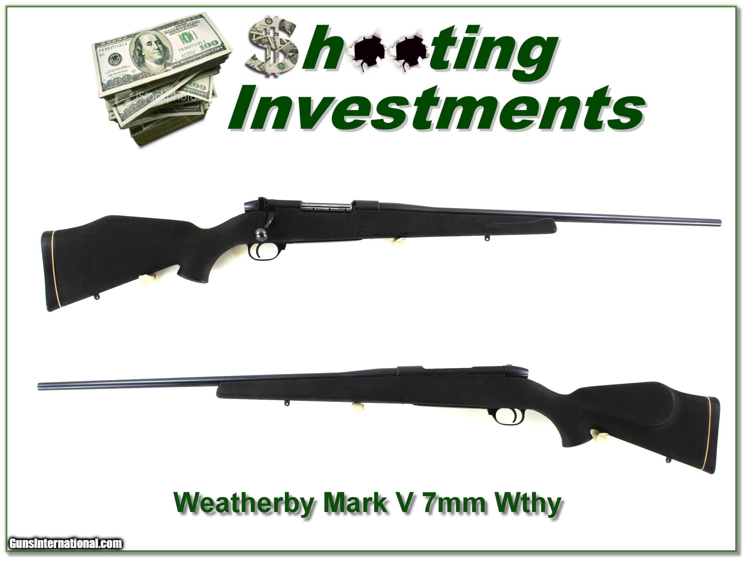 Description: Long range big game hunters, this is the original Weatherby Fibermark with white diamond in the pistol grip. It’s a 7mm Weatherby Magnum with lightweight 24in barrel. The blue is excellent with no marks or muzzle wear. I don’t think many rounds fired. The stock has a few minor marks here and there. It will make a classic high-end light weight hunting gun! Shipping and insurance is $49. Please email me with any questions or larger pictures. (Consign your quality firearms with Shooting Investments for only 12%! Let me know if you have any you would like to sell!) 23-0891 Payment: Payment is by Money Order, Cashier’s Check or Personal Check. I can now also accept Credit Cards (MasterCard, Visa, Discover & American Express) with a 3% convenience fee. Shipping: The shipping charge will be listed in each description. It is $49 for most firearms. Some heavy guns or those insured for over $2000 will be higher. Shipments to Alaska and Hawaii are higher because air shipment is required. Most firearms are shipped on Tuesday and Thursday and usually in 5 days of receipt of payment. We package all shipments carefully and insure them. Optics are shipped Priority Mail and most other non-firearm shipments are shipped First Class. Returns: Our return policy is simple. If for any reason you are not pleased with your purchase, you may return your item for a full refund of purchase price. Ammunition cannot be returned. It is important to us that you are happy. Guns cannot be fired or dissembled before returning them and they must be returned in the same condition as received. Notification of a return must occur within 3 days of receipt at your dealer. Shipping, convenience and dealer fees are not refundable and are the responsibility of the buyer. Lay-a-way: If needed, we offer a 60 day lay-a-way option on most firearms. It is 1/3 now, 1/3 in 30 days and 1/3 in 60 days. Lay-a-way firearm sales are final and cannot be returned. If a lay-a-way is not completed the first payment cannot be refunded. Consigning your firearms with Shooting Investments: We will help you get top dollar for your firearms. While most local guns shops charge 20% or more, our fee is only 12% with a minimum of $75. At your local gun shop it might take months to sell. Selling on-line provides instant access to thousands of interested buyers. You won’t find any other on-line dealer willing to sell your firearms for only 12% or listing every gun on 3 separate s. Selling through an House typically costs the seller 15% and the buyer an addition 15% (so 30%) and you have to wait several months to sell and longer to receive funds. If properly priced, we will sell your firearms within a few weeks. Send us an email or give us a call and we’ll explain how easy it is for you to get top dollar. Trading: Trading for us is really just buying your gun to re-sell. If you have a gun you want to trade, please email a picture and we will let you know what we can give for it. You will always get more if we sell it for you on consignment. SOLD |