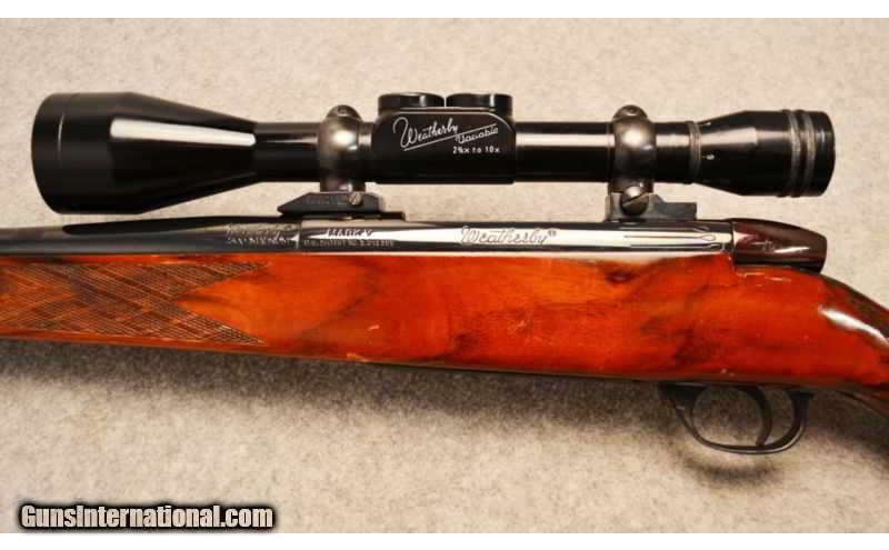 Description: Weatherby Mark V in 300 WBY Mag in Very Good Condition SOLD Caliber Info: 300 Weatherby Magnum Metal Condition: Very Good Wood Condition: Good Bore Condition: Shiny and Bright Barrels: 26 Inch Blued Barrel Triggers: Factory Trigger Stock: Checkered Walnut With Monte Carlo Stock Fore End: Checkered Walnut Butt Pad: Factory Red Rubber Butt Pad Weight: 9 Lbs Sights: Weatherby Variable 2x10 Scope Extras: Firearm Overall Is In Very Good Condition With Wear Marks On Stock. Metal Has Very Few Handling Marks. With Scope Item Location: Rogers, AR |