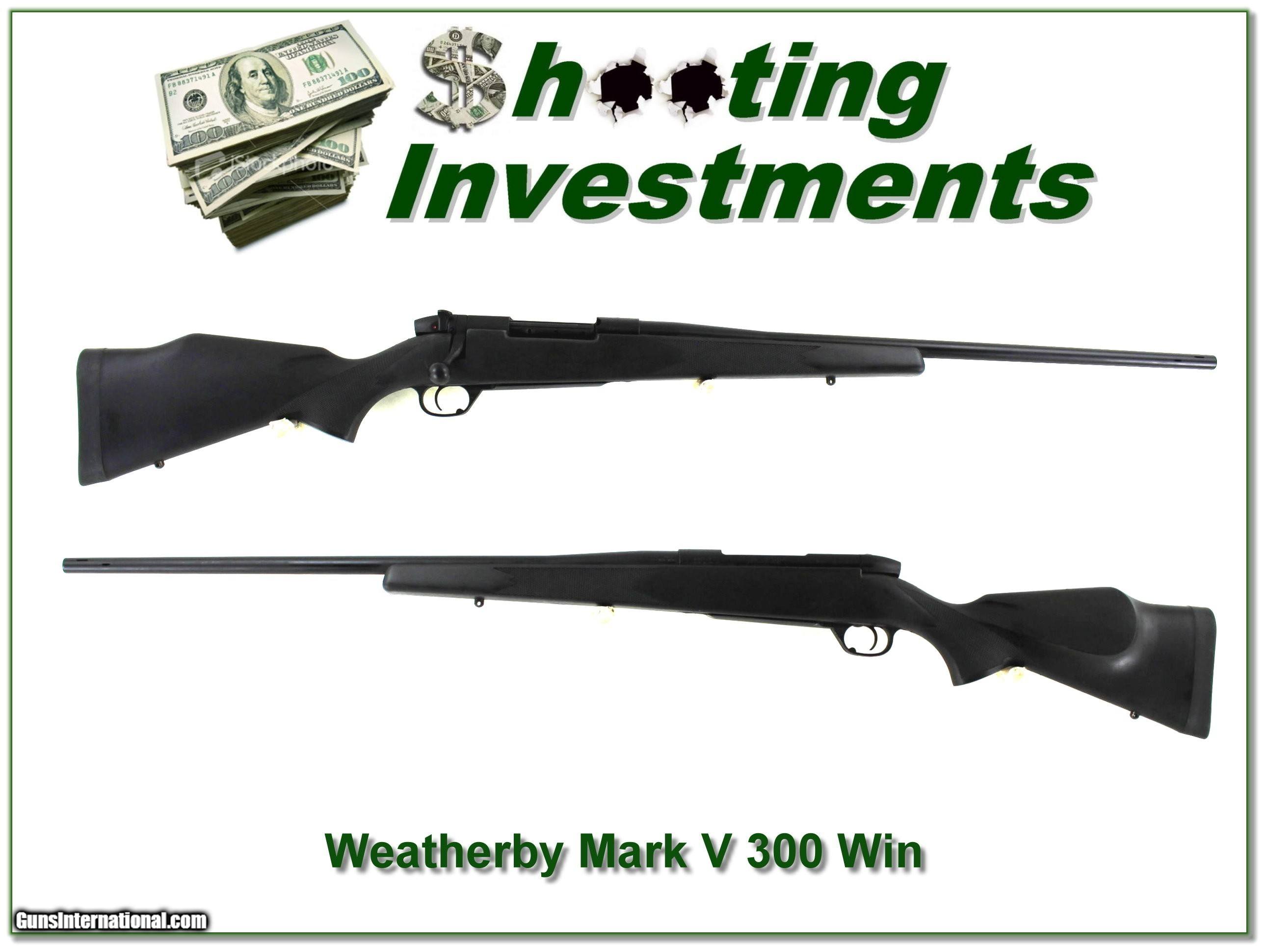Description: Big game hunters, this is an excellent condition Weatherby Mark V in the harder to find 300 Winchester Magnum. It is a USA made Mark V with lightweight 24in magna ported barrel. I find no marks of note and from the razor-sharp lugs I’m sure only a few rounds fired. It will make a high-end big game gun and “cheap new gun” price! I call it a Shooting Investment. Shipping and insurance is $49. Please email me with any questions or larger pictures. (Consign your quality firearms with Shooting Investments for only 12%! Let me know if you have any you would like to sell!) 24-0319 Payment: Payment is by Money Order, Cashier’s Check or Personal Check. I can now also accept Credit Cards (MasterCard, Visa, Discover & American Express) with a 3% convenience fee. Shipping: The shipping charge will be listed in each description. It is $49 for most firearms. Some heavy guns or those insured for over $2000 will be higher. Shipments to Alaska and Hawaii are higher because air shipment is required. Most firearms are shipped on Tuesday and Thursday and usually in 5 days of receipt of payment. We package all shipments carefully and insure them. Optics are shipped Priority Mail and most other non-firearm shipments are shipped First Class. Returns: Our return policy is simple. If for any reason you are not pleased with your purchase, you may return your item for a full refund of purchase price. Ammunition cannot be returned. It is important to us that you are happy. Guns cannot be fired or dissembled before returning them and they must be returned in the same condition as received. Notification of a return must occur within 3 days of receipt at your dealer. Shipping, convenience and dealer fees are not refundable and are the responsibility of the buyer. Lay-a-way: If needed, we offer a 60 day lay-a-way option on most firearms. It is 1/3 now, 1/3 in 30 days and 1/3 in 60 days. Lay-a-way firearm sales are final and cannot be returned. If a lay-a-way is not completed the first payment cannot be refunded. Consigning your firearms with Shooting Investments: We will help you get top dollar for your firearms. While most local guns shops charge 20% or more, our fee is only 12% with a minimum of $75. At your local gun shop it might take months to sell. Selling on-line provides instant access to thousands of interested buyers. You won’t find any other on-line dealer willing to sell your firearms for only 12% or listing every gun on 3 separate s. Selling through an House typically costs the seller 15% and the buyer an addition 15% (so 30%) and you have to wait several months to sell and longer to receive funds. If properly priced, we will sell your firearms within a few weeks. Send us an email or give us a call and we’ll explain how easy it is for you to get top dollar. Trading: Trading for us is really just buying your gun to re-sell. If you have a gun you want to trade, please email a picture and we will let you know what we can give for it. You will always get more if we sell it for you on consignment. SOLD |