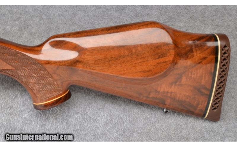 Description: Nicely figured wood shows a few light use/storage marks. Barrel blue has a bit of wear at the muzzle. Complete with rings and base. Japan manufacture. No box. SOLD Manufacturer: S/N H112XXX Caliber Info: .300 Wby. Mag. Metal Condition: Very Good Wood Condition: Very Good Bore Condition: Excellent Barrels: 26 Triggers: Factory Stock: Checkered Walnut Pistol Grip with Contrasting Cap Stock Dimensions: 13 3/8" LOP Fore End: Checkered Walnut with Contrasting Cap Butt Pad: Brown Vented Rubber Weight: 9 LB Sights: None - Rings and Base Included Item Location: Wheeling, WV |