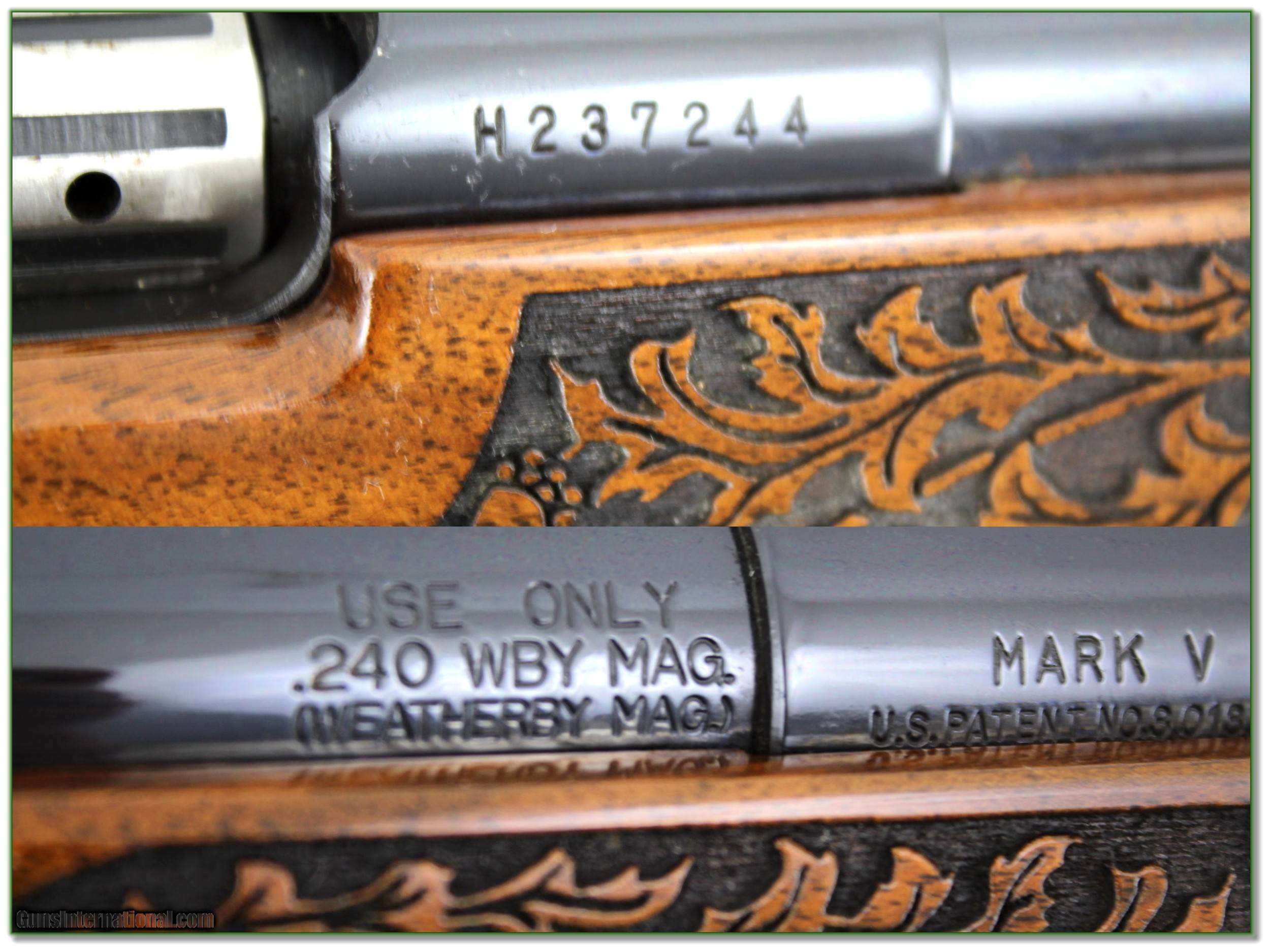 Description: Collectors, this is a beautiful Weatherby Lazermark in the VERY HARD TO FIND 240 Weatherby! And it is the almost impossible to find 26in! This is a 9-Lug 240 not the current 6 lug gun. This one is in excellent collector condition with just a few minor marks. I am sure not many rounds fired. It will make prized addition to your collection or be a high-end hunting gun. Shipping and insurance is $39. Please email me with any questions or larger pictures. (Consign your quality firearms with Shooting Investments for only 12%! Let me know if you have any you would like to sell!) 20-0888 Payment: Payment is by Money Order, Cashiers Check or Personal Check. I can now also accept Credit Cards (MasterCard, Visa, Discover & American Express) with a 3% convenience fee. Shipping: The shipping charge will be listed in each description. It is $39 for most firearms. Some heavy guns or those insured for over $2000 will be higher. Shipments to Alaska and Hawaii are higher because air shipment is required. Most firearms are shipped on Tuesday and Thursday and usually in 5 days of receipt of payment. We package all shipments carefully and insure them. Optics are shipped Priority Mail and most other non-firearm shipments are shipped First Class. Returns: Our return policy is simple. If for any reason you are not pleased with your purchase, you may return your item for a full refund of purchase price. Ammunition cannot be returned. It is important to us that you are happy. Guns cannot be fired or dissembled before returning them and they must be returned in the same condition as received. Notification of a return must occur with-in 3 days of receipt at your dealer. Shipping, convenience and dealer fees are not refundable and are the responsibility of the buyer. Lay-a-way: If needed, we offer a 60 day lay-a-way option on most firearms. It is 1/3 now, 1/3 in 30 days and 1/3 in 60 days. Lay-a-way firearm sales are final and if not completed the first payment cannot be returned. Consigning your firearms with Shooting Investments: We will help you get top dollar for your firearms. While most local guns shops charge 20% or more, our fee is only 12% with a minimum of $75. At your local gun shop it might take months to sell. Selling on-line provides instant access to thousands of interested buyers. You won’t find any other on-line dealer willing to sell your firearms for only 12% or listing every gun on 3 separate s. Selling through an House typically costs the seller 15% and the buyer an addition 15% (so 30%) and you have to wait several months to sell and longer to receive funds. If properly priced, we will sell your firearms in a few weeks. Send us an email or give us a call and we’ll explain how easy it is for you to get top dollar. Trading: Trading for use is really just buying your gun to re-sell. If you have a gun you want to trade, please email a picture and we will let you know what we can give or it. You will always get more if we sell it for you on consignment. Help for California Buyers: We are happy to ship to California. It is the buyer’s responsibility to make sure any item you buy is legal in your state. We are also happy to help with your purchase of a firearm from someone other than us. If you see a gun you would like to buy but the seller can’t or won’t ship to California they can ship to use and we’ll then ship it to your California dealer. The cost for this service is only $30 + shipping. Let us know if we can help! SOLD |