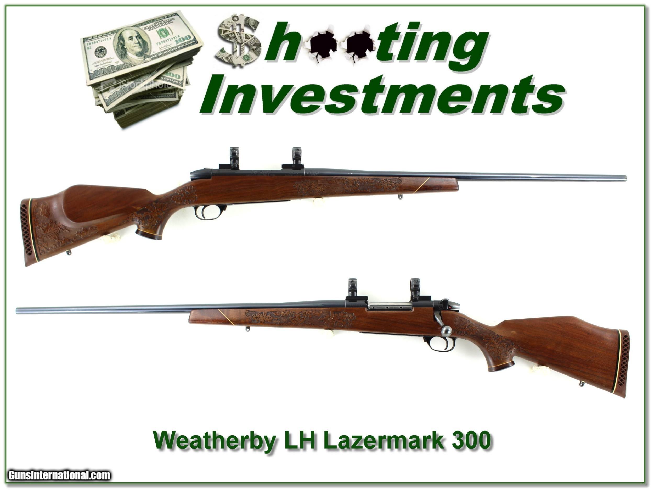 Description: This is a Left-Handed Weatherby Mark V 300 Lazermark. It is a the original 5-Panel in the harder to find 26in barrel. It is in lightly used condition with only a few minor marks. It’s owner has the gloss stock redone to an oil finish. It will make a classic big-game hunting gun for the Left Handed shooter. I am selling this one on consignment and as such lay-a-way can’t be used. It does of course have the standard 3-day inspection. Shipping and insurance is $39. Please email me with any questions or larger pictures. (Consign your quality firearms with Shooting Investments for only 12%! Let me know if you have any you would like to sell!) 21-0291 Payment: Payment is by Money Order, Cashiers Check or Personal Check. I can now also accept Credit Cards (MasterCard, Visa, Discover & American Express) with a 3% convenience fee. Shipping: The shipping charge will be listed in each description. It is $39 for most firearms. Some heavy guns or those insured for over $2000 will be higher. Shipments to Alaska and Hawaii are higher because air shipment is required. Most firearms are shipped on Tuesday and Thursday and usually in 5 days of receipt of payment. We package all shipments carefully and insure them. Optics are shipped Priority Mail and most other non-firearm shipments are shipped First Class. Returns: Our return policy is simple. If for any reason you are not pleased with your purchase, you may return your item for a full refund of purchase price. Ammunition cannot be returned. It is important to us that you are happy. Guns cannot be fired or dissembled before returning them and they must be returned in the same condition as received. Notification of a return must occur with-in 3 days of receipt at your dealer. Shipping, convenience and dealer fees are not refundable and are the responsibility of the buyer. Lay-a-way: If needed, we offer a 60 day lay-a-way option on most firearms. It is 1/3 now, 1/3 in 30 days and 1/3 in 60 days. Lay-a-way firearm sales are final and if not completed the first payment cannot be returned. Consigning your firearms with Shooting Investments: We will help you get top dollar for your firearms. While most local guns shops charge 20% or more, our fee is only 12% with a minimum of $75. At your local gun shop it might take months to sell. Selling on-line provides instant access to thousands of interested buyers. You won’t find any other on-line dealer willing to sell your firearms for only 12% or listing every gun on 3 separate s. Selling through an House typically costs the seller 15% and the buyer an addition 15% (so 30%) and you have to wait several months to sell and longer to receive funds. If properly priced, we will sell your firearms in a few weeks. Send us an email or give us a call and we’ll explain how easy it is for you to get top dollar. Trading: Trading for use is really just buying your gun to re-sell. If you have a gun you want to trade, please email a picture and we will let you know what we can give or it. You will always get more if we sell it for you on consignment. Help for California Buyers: We are happy to ship to California. It is the buyer’s responsibility to make sure any item you buy is legal in your state. We are also happy to help with your purchase of a firearm from someone other than us. If you see a gun you would like to buy but the seller can’t or won’t ship to California they can ship to use and we’ll then ship it to your California dealer. The cost for this service is only $30 + shipping. Let us know if we can help! SOLD |