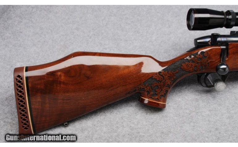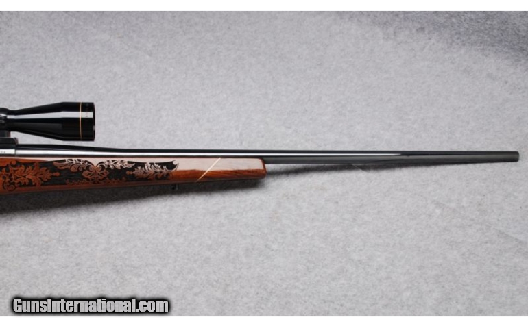 Description: This is a Weatherby Mark Lazermark rifle in 7MM Weatherby Magnum. The action is in Excellent condition. The barrel is in Very Good condition with some handling marks, and the bore is bright and shiny. The bottom metal is in Very Good condition with some handling marks. The stock shows some marks on the butt, the fore end tip, and on the left side above the trigger. It comes with a Leupold Vari-X II 3-9X40 scope in a Leupold one piece base. The scope is included in the price of the rifle and will not be removed, nor will the rifle be repriced without the scope. SOLD Caliber Info: 7MM Weatherby Magnum Metal Condition: Very good, light handling marks Wood Condition: Very Good with some handling marks Bore Condition: Bright and Shiny Barrels: 26 Stock: Lazermark wood Stock Dimensions: LOP: 13 1/4 Butt Pad: Factory ventilated rubber pad Weight: 9.5 lbs with scope Sights: Leupold Vari-X II 3-9X40 scope in a Leupold 1 piece mount Item Location: Reno, NV |