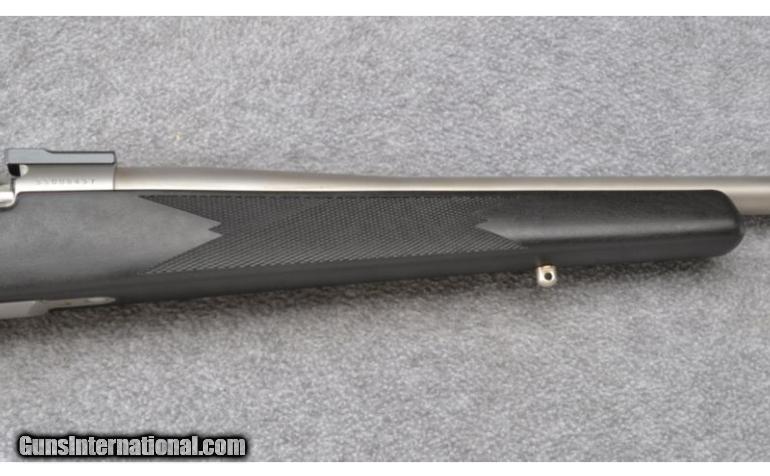Description: Excellent throughout complete with scope bases and box. SOLD Manufacturer: S/N SS008XXX Caliber Info: .340 Wby. Mag. Metal Condition: Excellent Bore Condition: Excellent Barrels: 26" Stainless Triggers: Factory Stock: Checkered Black Synthetic Pistol Grip Stock Dimensions: 13 1/2" LOP Fore End: Checkered Black Synthetic Butt Pad: Black Rubber Butt Pad Weight: 8 1/4 LB Sights: None-Bases Included Item Location: Wheeling, WV |