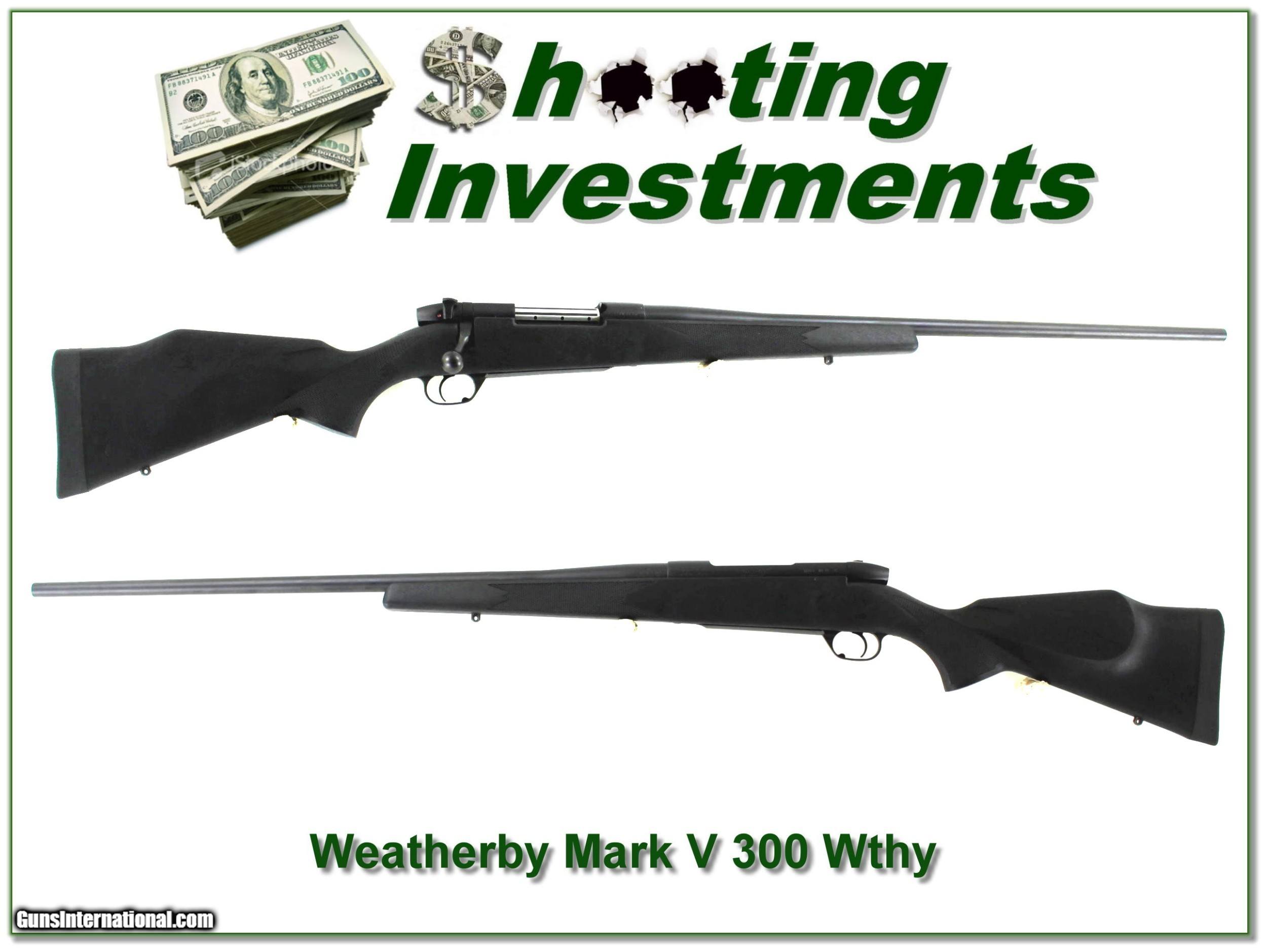 Description: This is a like new condition Weatherby Mark V. It has a 26in barrel and synthetic stock. I find no marks and I’m sure only a few rounds fired. It will make a High-end hunting and cheap gun price! I call that a Shooting Investment! Shipping and insurance is $49. Please email me with any questions or larger pictures. (Consign your quality firearms with Shooting Investments for only 12%! Let me know if you have any you would like to sell!) 22-1287 Payment: Payment is by Money Order, Cashiers Check or Personal Check. I can now also accept Credit Cards (MasterCard, Visa, Discover & American Express) with a 3% convenience fee. Shipping: The shipping charge will be listed in each description. It is $49 for most long guns. Some heavy guns, over 48in boxes or those insured for over $2000 will be higher. Shipments to Alaska and Hawaii are higher because air shipment is required. Most firearms are shipped on Tuesday and Thursday and usually in 5 days of receipt of payment. We package all shipments carefully and insure them. Optics are shipped Priority Mail and most other non-firearm shipments are shipped First Class. Returns: Our return policy is simple. If for any reason you are not pleased with your purchase, you may return your item for a full refund of purchase price. Ammunition cannot be returned. It is important to us that you are happy. Guns cannot be fired or dissembled before returning them and they must be returned in the same condition as received. Notification of a return must occur with-in 3 days of receipt at your dealer. Shipping, convenience and dealer fees are not refundable and are the responsibility of the buyer. Lay-a-way: If needed, we offer a 60 day lay-a-way option on most firearms. It is 1/3 now, 1/3 in 30 days and 1/3 in 60 days. Lay-a-way firearm sales are final and if not completed the first payment cannot be returned. Consigning your firearms with Shooting Investments: We will help you get top dollar for your firearms. While most local guns shops charge 20% or more, our fee is only 12% with a minimum of $75. At your local gun shop it might take months to sell. Selling on-line provides instant access to thousands of interested buyers. You won’t find any other on-line dealer willing to sell your firearms for only 12% or listing every gun on 3 separate s. Selling through an House typically costs the seller 15% and the buyer an addition 15% (so 30%) and you have to wait several months to sell and longer to receive funds. If properly priced, we will sell your firearms in a few weeks. Send us an email or give us a call and we’ll explain how easy it is for you to get top dollar. Trading: Trading for use is really just buying your gun to re-sell. If you have a gun you want to trade, please email a picture and we will let you know what we can give or it. You will always get more if we sell it for you on consignment. Help for California Buyers: We are happy to ship to California. It is the buyer’s responsibility to make sure any item you buy is legal in your state. We are also happy to help with your purchase of a firearm from someone other than us. If you see a gun you would like to buy but the seller can’t or won’t ship to California they can ship to use and we’ll then ship it to your California dealer. The cost for this service is only $30 + shipping. Let us know if we can help! SOLD |