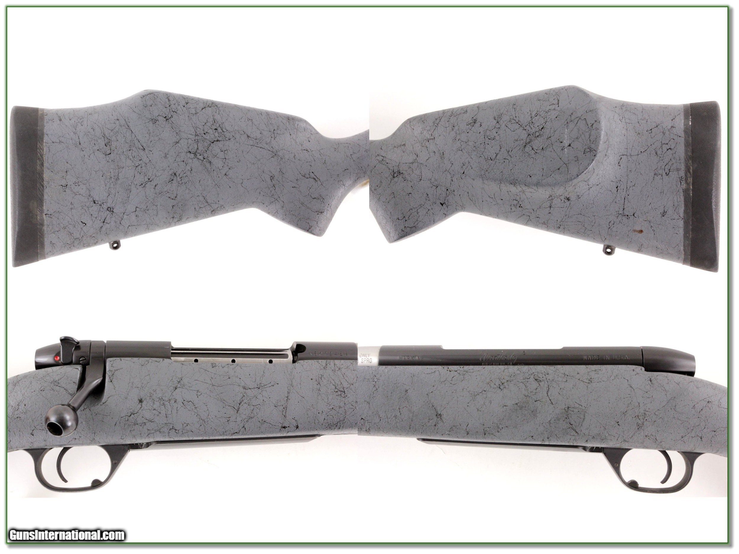 Description: This is the original Weatherby Ultra-Lightweight Mark V in 30-06. It has fired only a few rounds. These came with 24in stainless fluted barrels. This one had an option Accubreak installed ($250) and thus has recoil more like a rimfire! Total barrel length is now 26in. I find only some carry wear on the bottom metal otherwise no marks on receiver or barrel. It will make a high end all weather lightweight hunting gun in the most polular caliber ever! A new Mark V like this will be at least twice this price! You can’t go wrong here. Shipping with insurance is $39. Please email me with any questions or larger pictures. (Consign your quality firearms with Shooting Investments for only 12%! Let me know if you have any you would like to sell!) 19-1092 Payment: Payment is by Money Order, Cashiers Check or Personal Check. I can now also accept MasterCard and Visa with a 3% convenience fee. PayPal can be used for some items but never firearms. Please let us know if you would like to pay via PayPal. Shipping: The shipping charge will be listed in each description. It is $39 for most long guns and $29 for most handguns. Some heavy guns or those insured for over $2000 will be higher. Shipments to Alaska and Hawaii are higher because air shipment is required. Most firearms are shipped on Tuesday and Thursday and usually in 5 days of receipt of payment. We package all shipments carefully and insure them. For long guns you can purchase a new Plano case for $19. They now cost us $22 when buying 100 at a time. Optics are shipped Priority Mail and most other non-firearm shipments are shipped First Class. Returns: Our return policy is simple. If for any reason you are not pleased with your purchase, you may return your item for a full refund of purchase price. Ammunition cannot be returned. It is important to us that you are happy. Guns cannot be fired or dissembled before returning them and they must be returned in the same condition as received. Notification of a return must occur with-in 3 days of receipt at your dealer. Shipping, convenience and dealer fees are not refundable and are the responsibility of the buyer. Lay-a-way: If needed, we offer a 60 day lay-a-way option on most firearms. It is 1/3 now, 1/3 in 30 days and 1/3 in 60 days. Lay-a-way firearm sales are final and if not completed the first payment cannot be returned. Consigning your firearms with Shooting Investments: We will help you get top dollar for your firearms. While most local guns shops charge 20% or more, our fee is only 12% with a minimum of $75. At your local gun shop it might take months to sell. Selling on-line provides instant access to thousands of interested buyers. You won’t find any other on-line dealer willing to sell your firearms for only 12% or listing every gun on 3 separate s. Selling through an House typically costs the seller 15% and the buyer an addition 15% (so 30%) and you have to wait several months to sell and longer to receive funds. If properly priced, we will sell your firearms in a few weeks. Send us an email or give us a call and we’ll explain how easy it is for you to get top dollar. Trading: Trading for use is really just buying your gun to re-sell. If you have a gun you want to trade, please email a picture and we will let you know what we can give or it. You will always get more if we sell it for you on consignment. Help for California Buyers: We are happy to ship to California. It is the buyer’s responsibility to make sure any item you buy is legal in your state. We are also happy to help with your purchase of a firearm from someone other than us. If you see a gun you would like to buy but the seller can’t or won’t ship to California they can ship to use and we’ll then ship it to your California dealer. The cost for this service is only $30 + shipping. Let us know if we can help! SOLD |