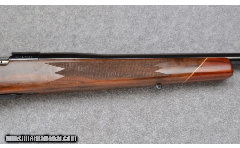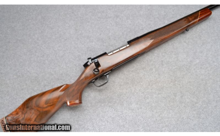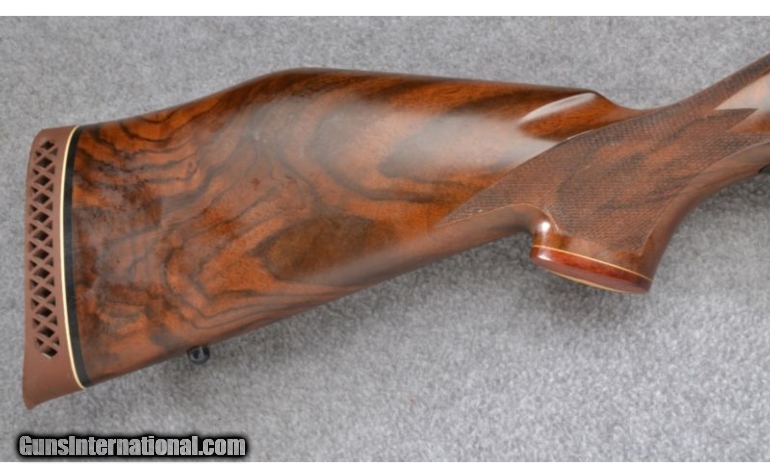 Description: Excellent throughout showing little to no use. Barrel is threaded for a muzzle brake (not included). USA manufacture. SOLD Manufacturer: S/N SB027XXX Caliber Info: .416 Wby. Mag. Metal Condition: Excellent Wood Condition: Excellent Bore Condition: Excellent Barrels: 26" with Threaded Muzzle Triggers: Factory Stock: Checkered Walnut Pistol Grip with Rosewood Cap Stock Dimensions: 13 1/2" LOP Fore End: Checkered Walnut with Rosewood Cap Butt Pad: Brown Vented Rubber Butt Pad Weight: 8 1/2 LB Item Location: Wheeling, WV |