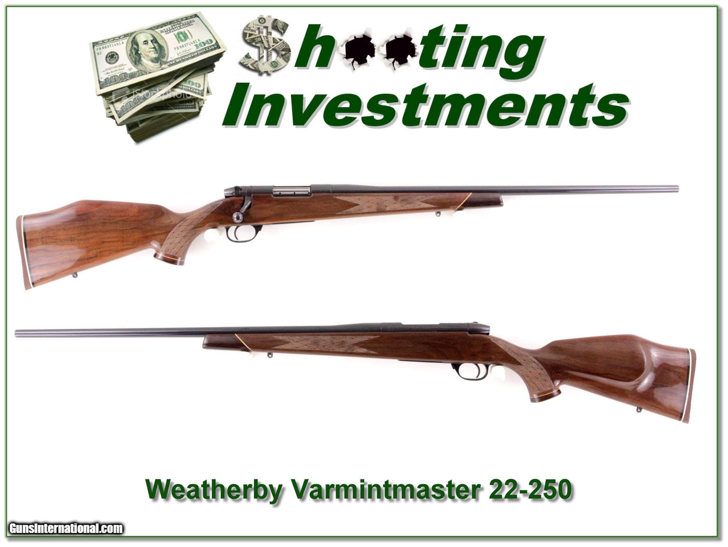 Description: Collectors and shooters, this is a like new Weatherby Varmintmaster in 22-250 Remington. I am sure only a few rounds fired. I find no marks on the blue or wood. You’ll look hard to find a nicer one. It has a 24in barrel and it a top-quality Japan made gun. They just don’t make them like they used too! I am selling this one on consignment and as such lay-a-way can’t be used. It does of course have the standard 3-day inspection. Shipping with insurance is $39. Please email me with any questions or larger pictures. (Consign your quality firearms with Shooting Investments for only 12%! Let me know if you have any you would like to sell!) 19-1167 Payment: Payment is by Money Order, Cashiers Check or Personal Check. I can now also accept MasterCard and Visa with a 3% convenience fee. PayPal can be used for some items but never firearms. Please let us know if you would like to pay via PayPal. Shipping: The shipping charge will be listed in each description. It is $39 for most guns. Some heavy guns or those insured for over $2000 will be higher. Shipments to Alaska and Hawaii are higher because air shipment is required. Most firearms are shipped on Tuesday and Thursday and usually in 5 days of receipt of payment. We package all shipments carefully and insure them. Returns: Our return policy is simple. If for any reason you are not pleased with your purchase, you may return your item for a full refund of purchase price. Ammunition cannot be returned. It is important to us that you are happy. Guns cannot be fired or dissembled before returning them and they must be returned in the same condition as received. Notification of a return must occur with-in 3 days of receipt at your dealer. Shipping, convenience and dealer fees are not refundable and are the responsibility of the buyer. Lay-a-way: If needed, we offer a 60 day lay-a-way option on most firearms. It is 1/3 now, 1/3 in 30 days and 1/3 in 60 days. Lay-a-way firearm sales are final and if not completed the first payment cannot be returned. Consigning your firearms with Shooting Investments: We will help you get top dollar for your firearms. While most local guns shops charge 20% or more, our fee is only 12% with a minimum of $75. At your local gun shop it might take months to sell. Selling on-line provides instant access to thousands of interested buyers. You won’t find any other on-line dealer willing to sell your firearms for only 12% or listing every gun on 3 separate s. Selling through an House typically costs the seller 15% and the buyer an addition 15% (so 30%) and you have to wait several months to sell and longer to receive funds. If properly priced, we will sell your firearms in a few weeks. Send us an email or give us a call and we’ll explain how easy it is for you to get top dollar. Trading: Trading for use is really just buying your gun to re-sell. If you have a gun you want to trade, please email a picture and we will let you know what we can give or it. You will always get more if we sell it for you on consignment. Help for California Buyers: We are happy to ship to California. It is the buyer’s responsibility to make sure any item you buy is legal in your state. We are also happy to help with your purchase of a firearm from someone other than us. If you see a gun you would like to buy but the seller can’t or won’t ship to California they can ship to use and we’ll then ship it to your California dealer. The cost for this service is only $30 + shipping. Let us know if we can help! SOLD |